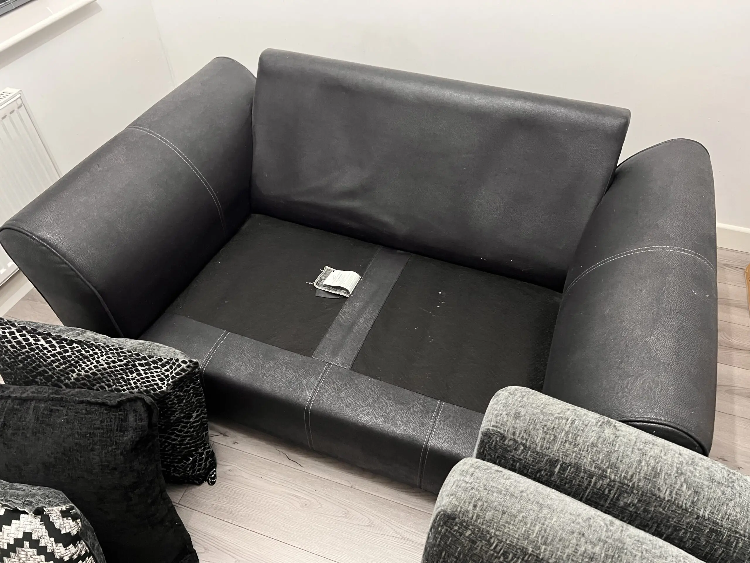 DFS 2 Seater Sofa Odell Charcoal and Black Combination Pillow Back Sofa