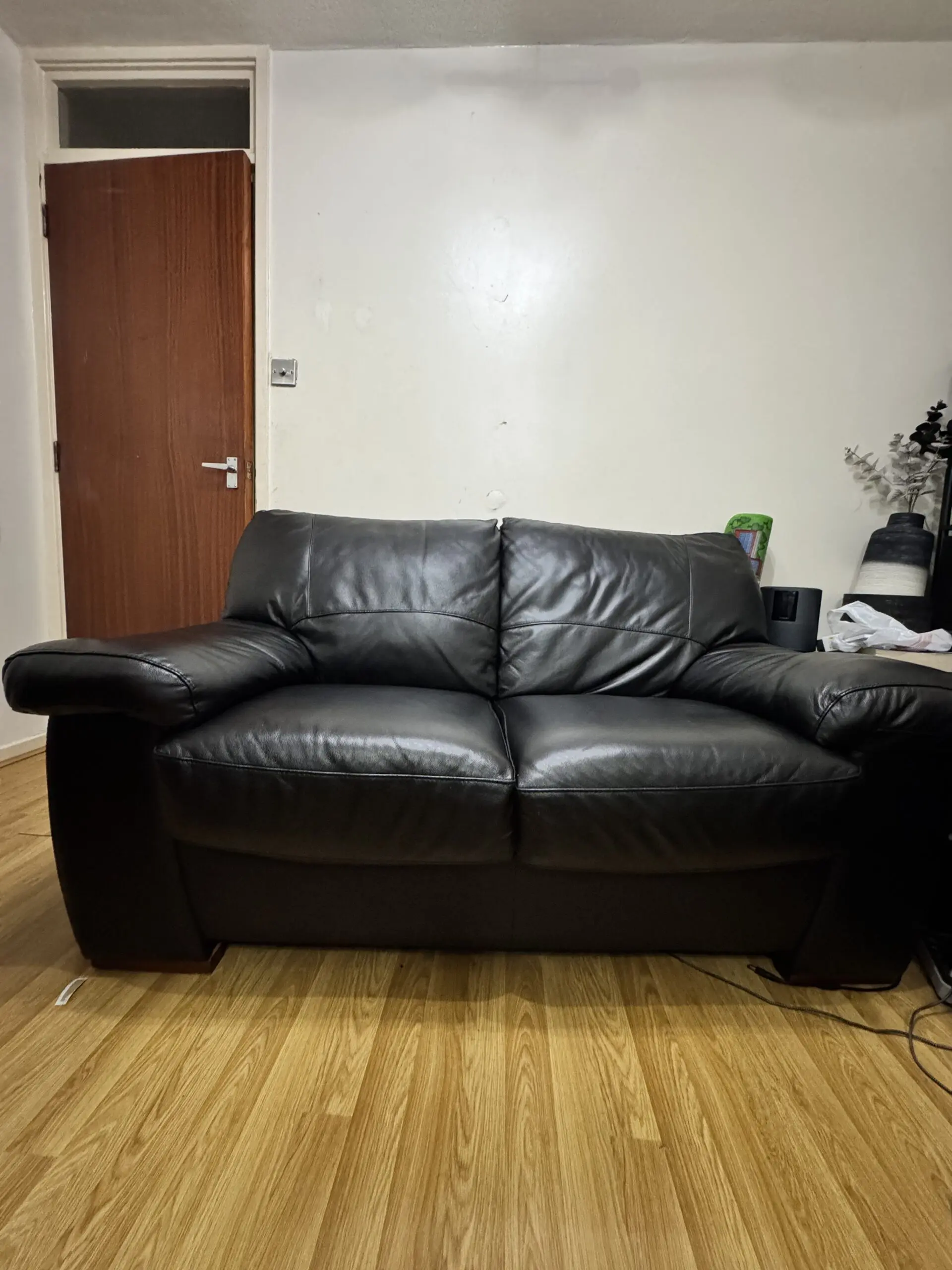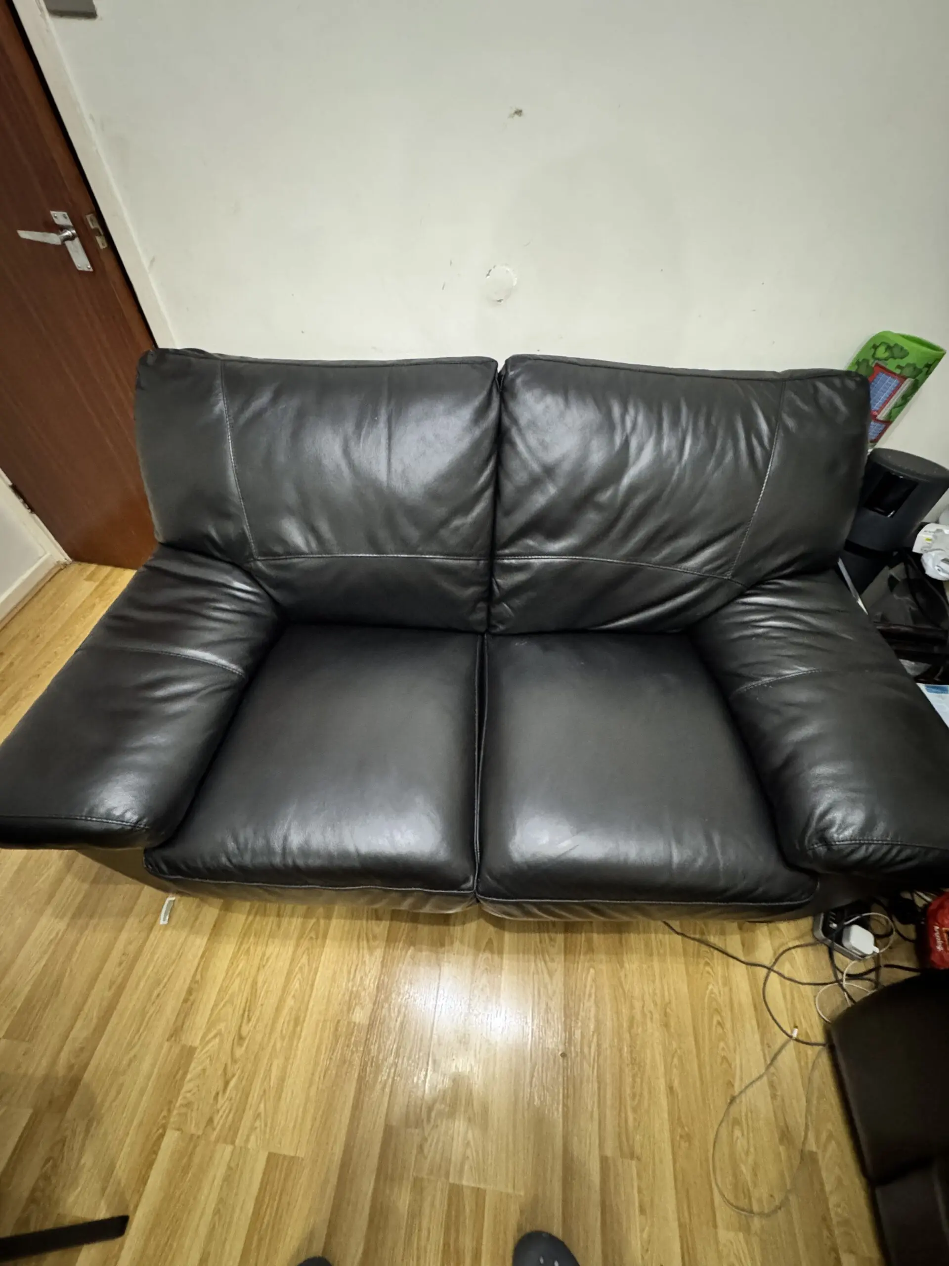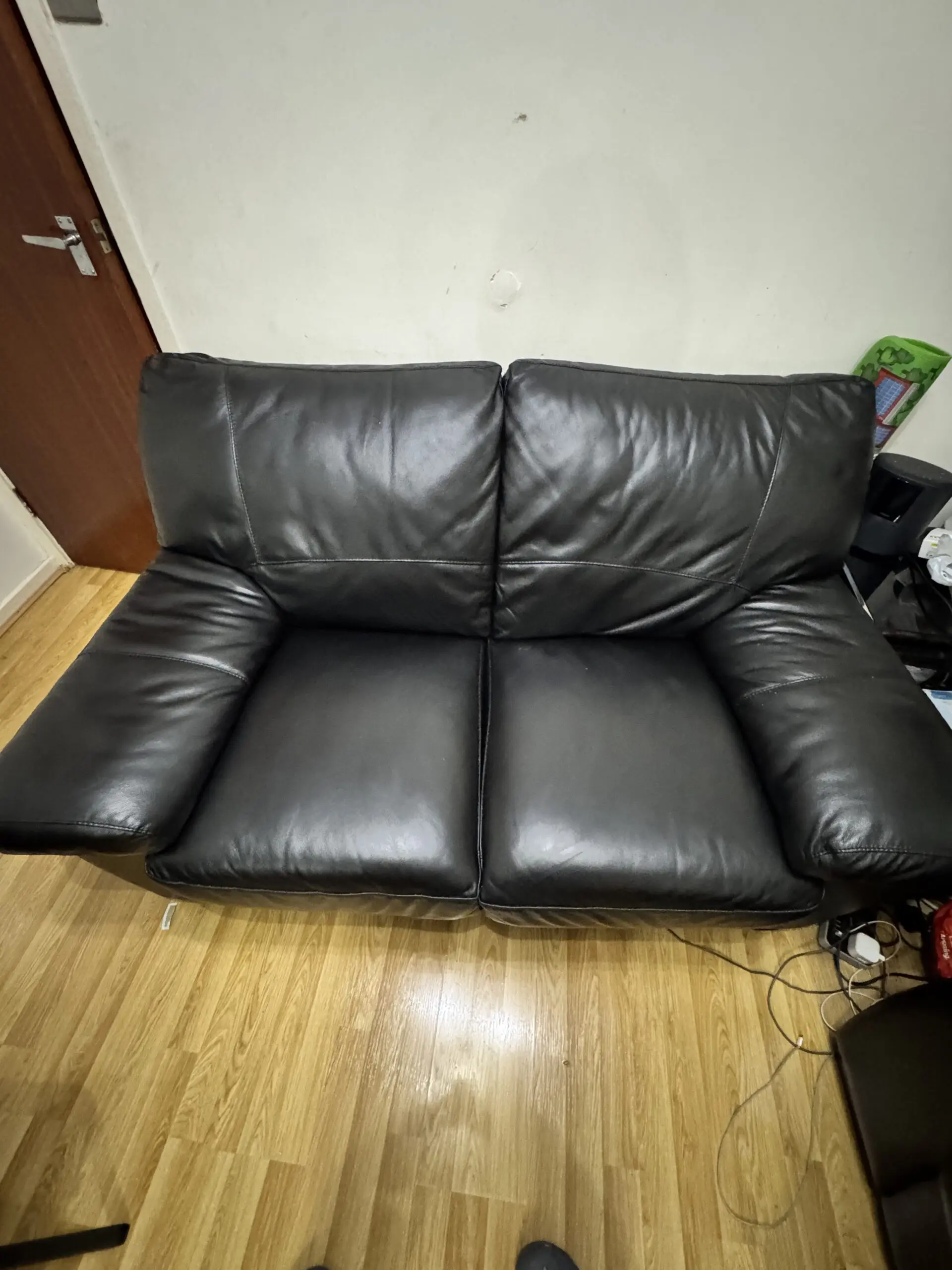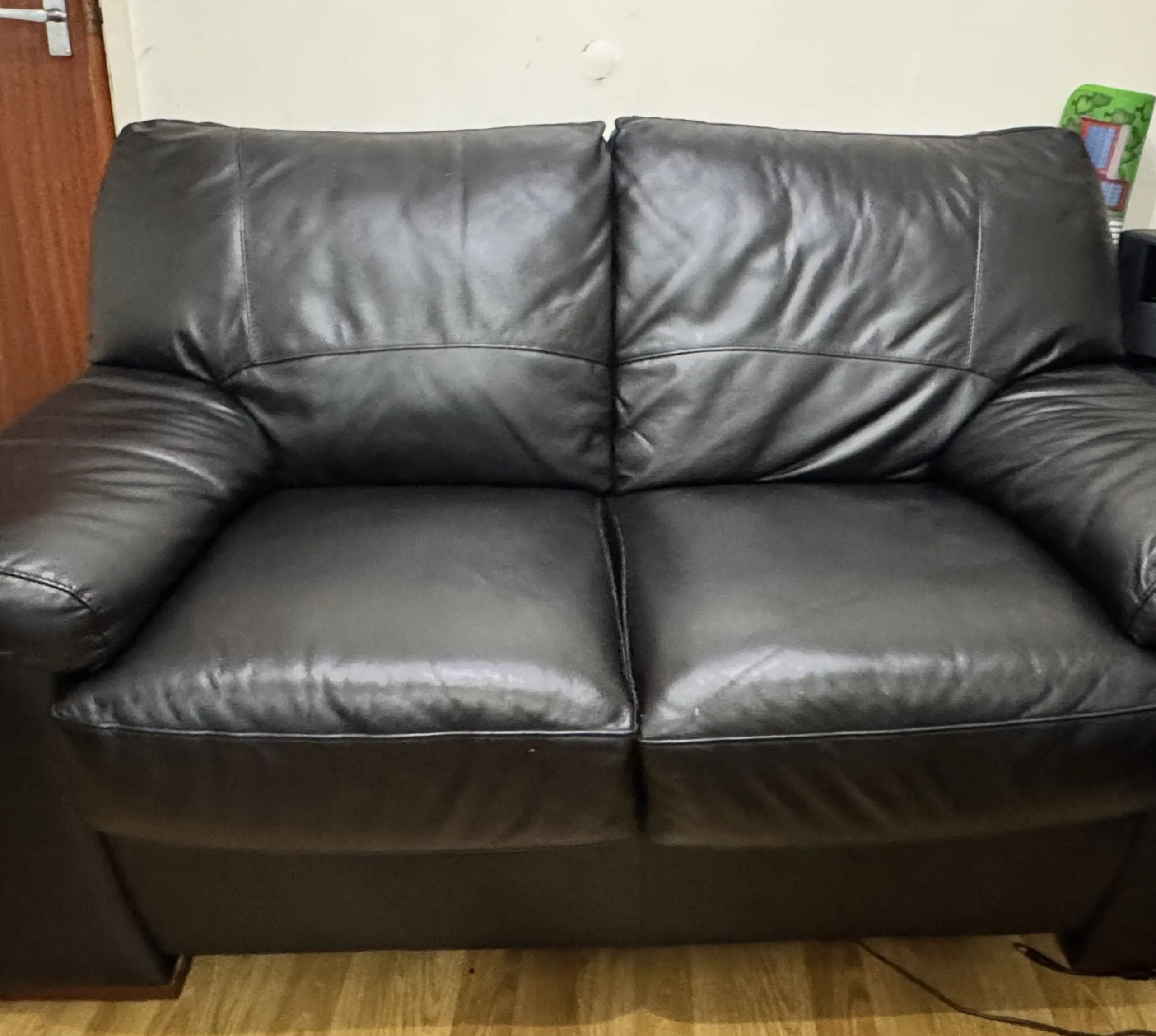 This Leather Sofa 2-Seater is a stylish addition to any living room, featuring a contemporary design with a modern back style and pad armrests. Made with high-quality foam filling and durable wood framing, this sofa offers a comfortable seating experience for adults with a seat depth of 55cm and a seat height of 45cm. The black leather upholstery and solid pattern add a sleek and elegant touch, perfect for a contemporary and modern living space. Additionally, this sofa is in very good condition. Under 2’years old and hardly used. In a pet free and ample free home. It requires no additional assembly, making it a convenient and reliable choice for your home.