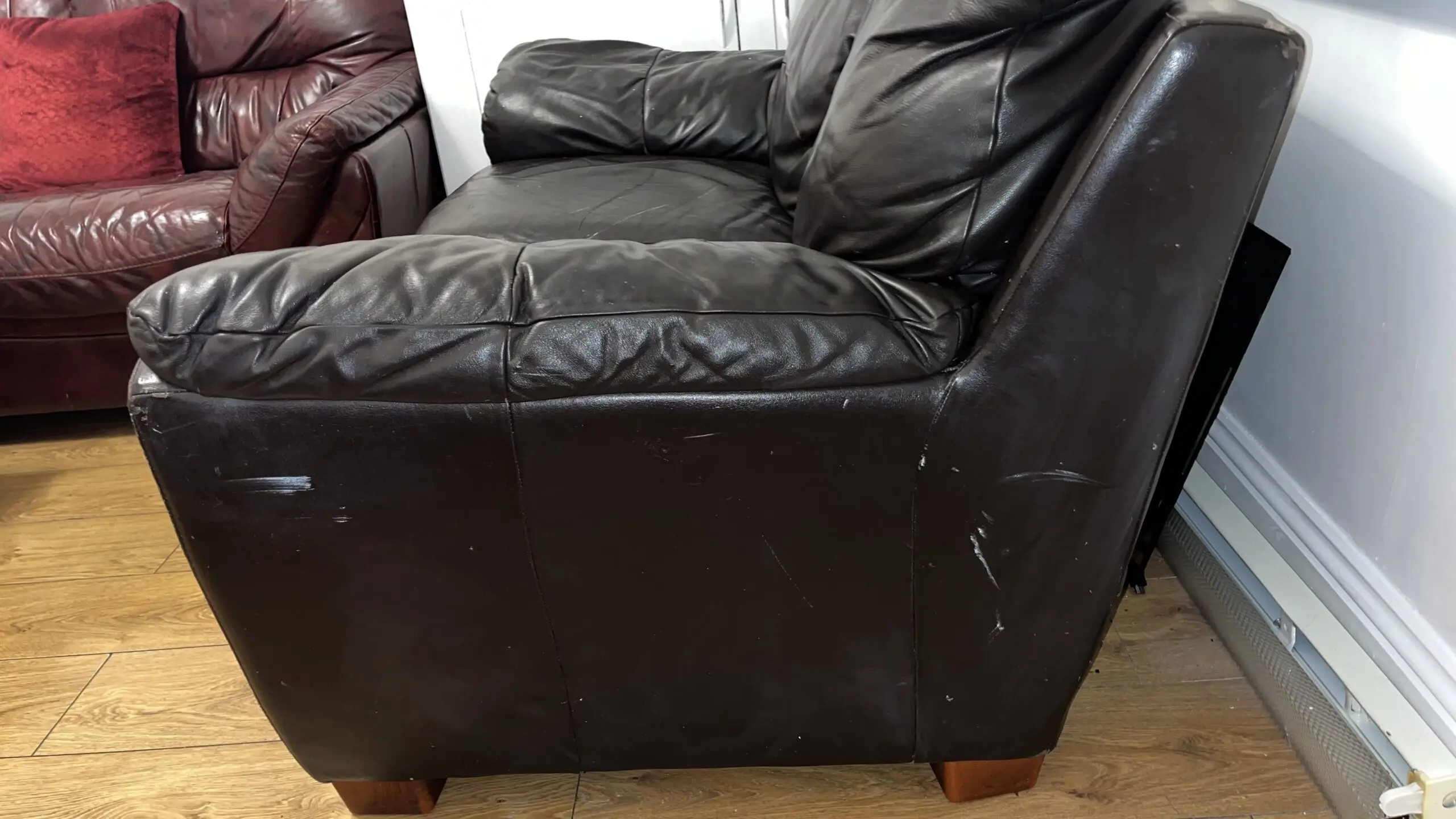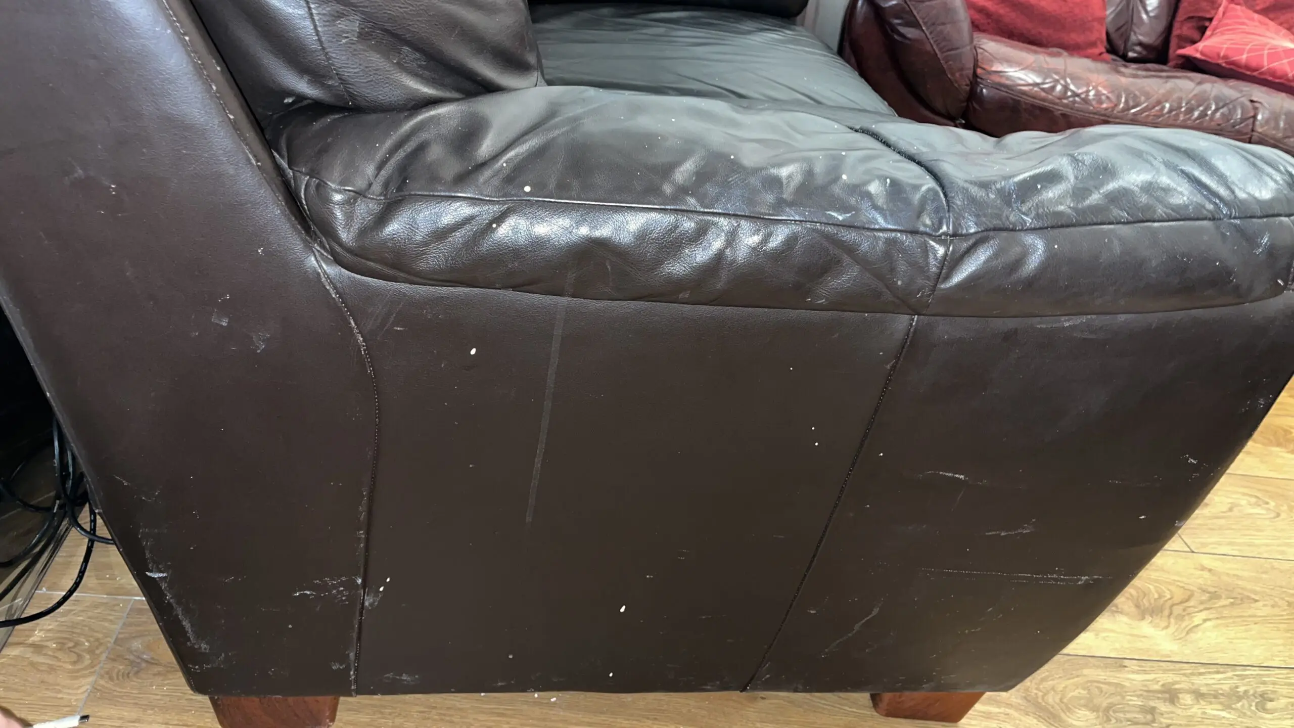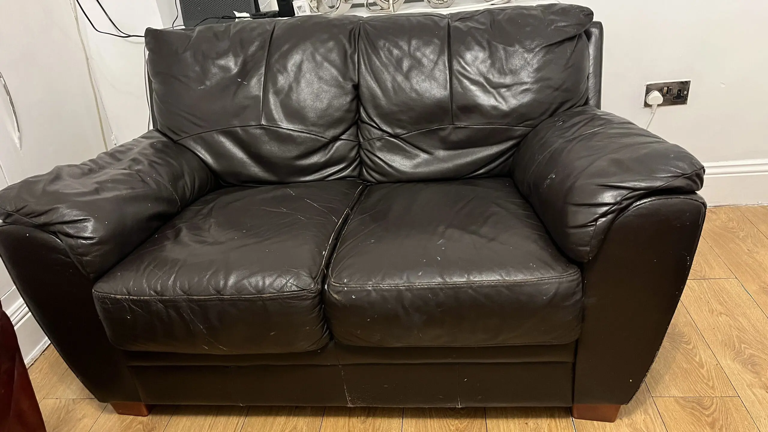 This sofa has been used for 15 years and has visible paint marks on it which can be removed.