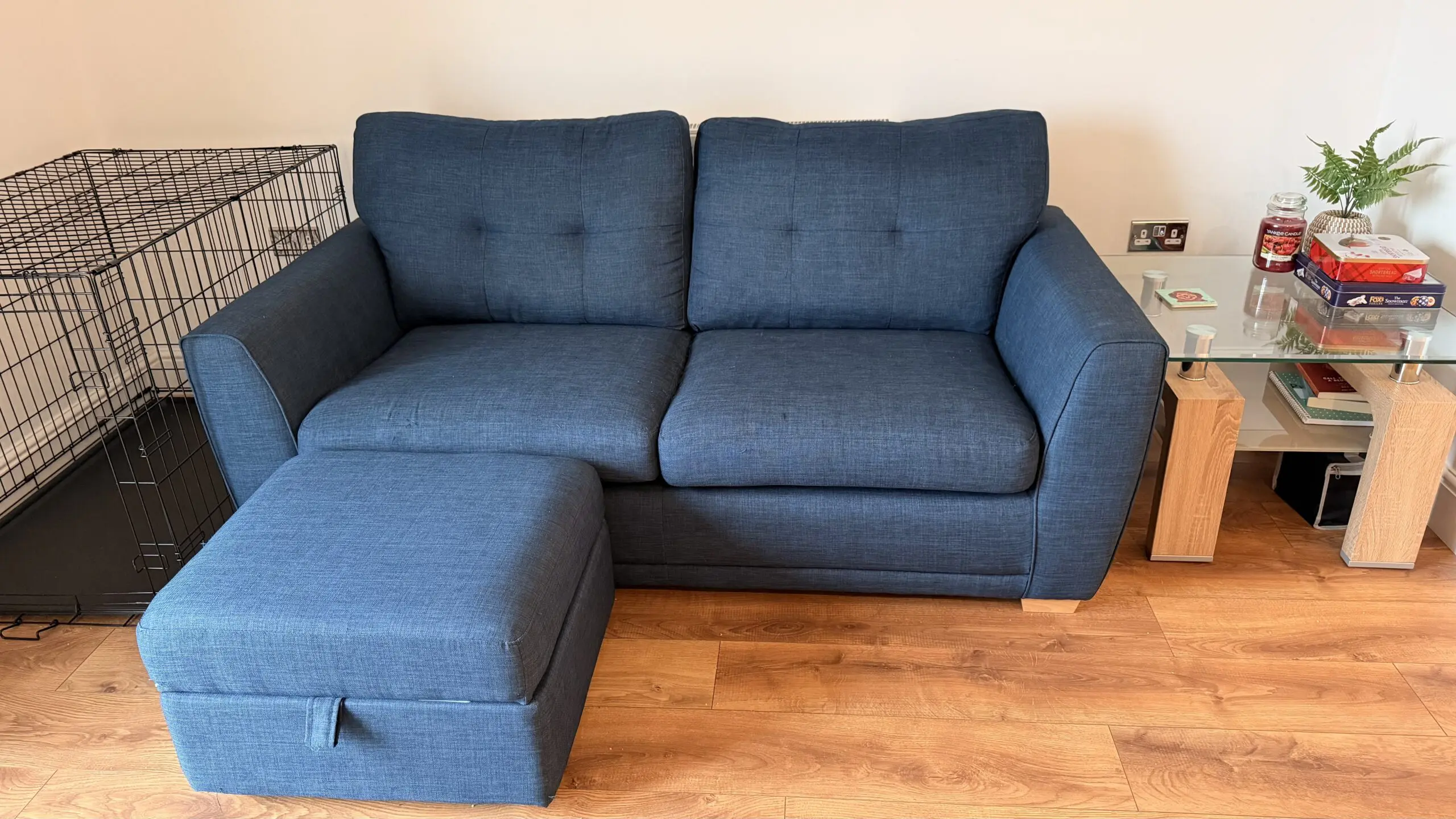 3 seater and footstall which has underneath storage