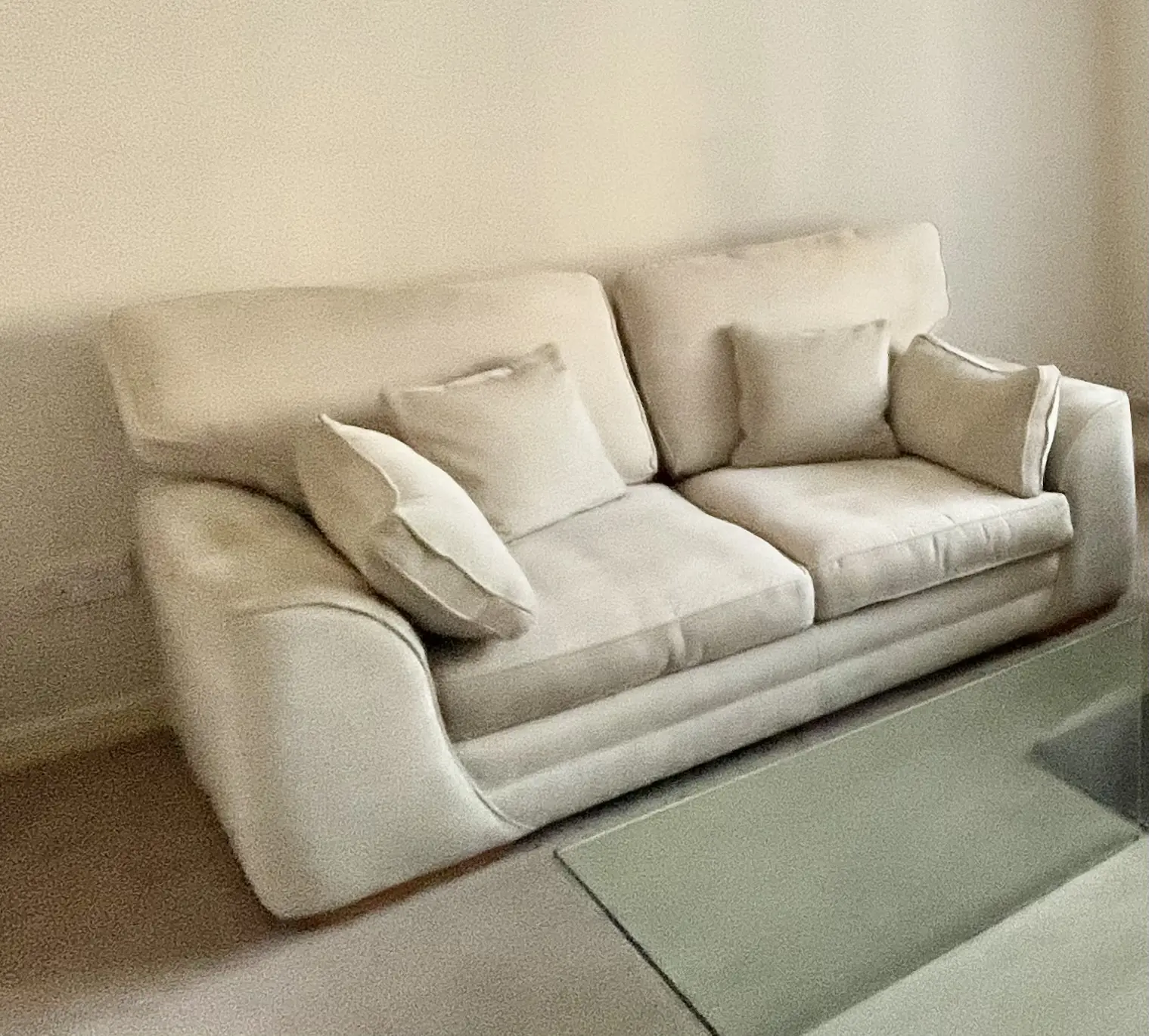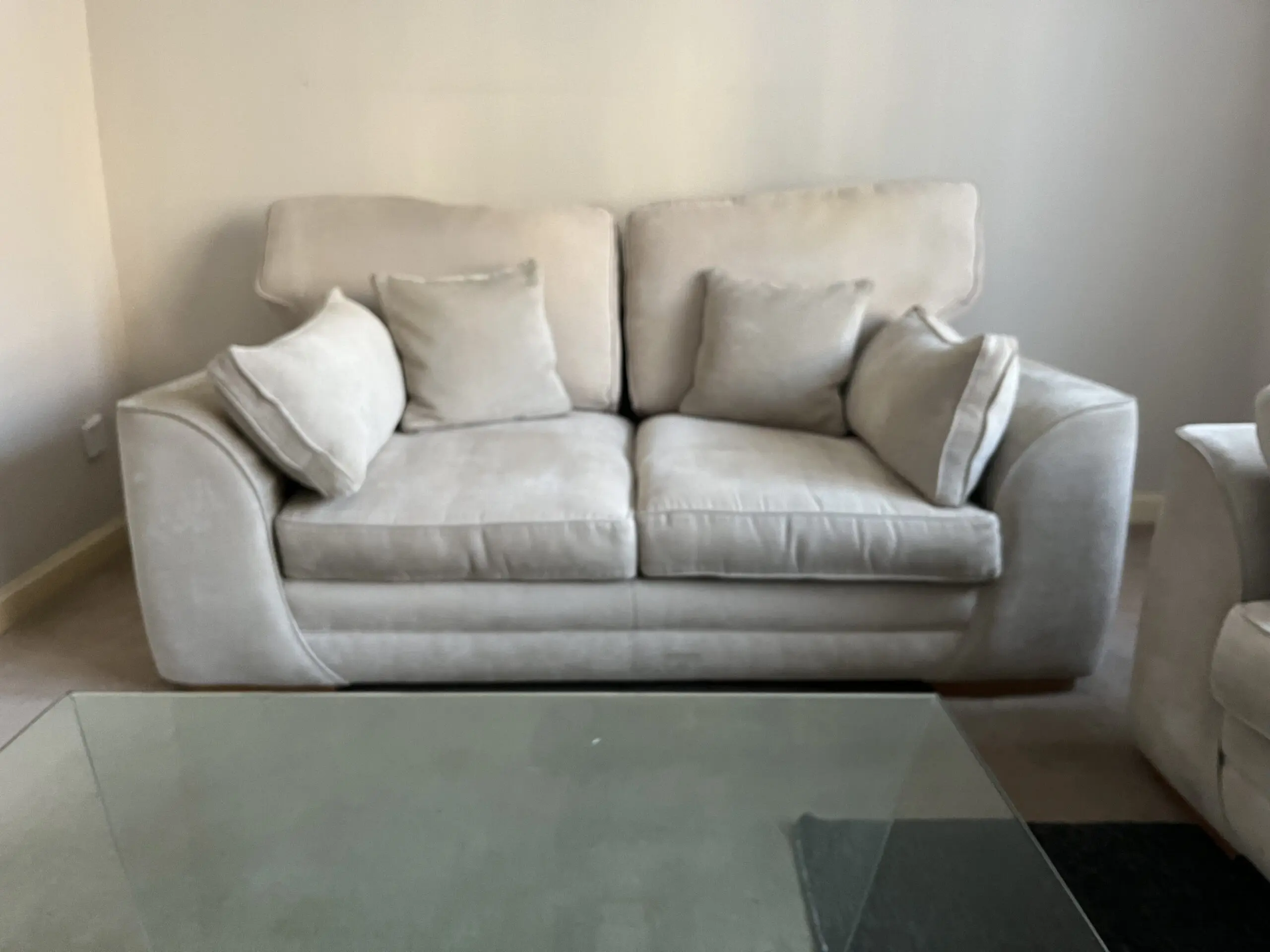 A comfortable 2 seater sofa with 2 side cushions & 2 square cushions.