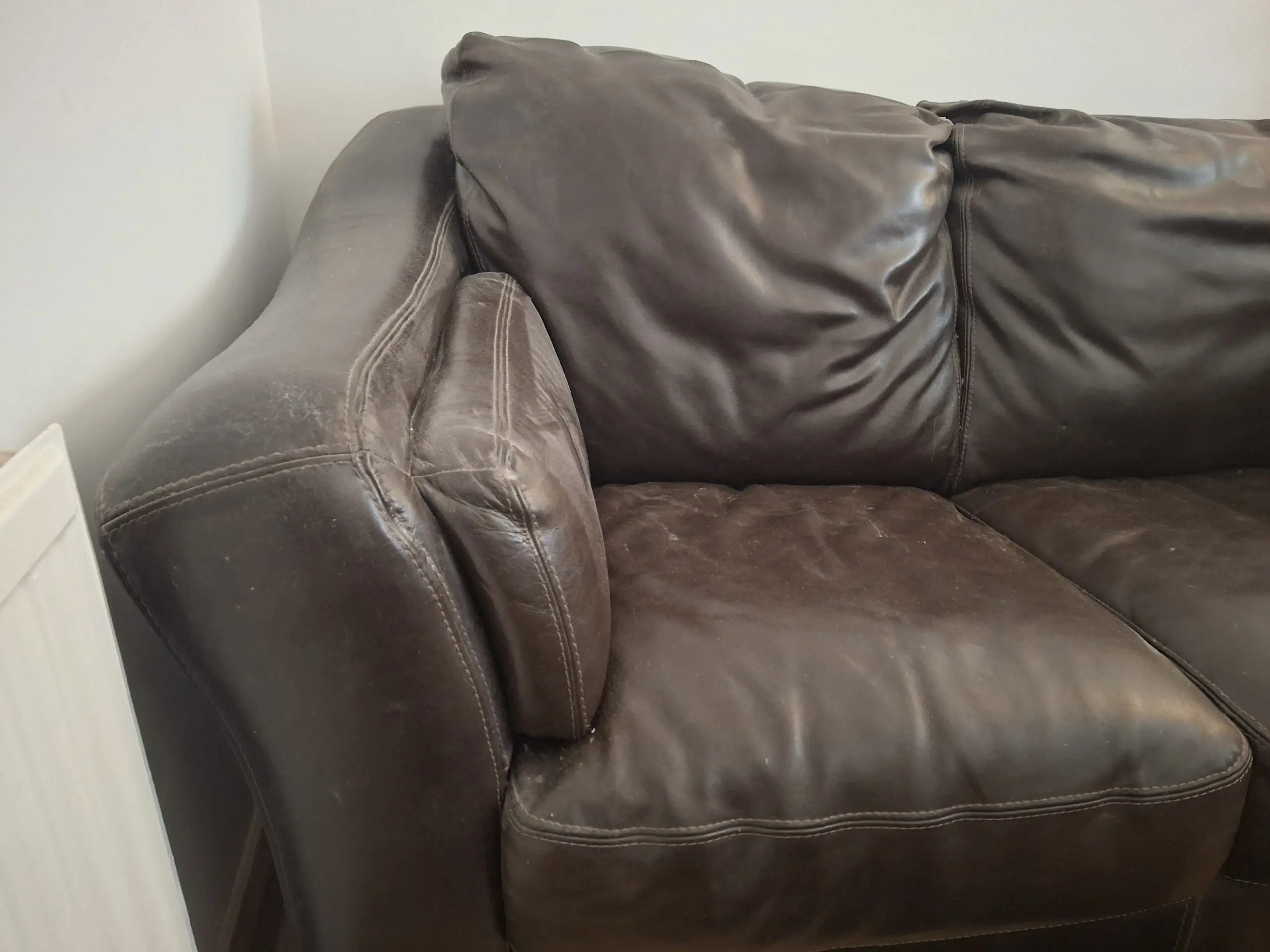 Dark brown leather two seater sofa. Hardly used. In good condition. Very comfortable and soft
