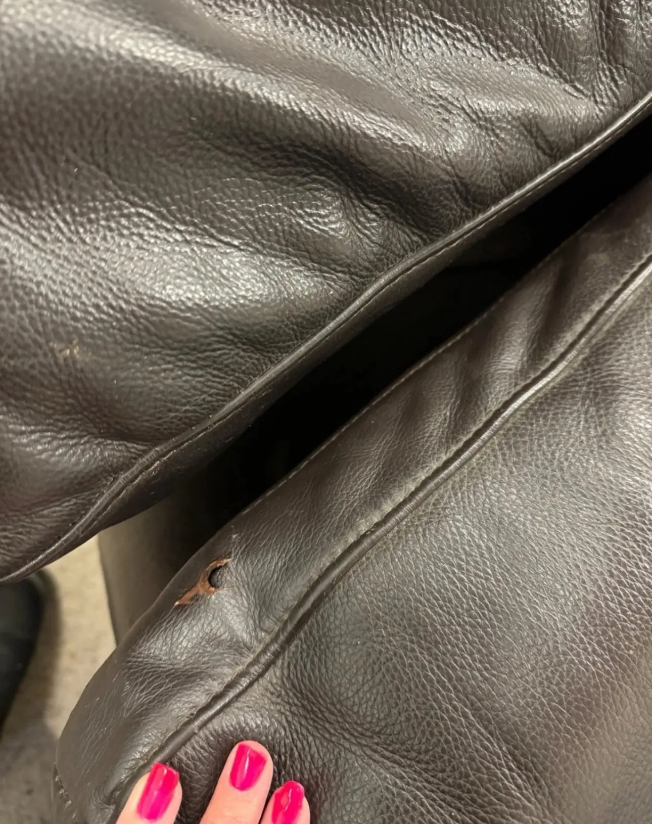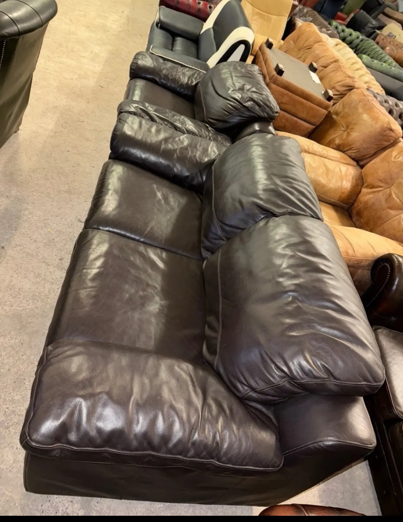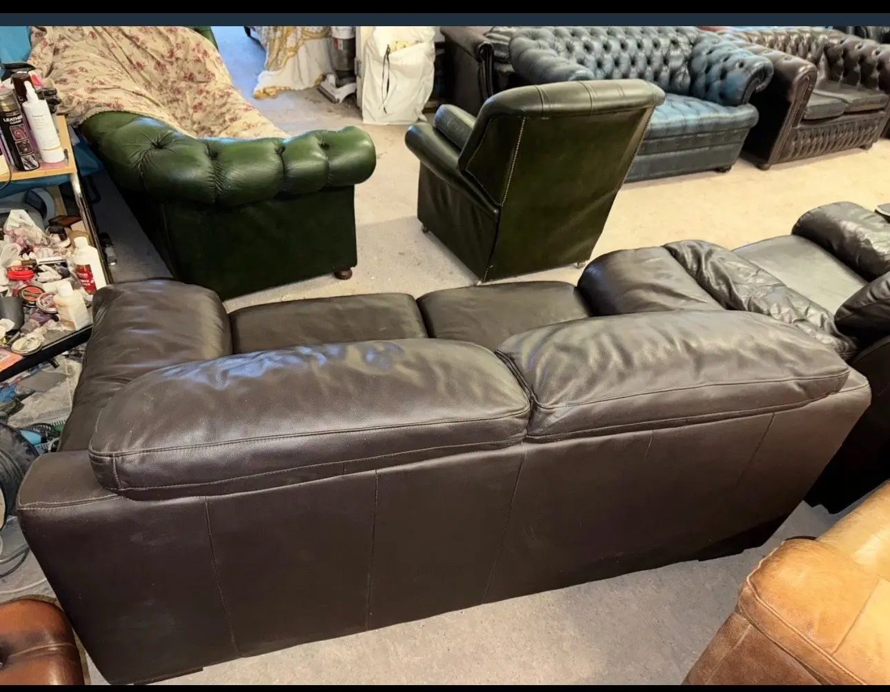 Pre owned good condition small mark to be expected 1 small hole in leather under sofa arm as shown not noticable
