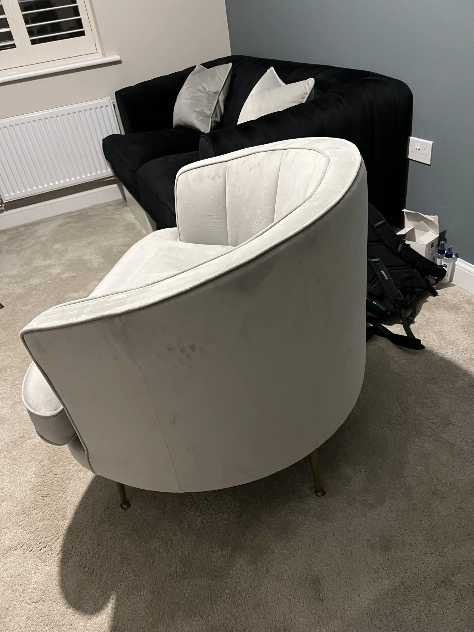Gorgeous sofa and chair bought from DFS 3 years ago and used only a handful of times so they’re in brand new condition! They’re a lovely sensual velvet fabric and pair perfectly together!