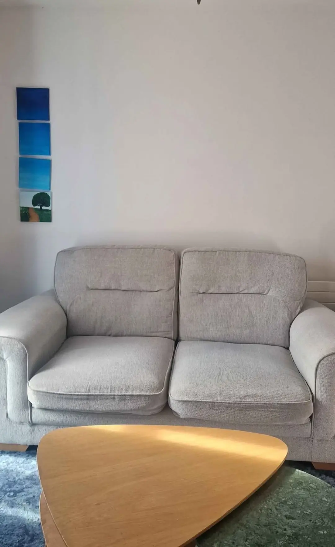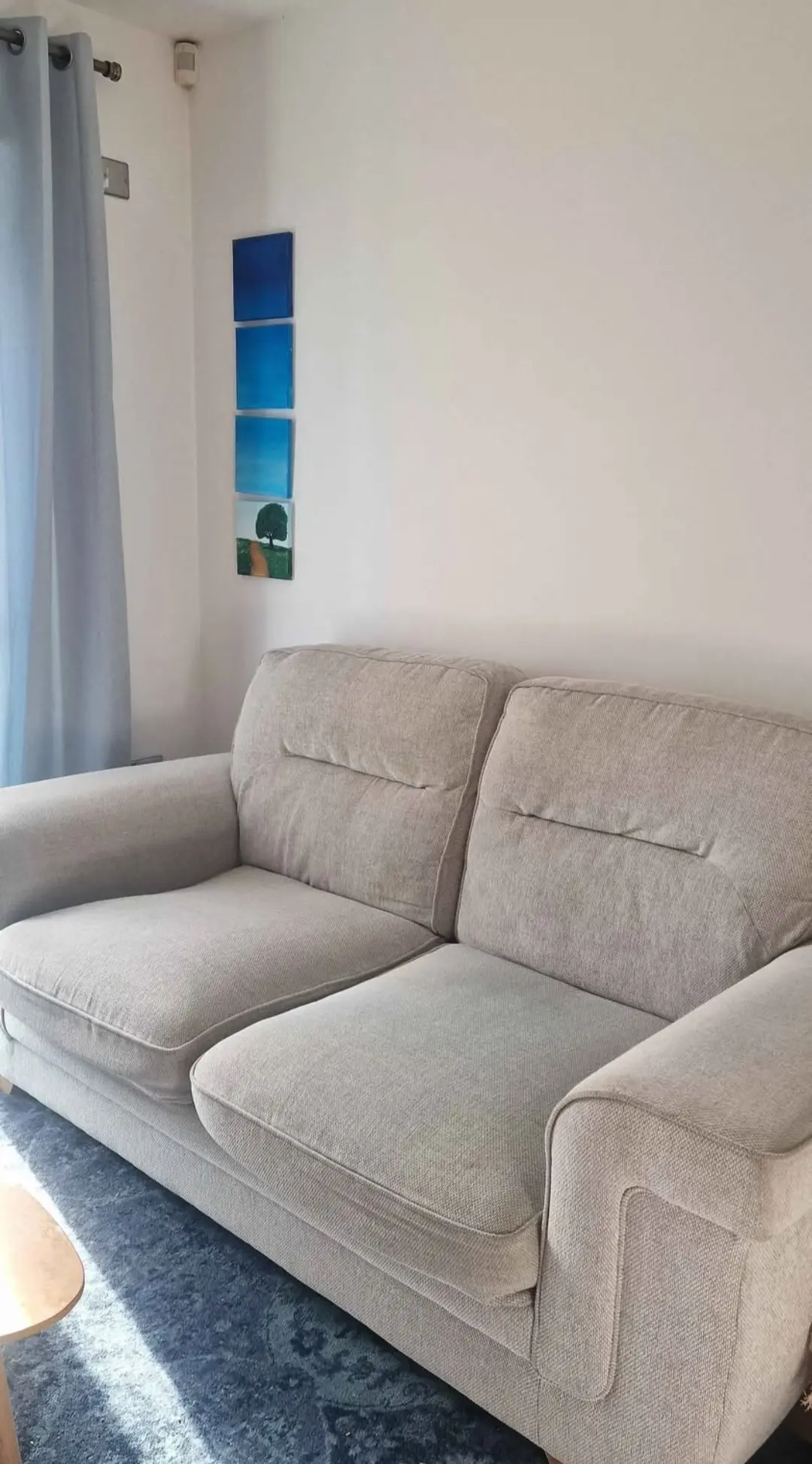 Super comfy grey sofa, grey. Can be paired with colourful cushions or a throw. Easy to fit in small apartments as well as bigger living rooms along with other seating arrangements.