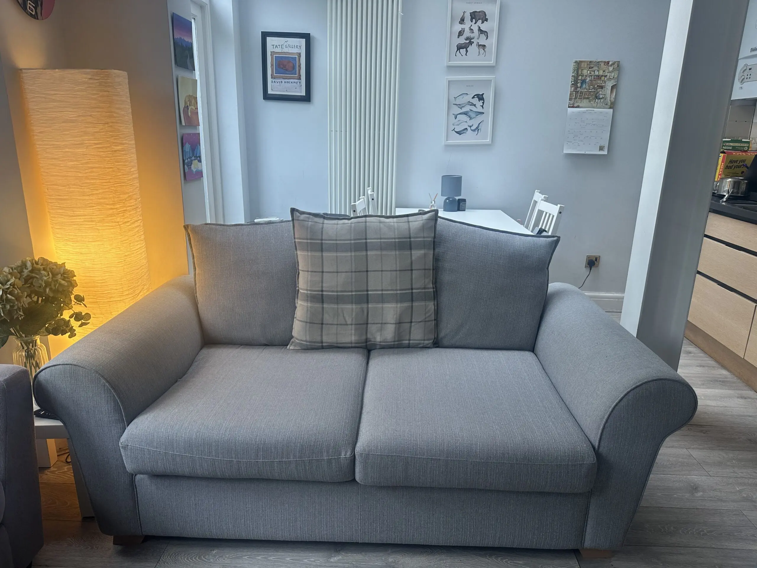 DFS Grey 2 Seater Sofa OWEN Pillow Back Foam Cushions