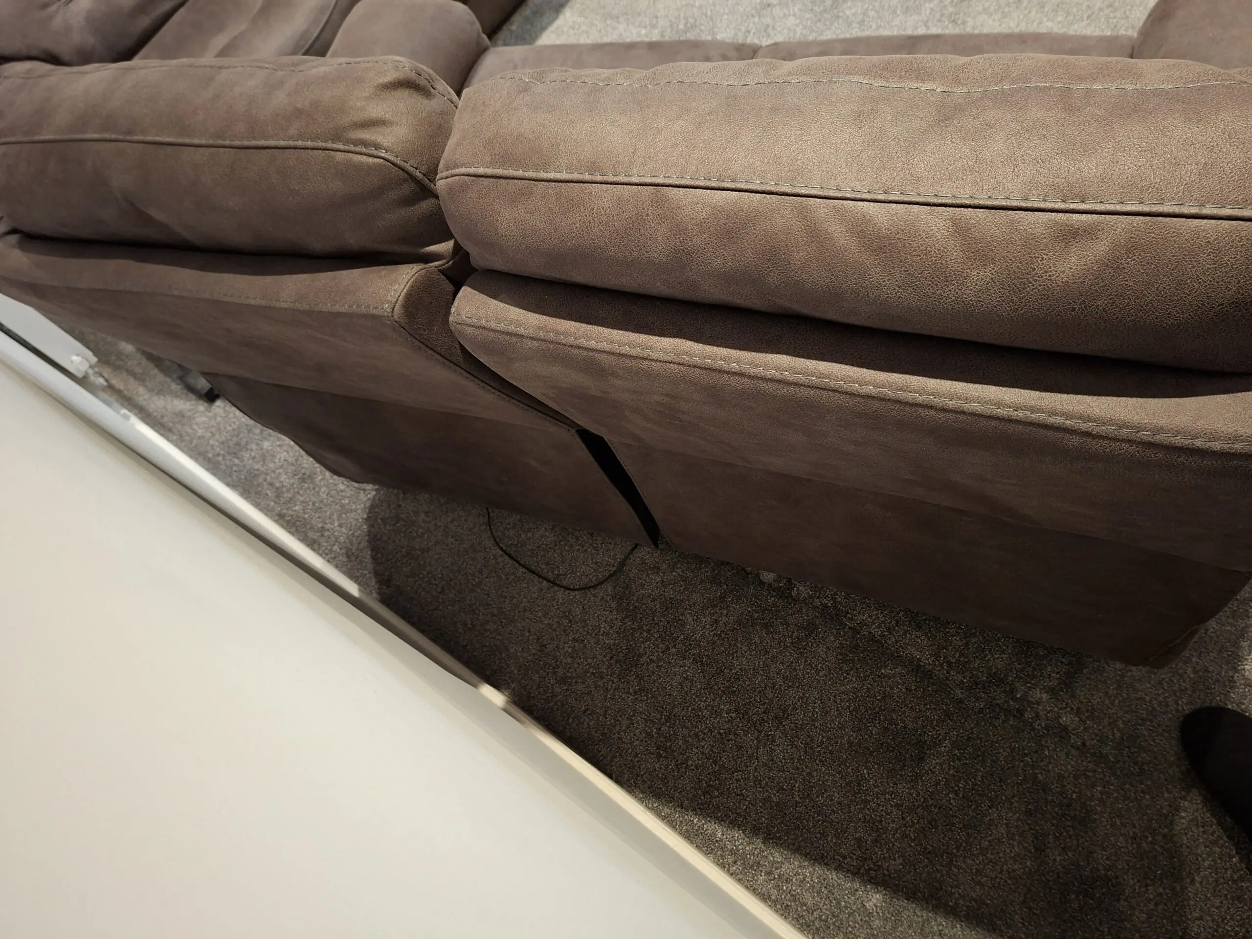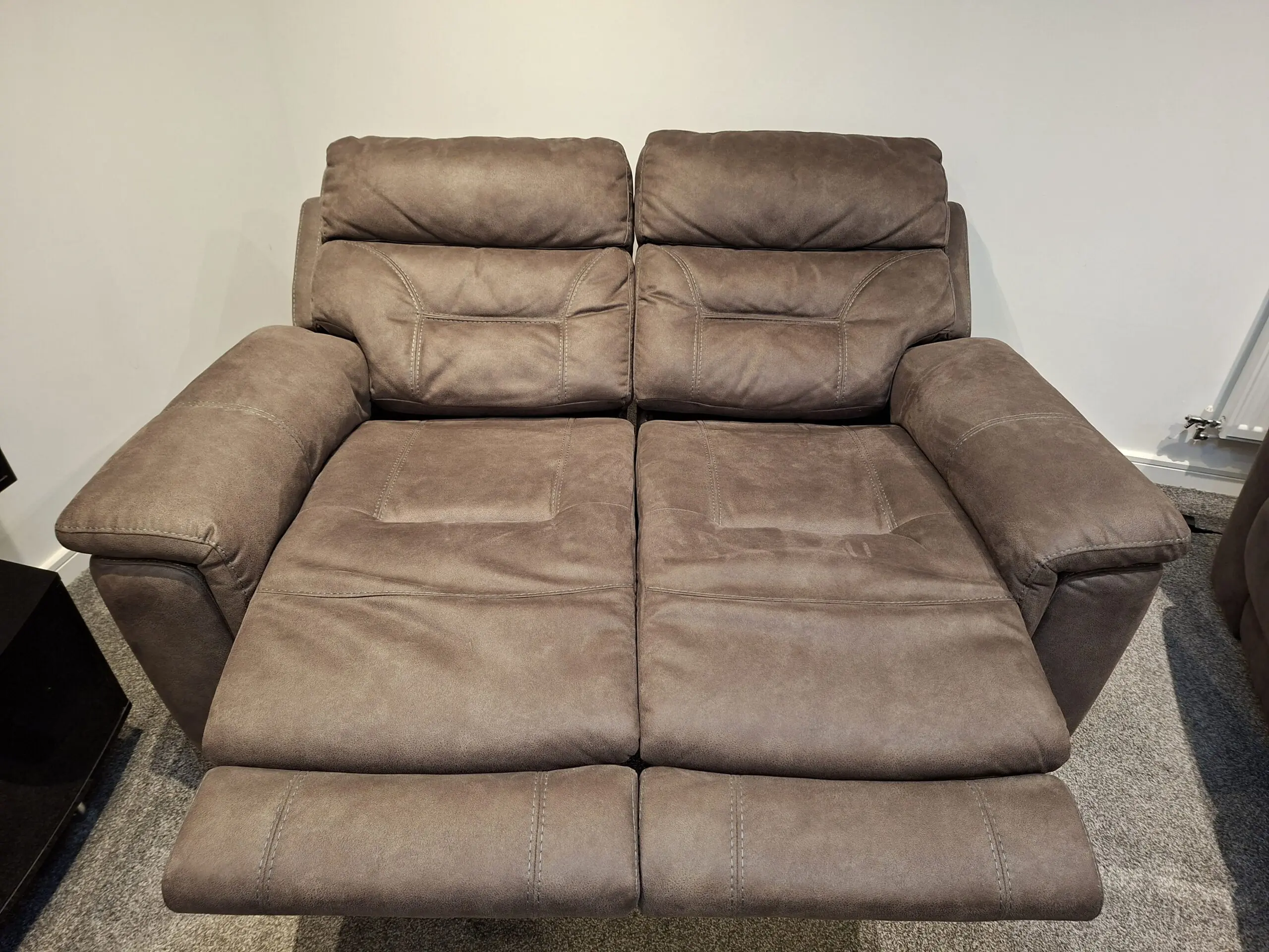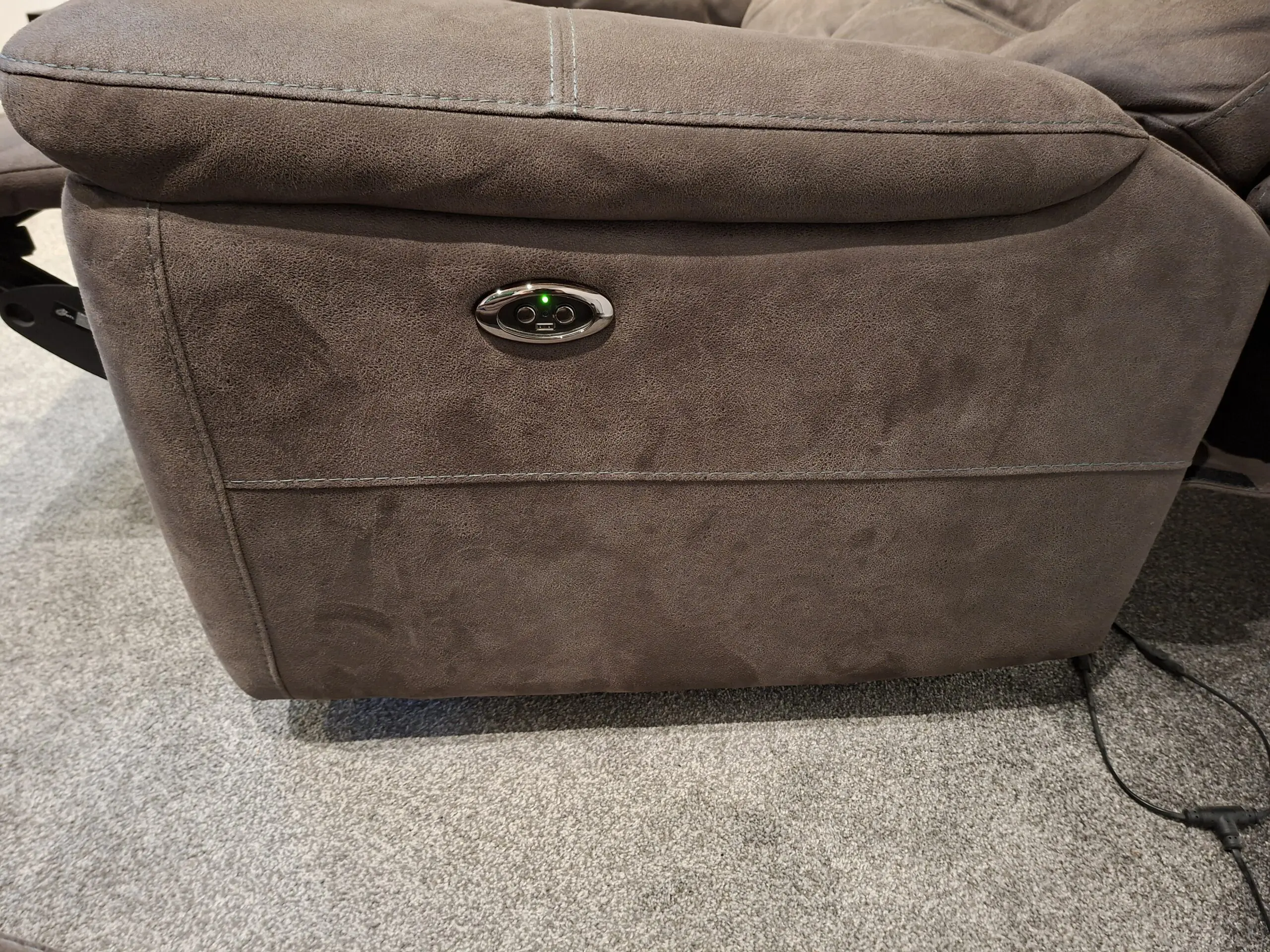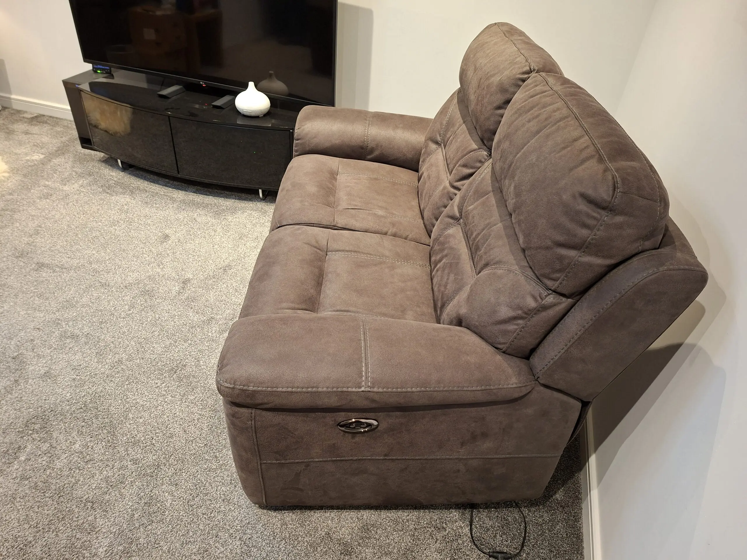 DFS Grey Romilly 2 Seater Power Recliner, purchased in 2021, barely used so in excellent condition. Cost £889 brand new. Colour is described as Grey, looks slightly brown/taupe in real life.