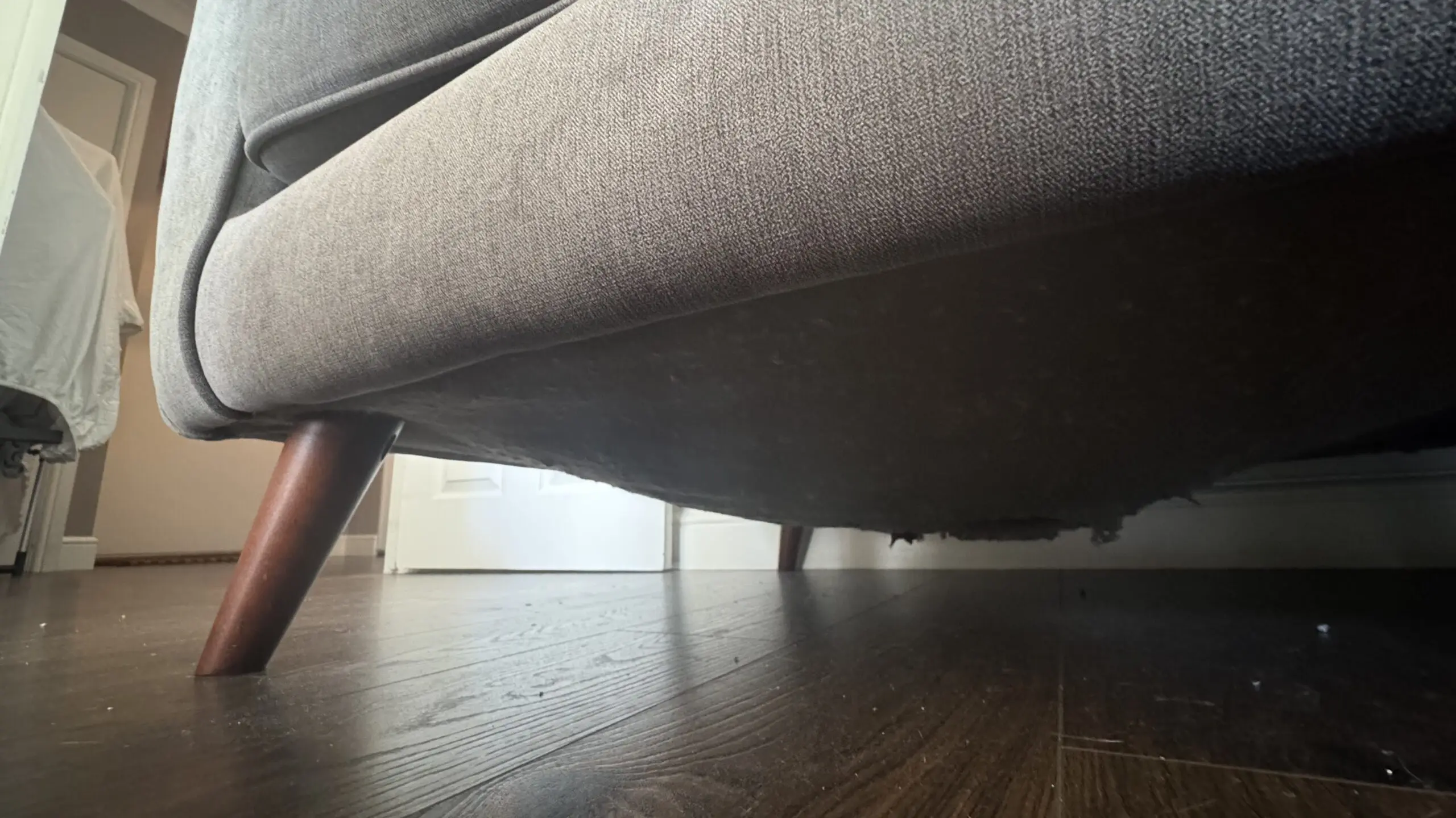 In good condition – hardly used – however underneath in the lining is a hole but has no impact on the condition of seating or durability