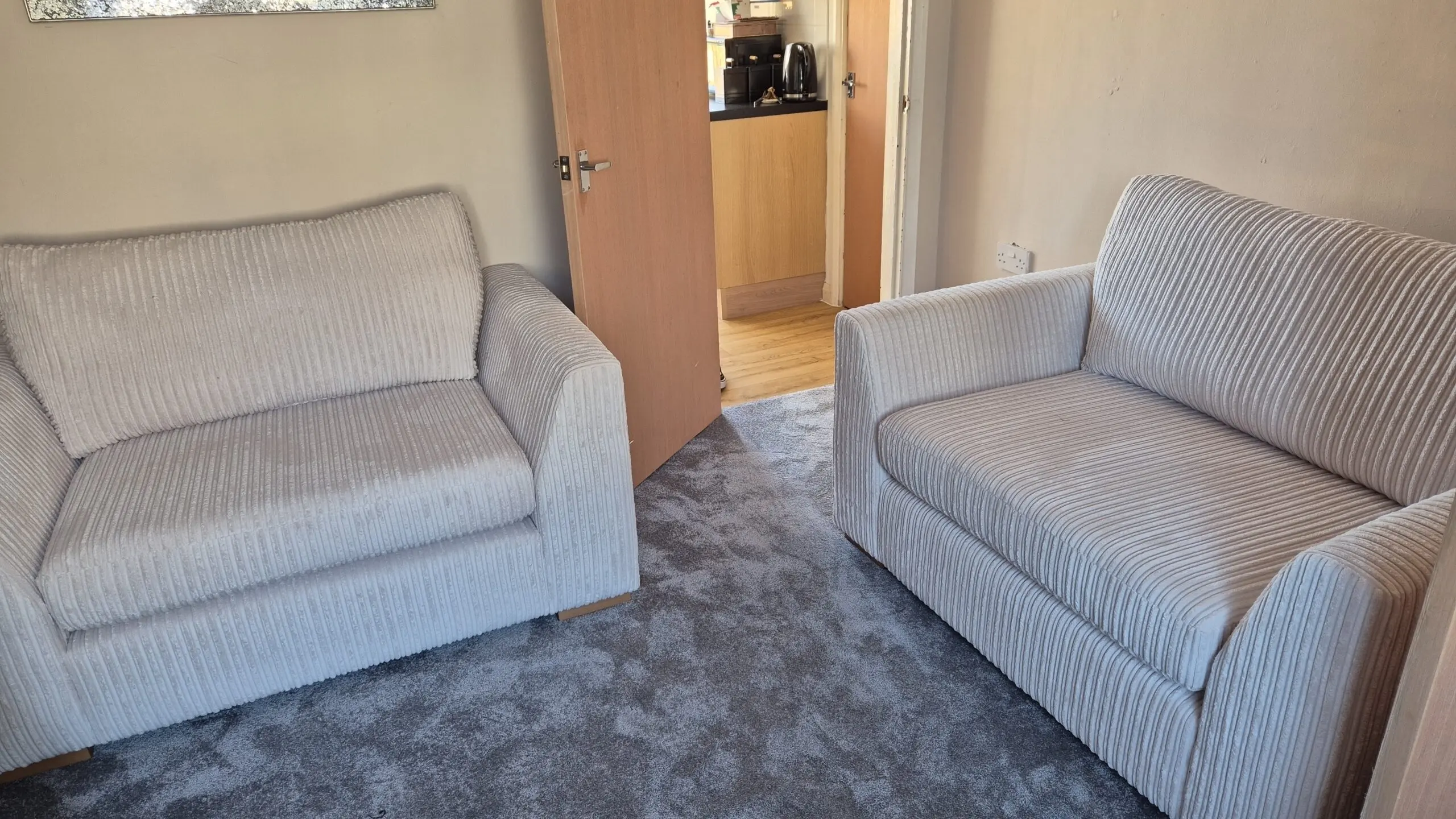 2 Heydon cuddler sofas, ivory colour, excellent condition only had for less than a year. Lovely sofas only selling as wanting a bigger sofa.