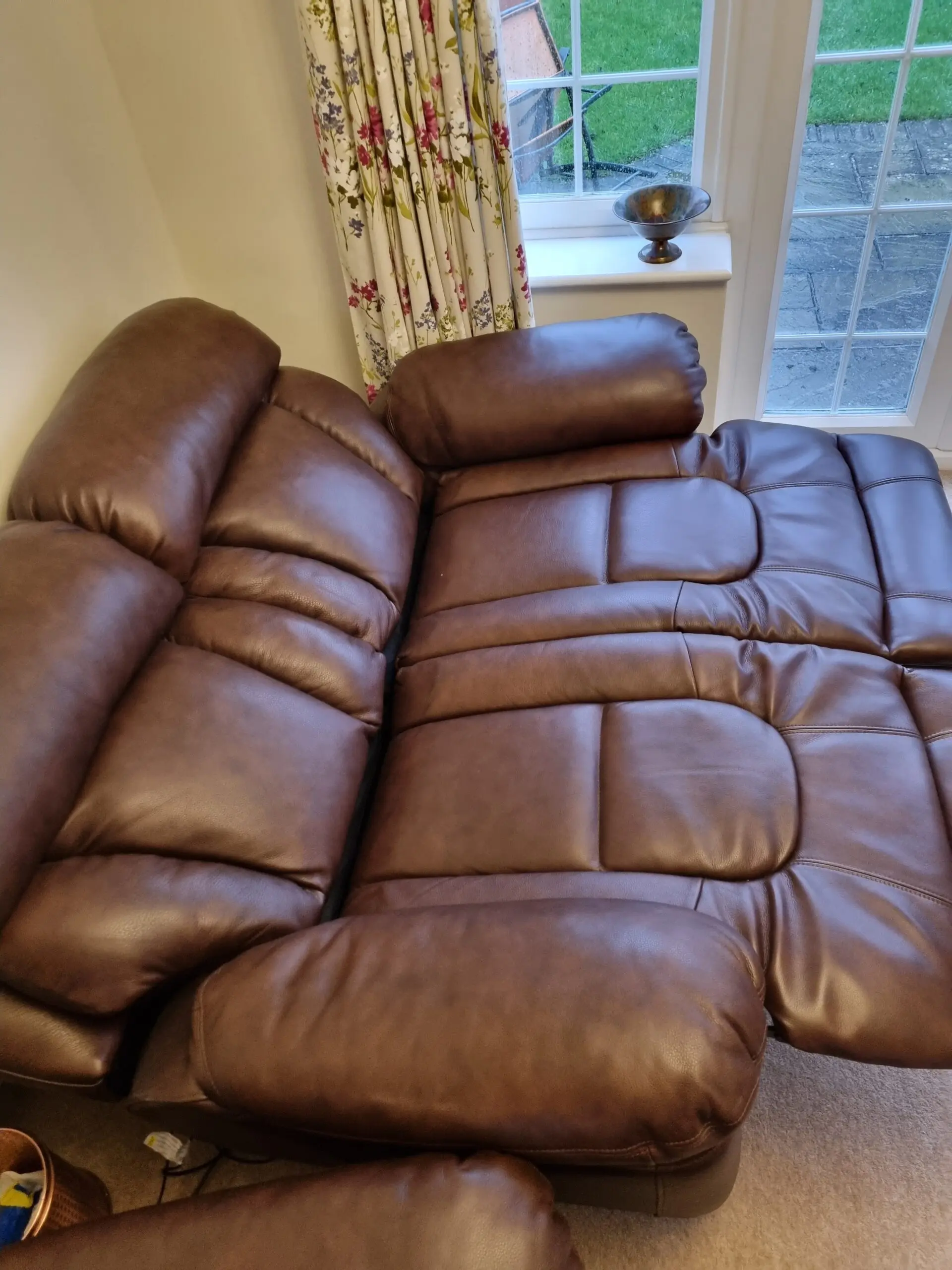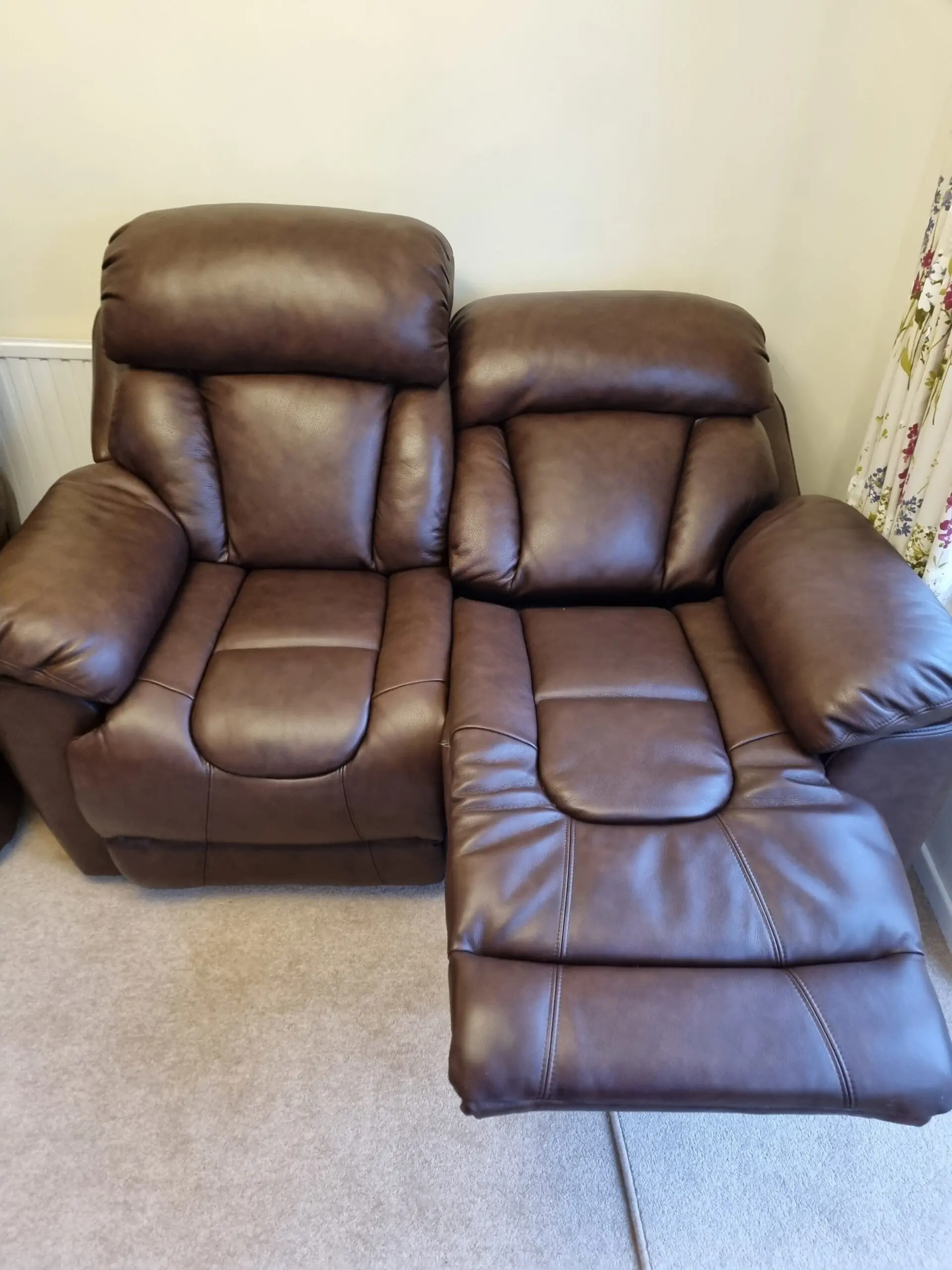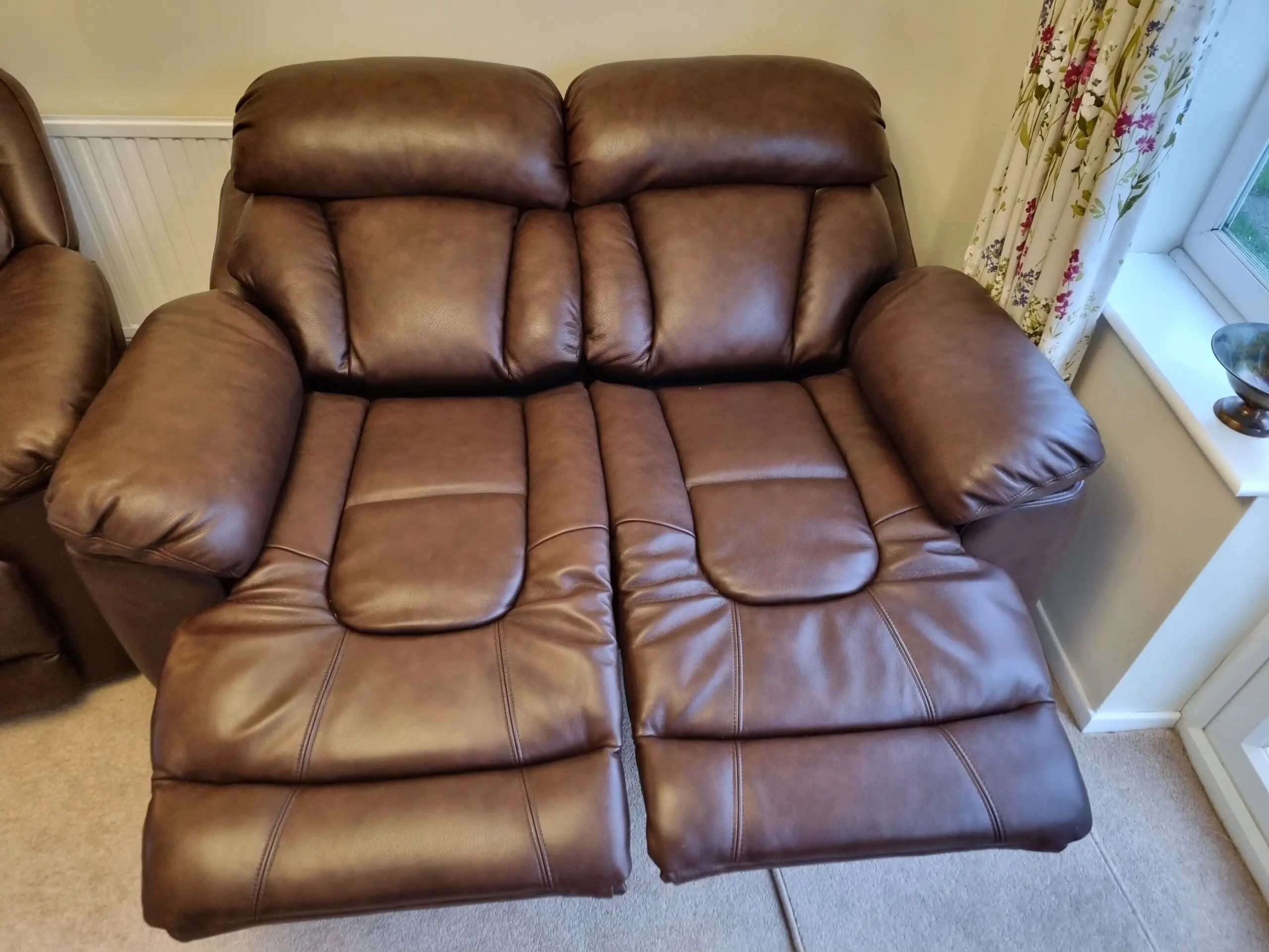 Two seater leather recliner sofa
