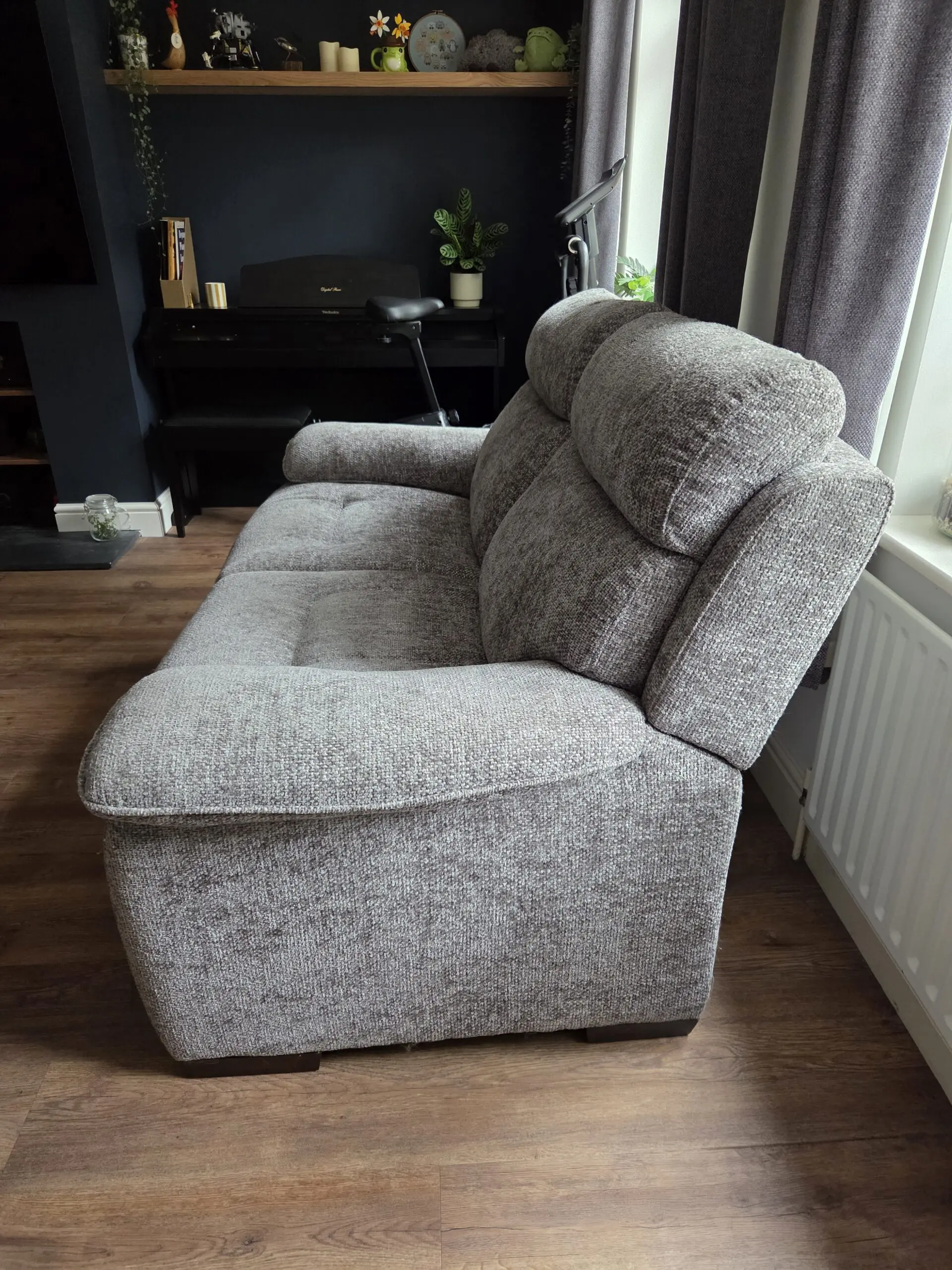For sale are two DFS 2 seater sofas, a recliner and a fixed. They are only 2 years old and in good fully working condition. The recliner has usb ports, a mains plug and a spare battery that can power the sofas if you don’t have a mains connection.