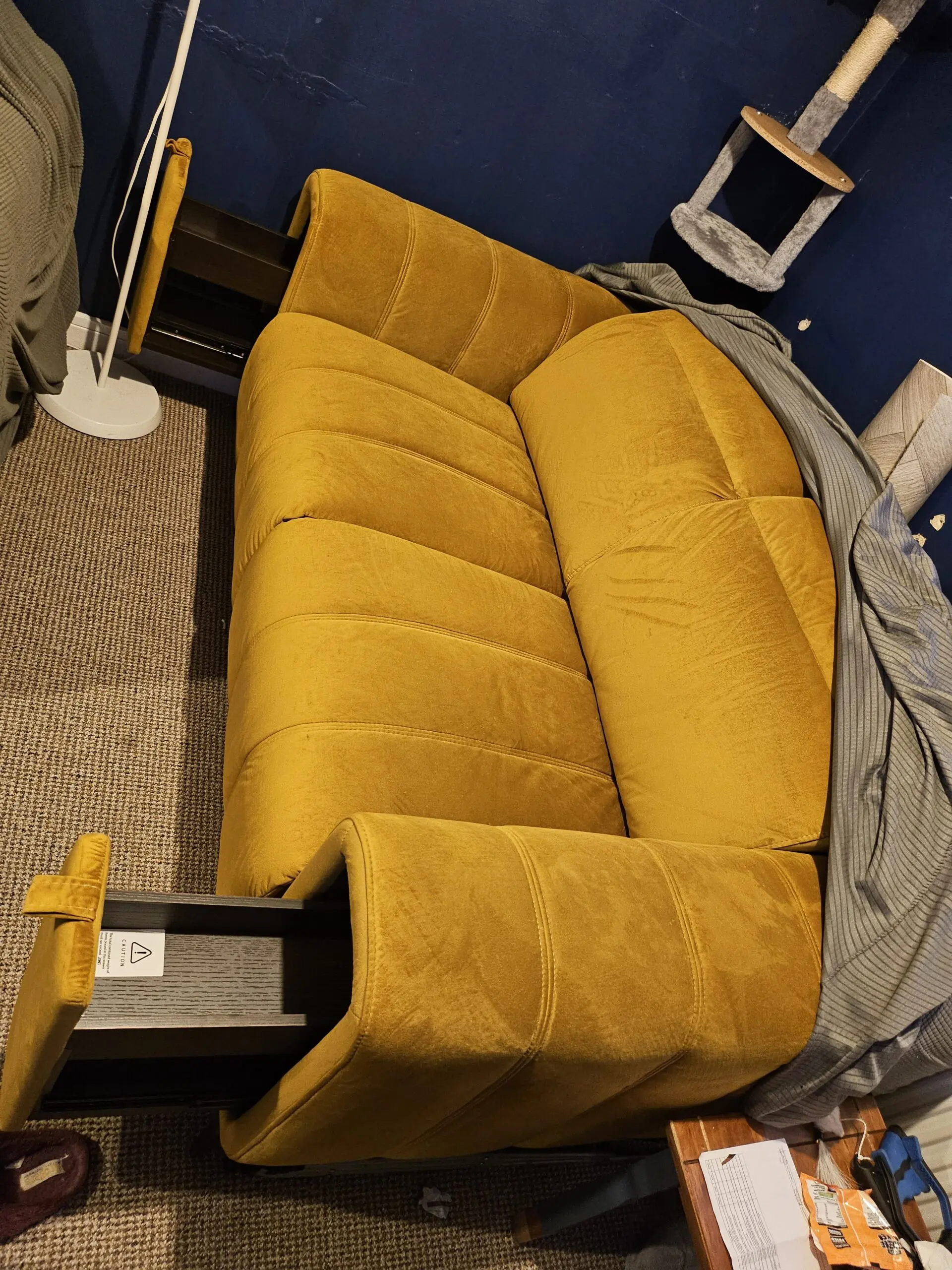 Comfortable saffron sofa in great condition. Have had it covered with sofa cover since i brought only a year old.