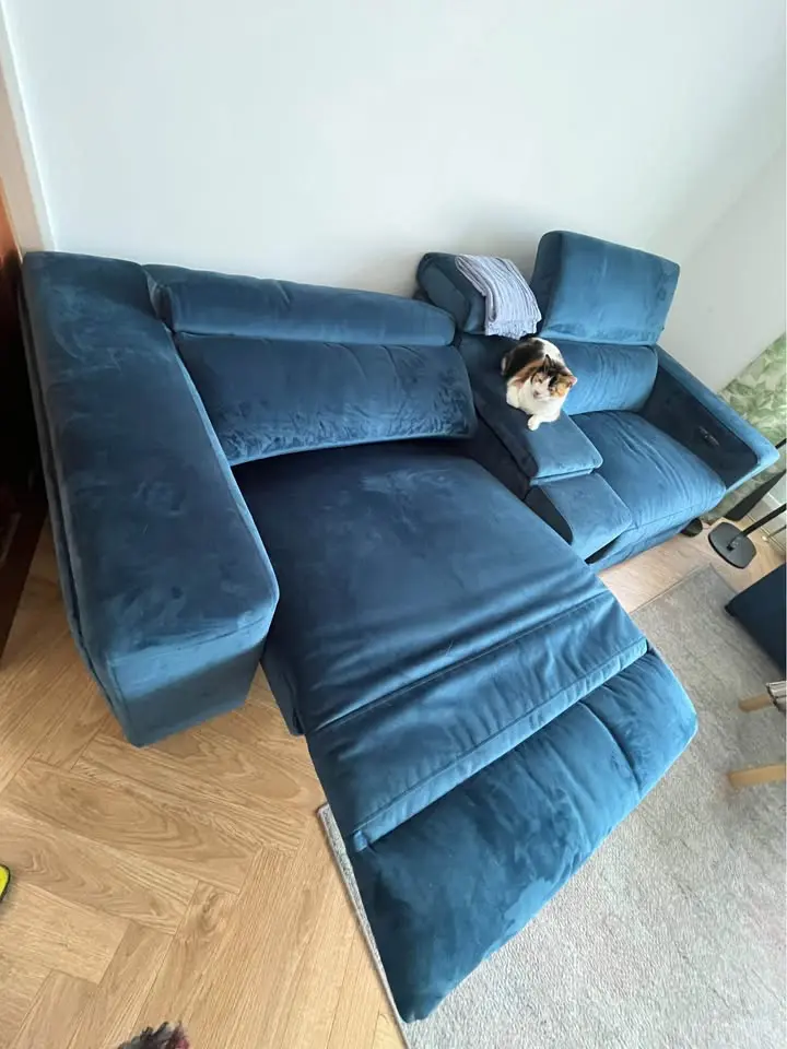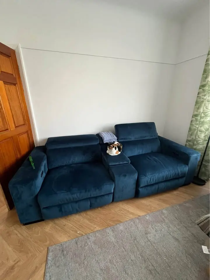 Great condition, smoke free house but we have cat, fabric is velvet easy to clean and pet friendly. Selling because my partner is super tall and the recliner is still not good enough for him ( he is 194cm so I don’t recommend if you are tall as well ). Feel free to come and try, L20.