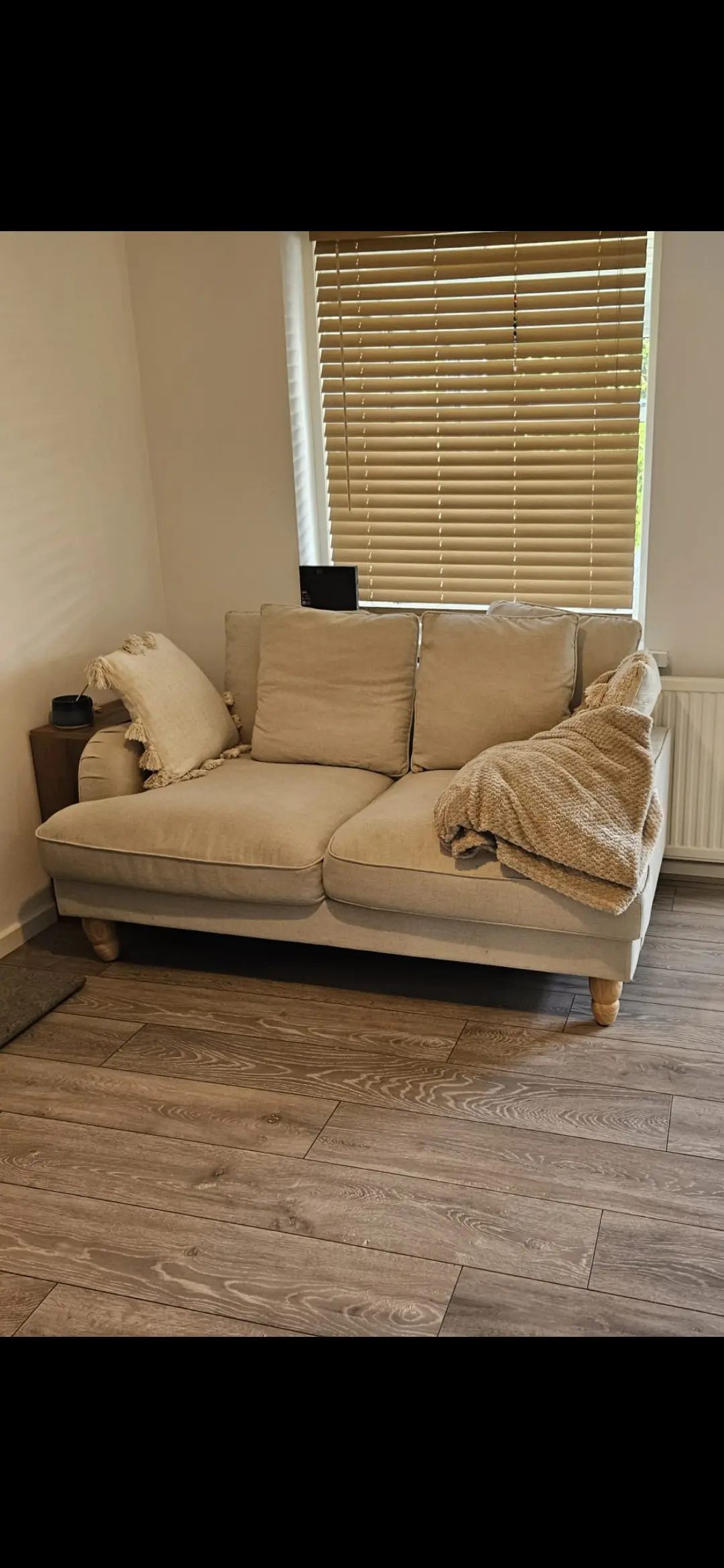 2 cream sofa and foot stool