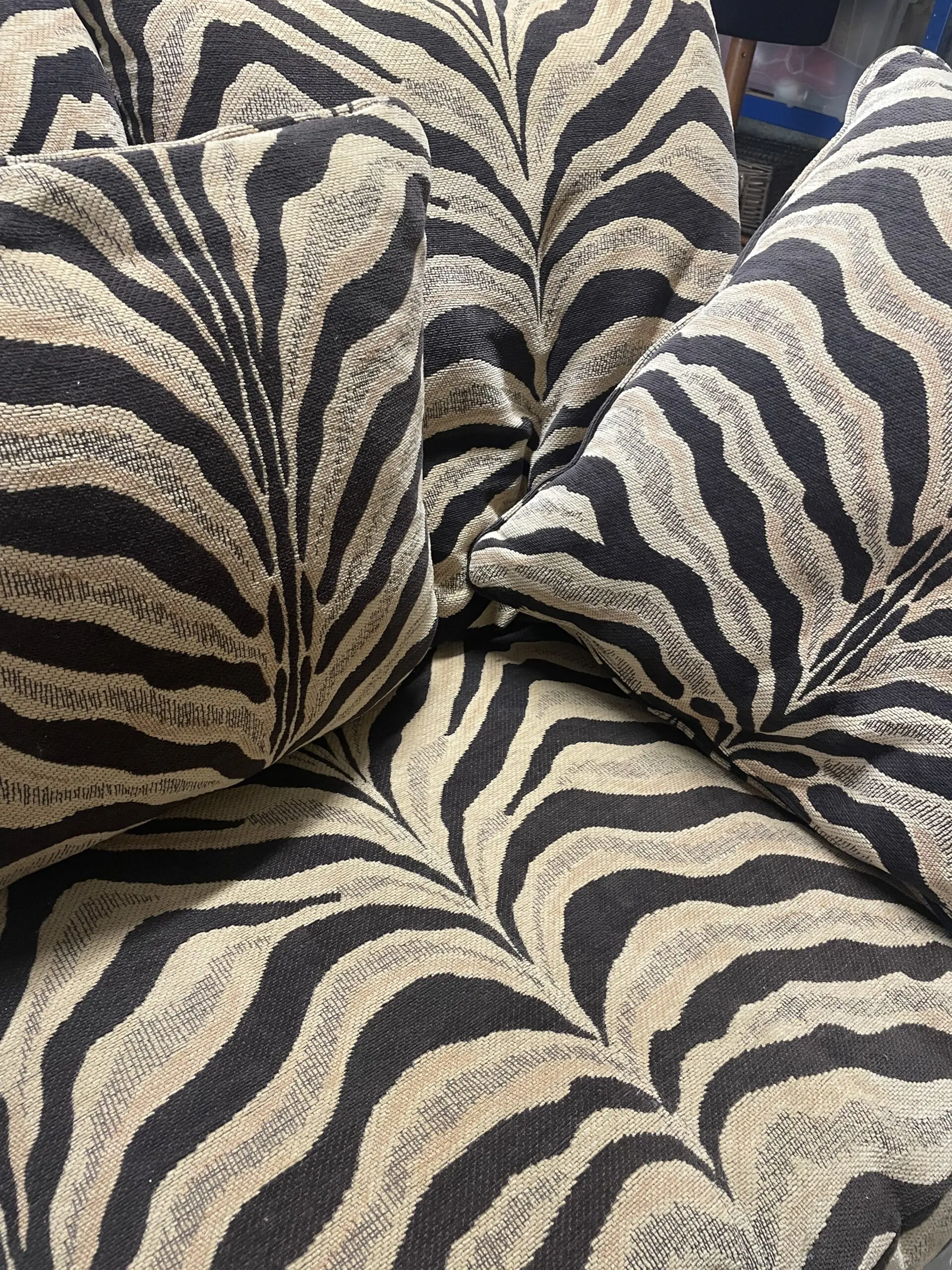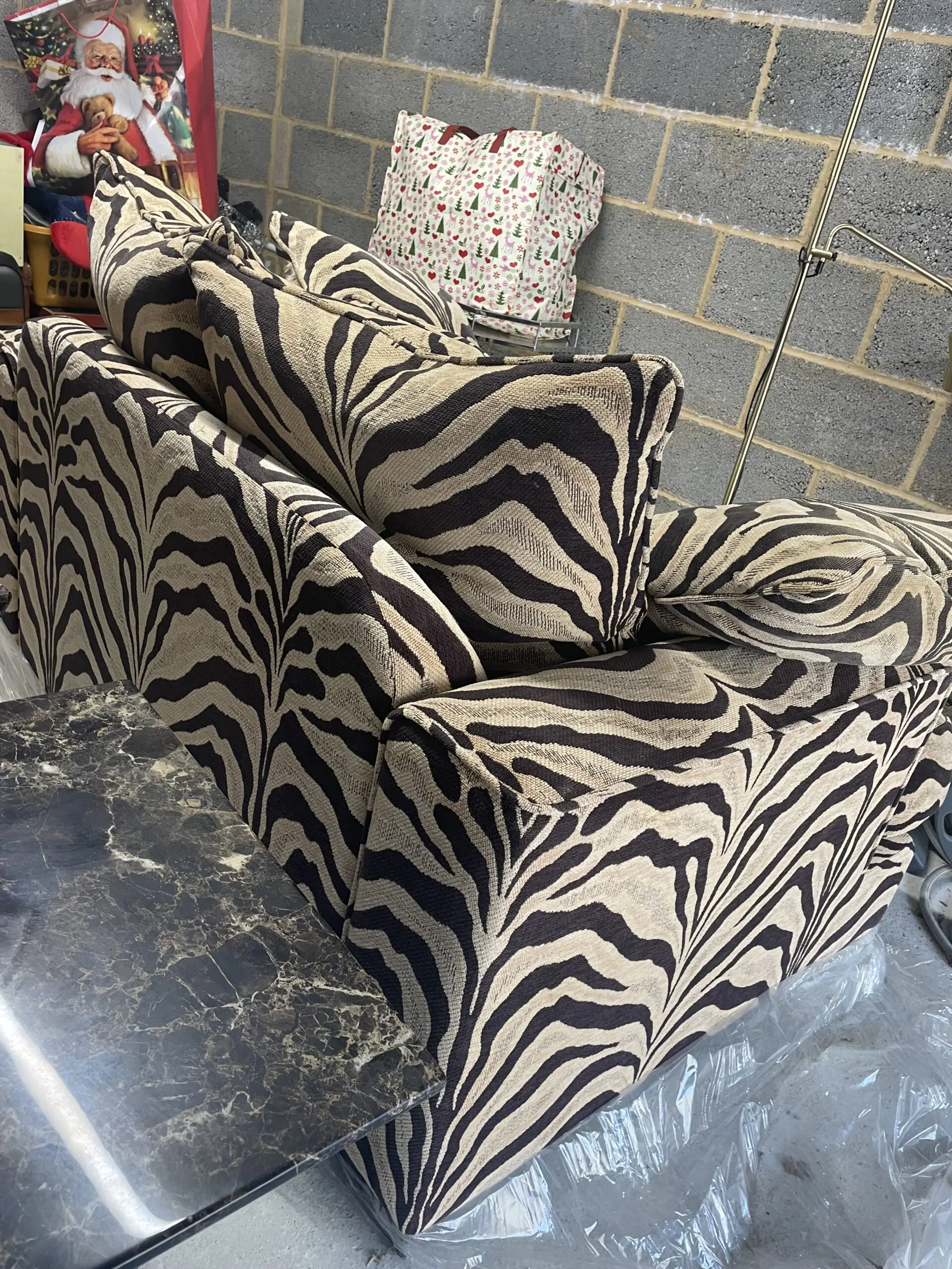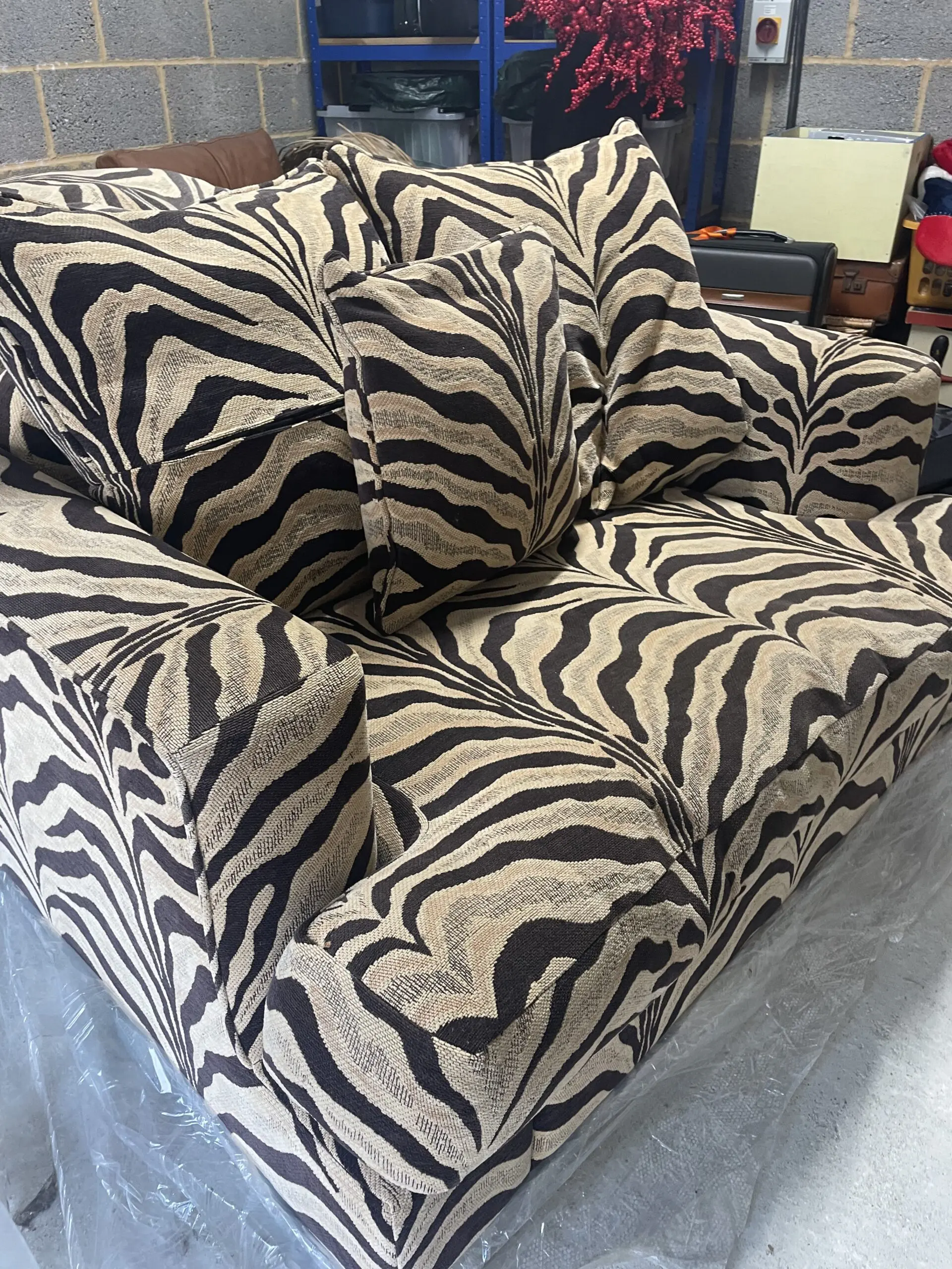 Modern design meets bold character. Designer sofa Zebra upholstery. Unused. Iconic piece of British craftsmanship.