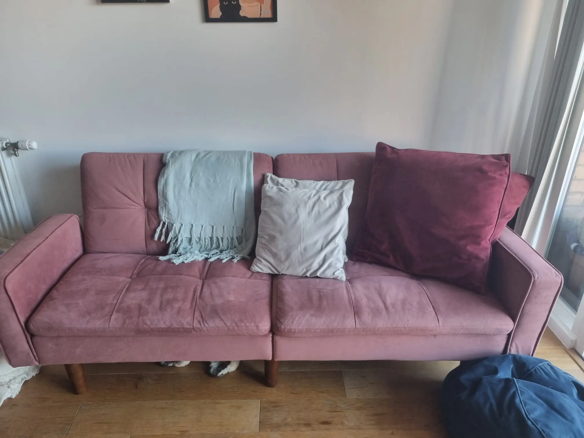 Sadly selling this lovely little sofa that is perfect for tight spaces, especially as it folds up into a cube and can be really easily transported.