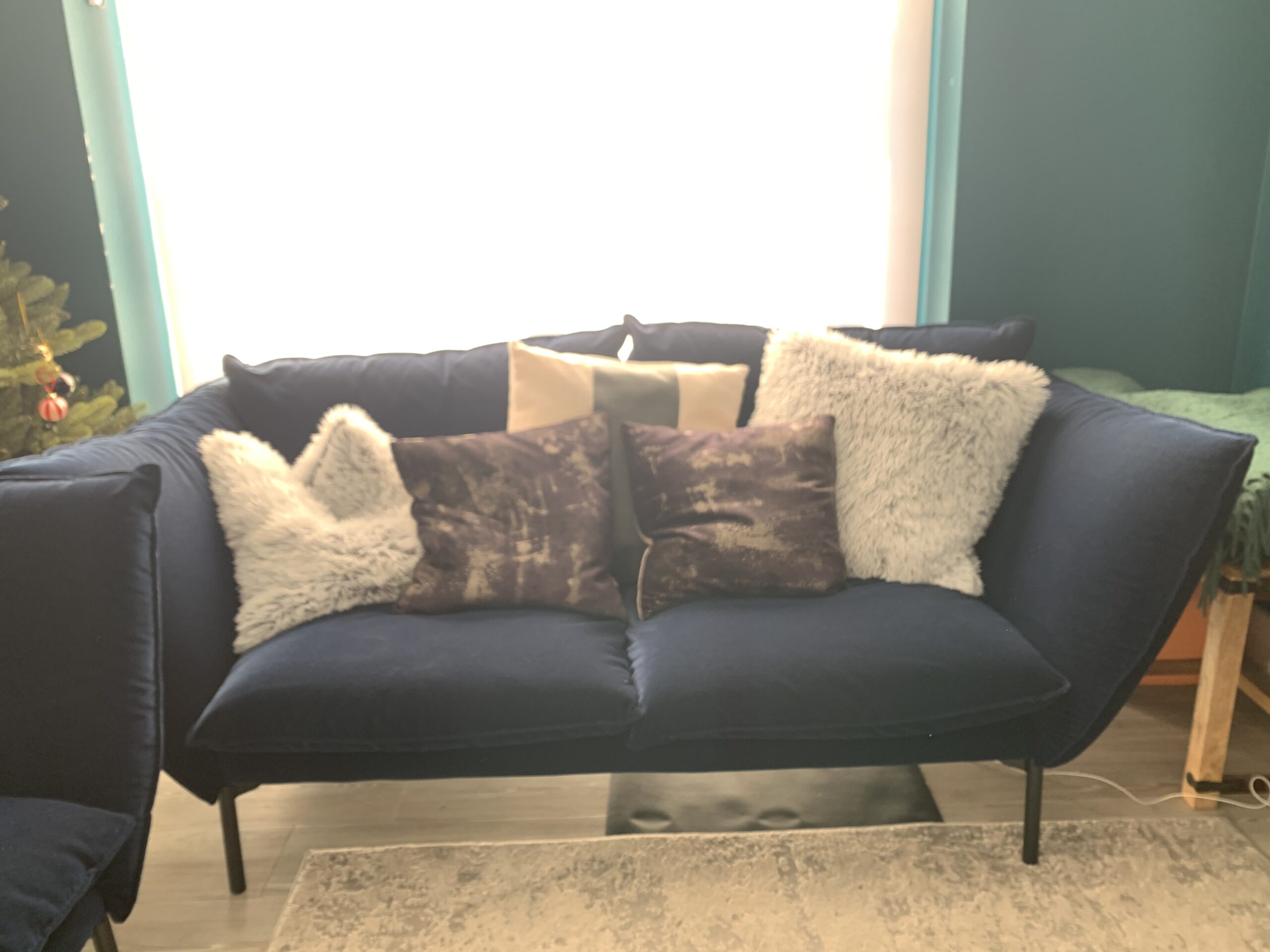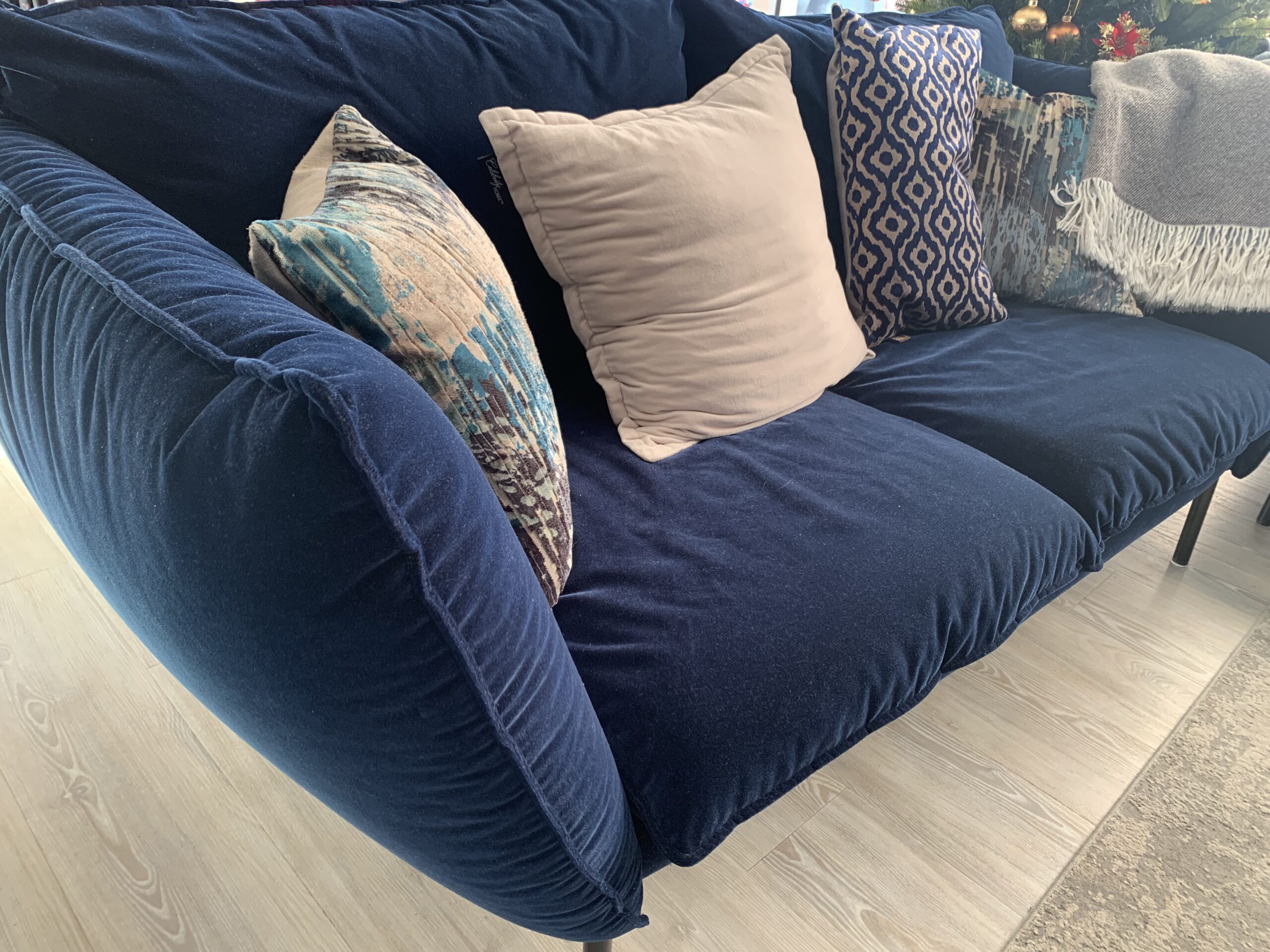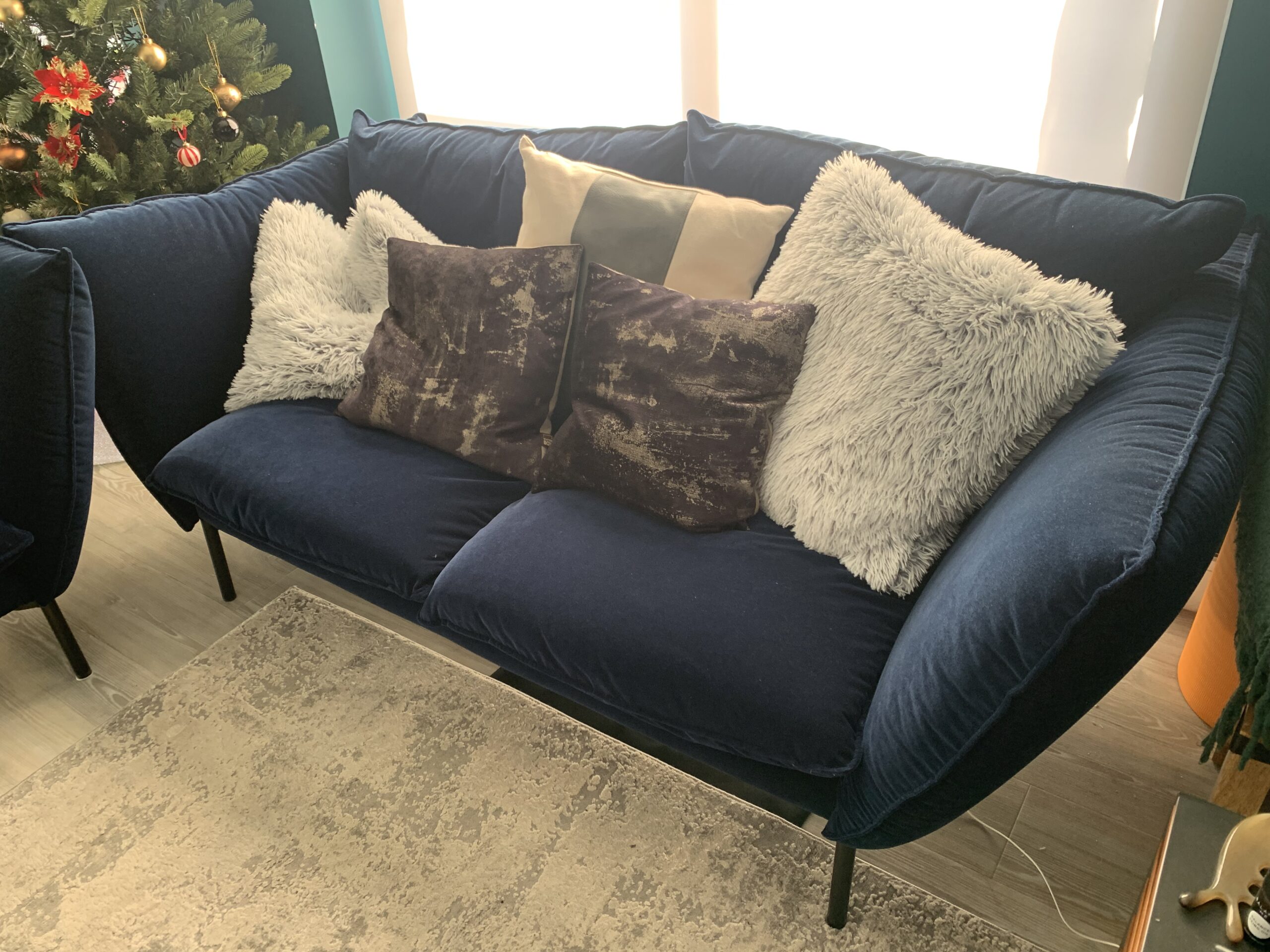 Give your living space a touch of class with these two elegant royal blue 2-seater sofas. Both pieces are 5 years old, very well maintained, and come from a smoke-free, pet-free home. The fabric is in excellent condition with no stains, tears, or fading.