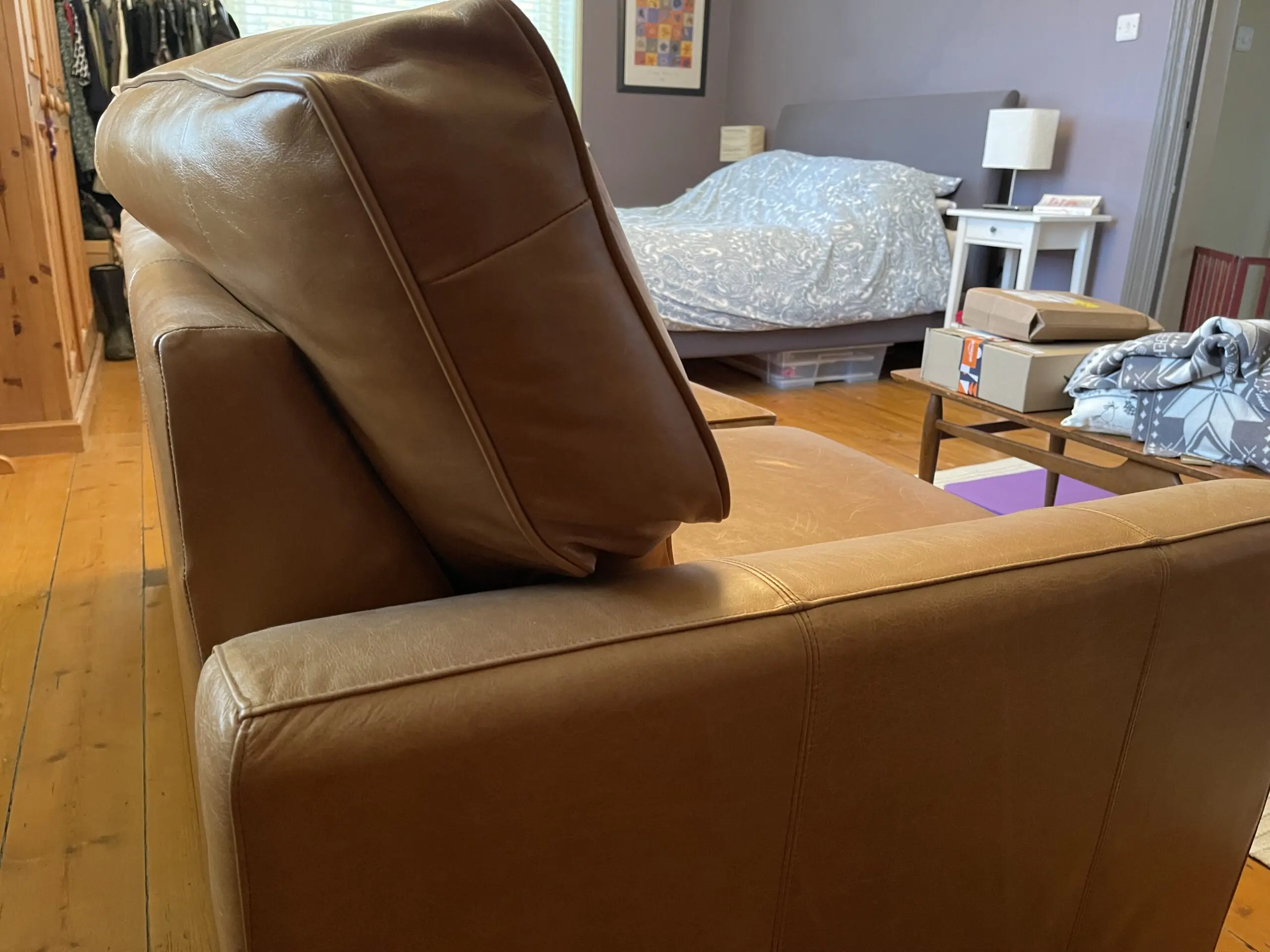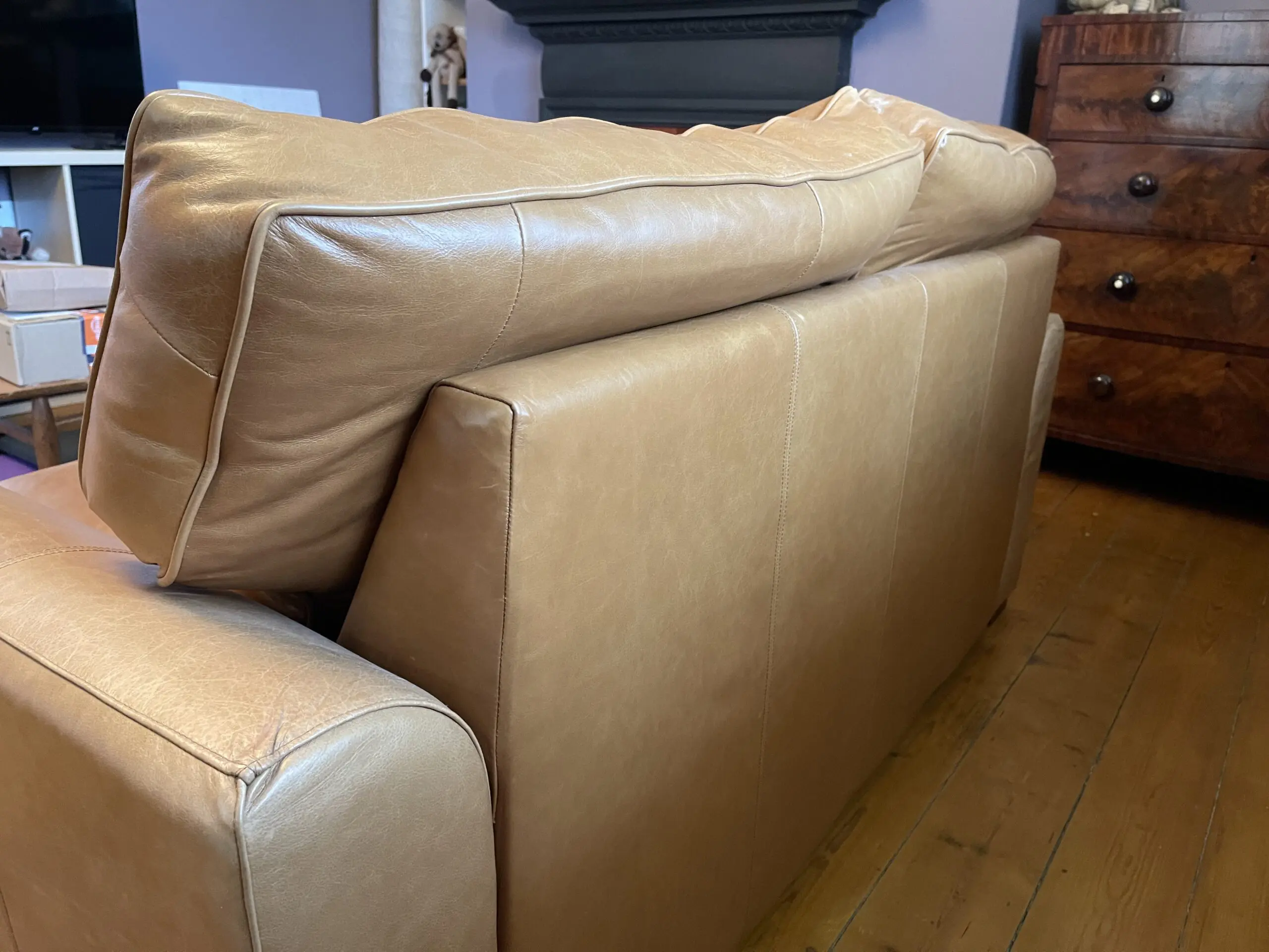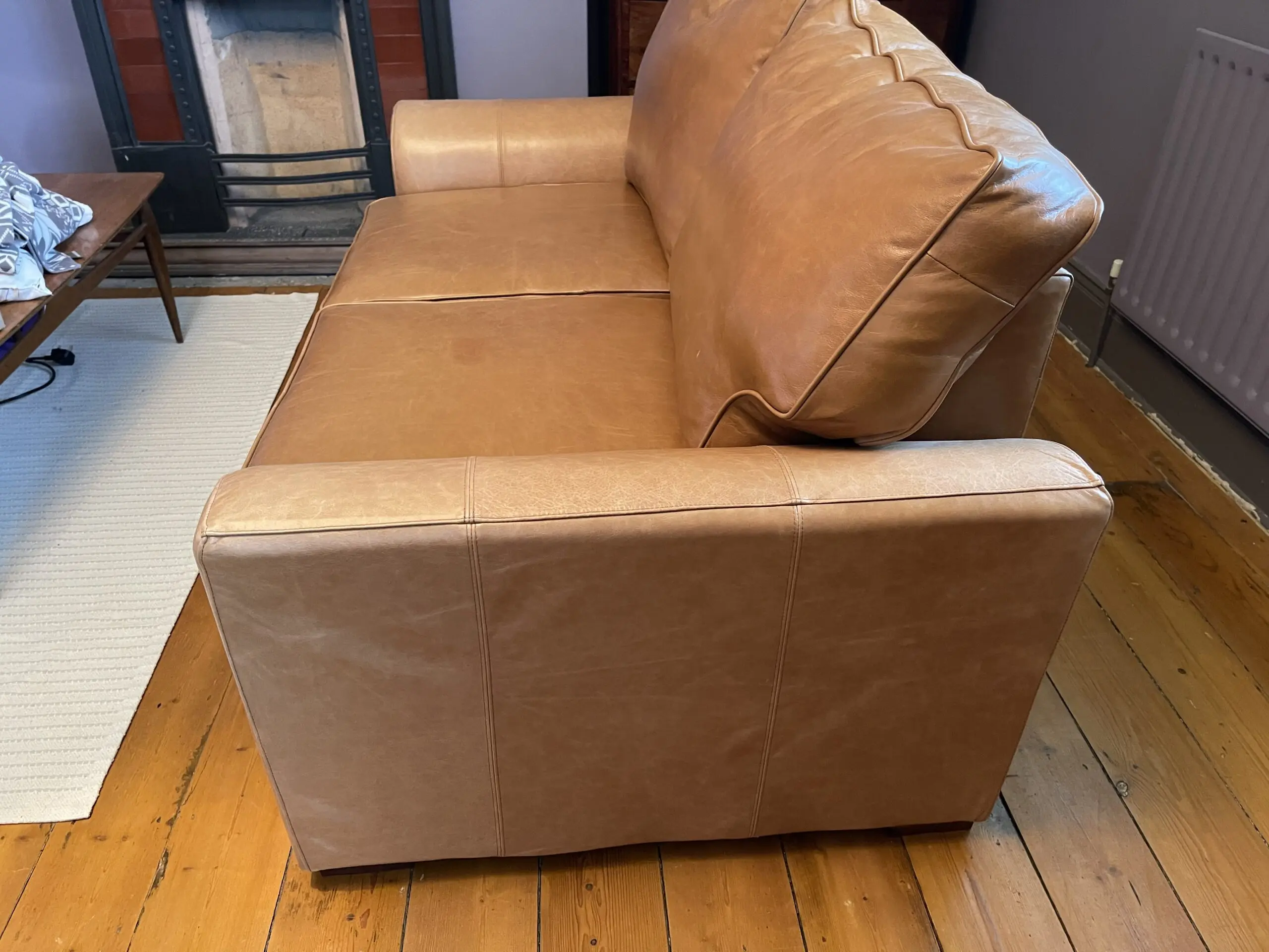 Hardly used 2 seater tan leather sofa