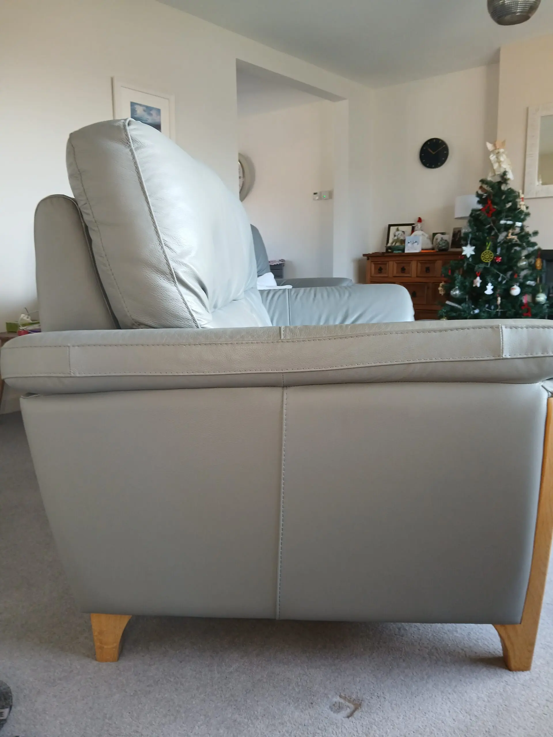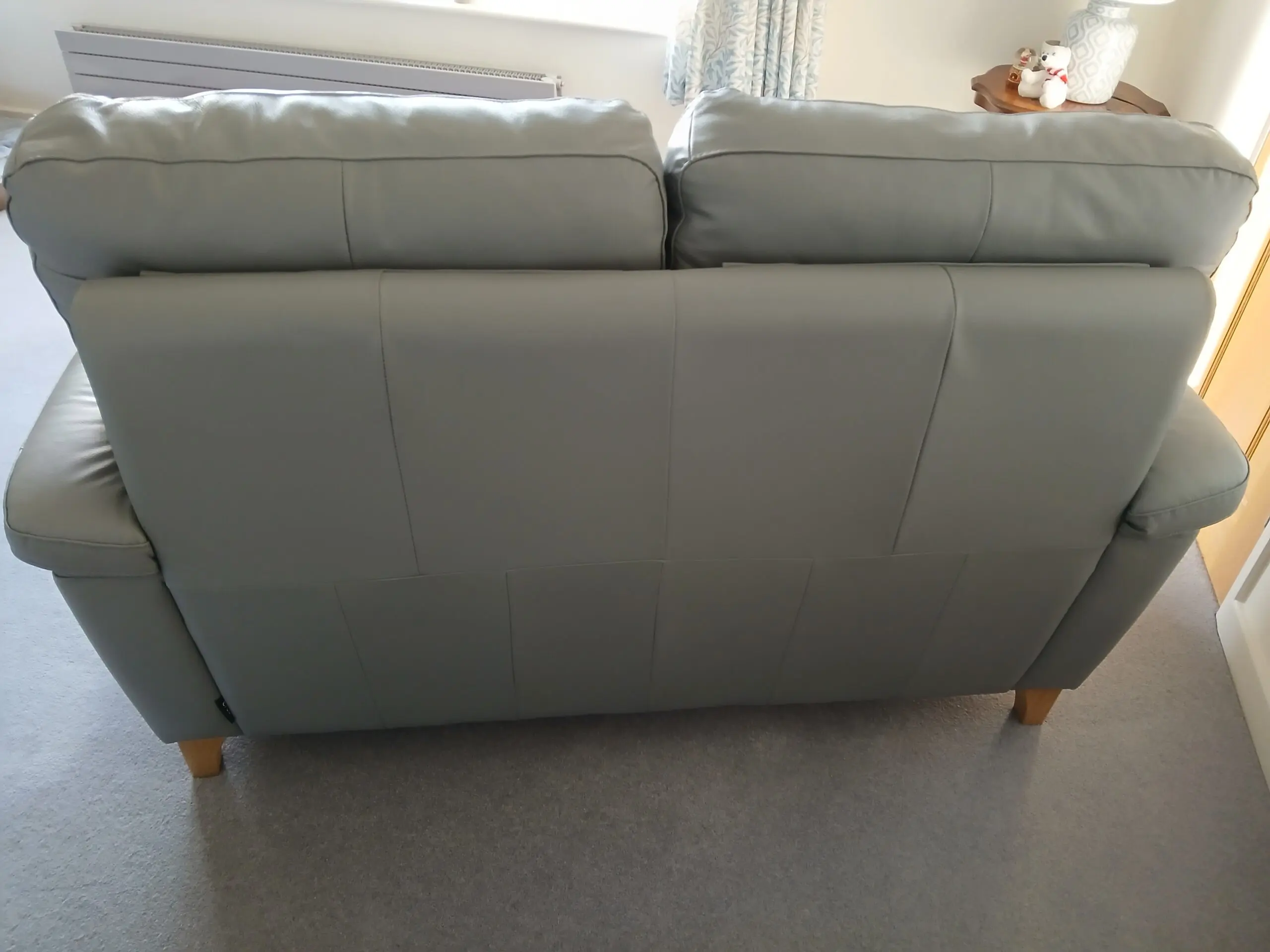Grey leather settee in excellent condition. No tears or marks. 2 years old and still looks new.