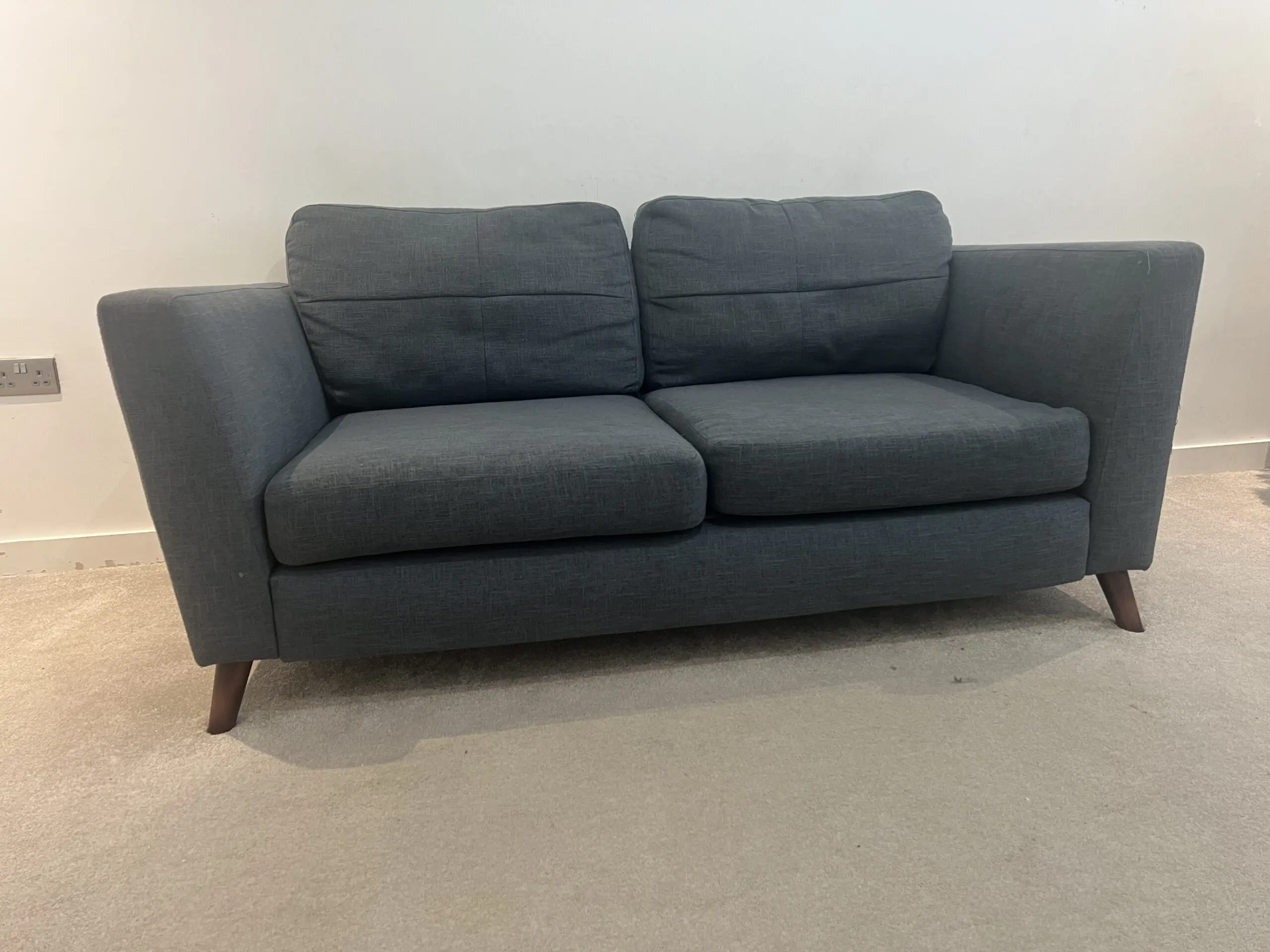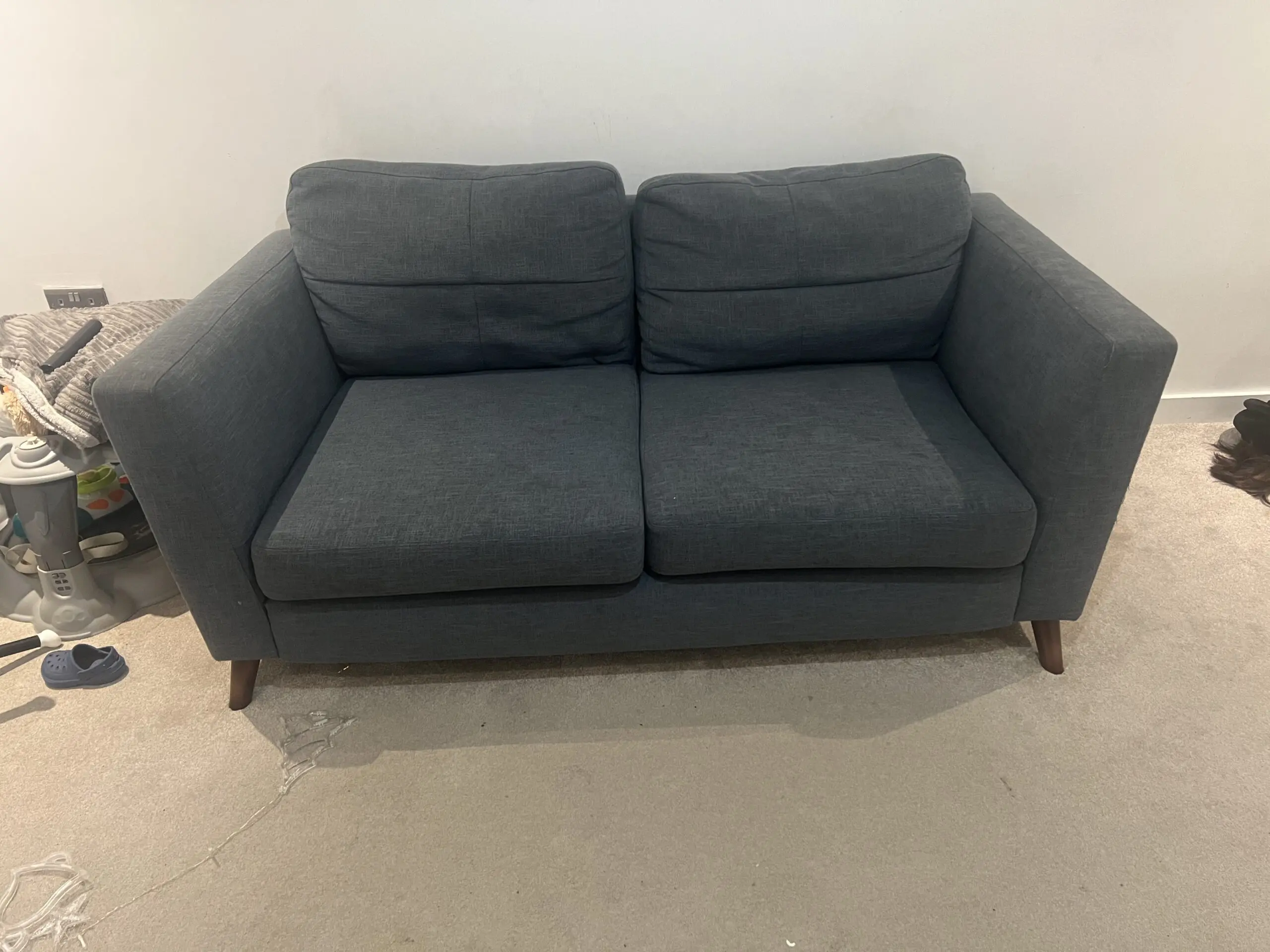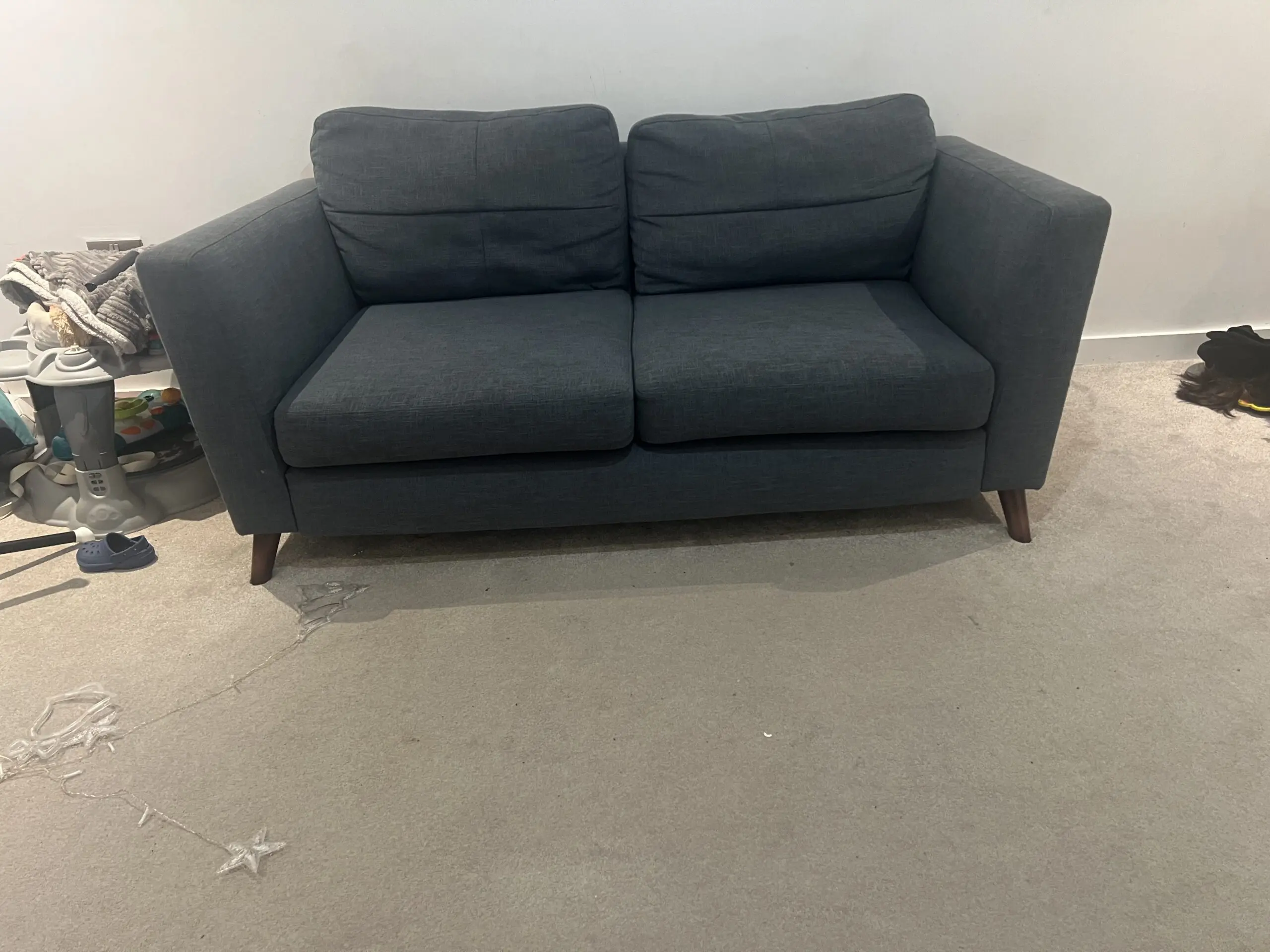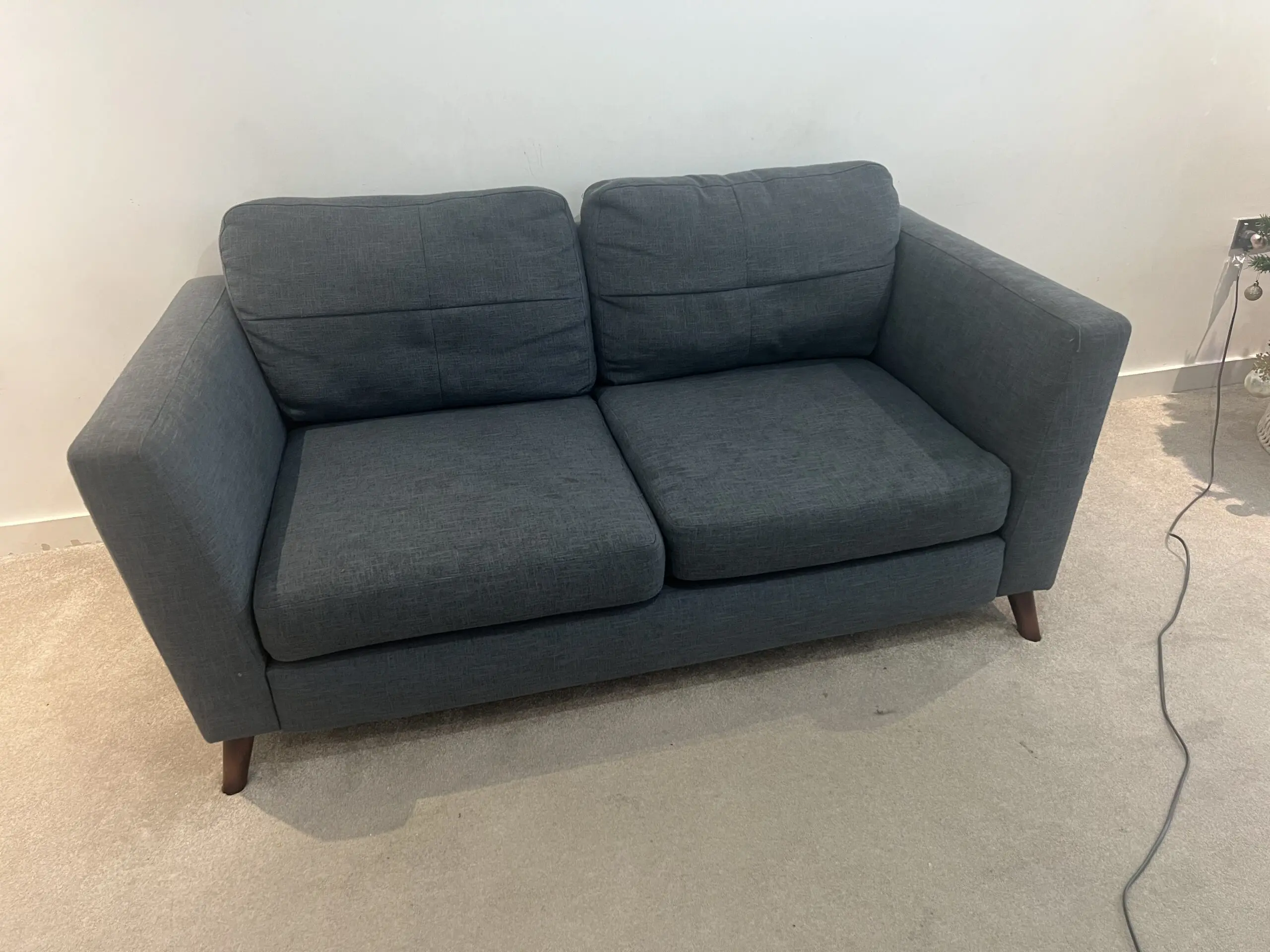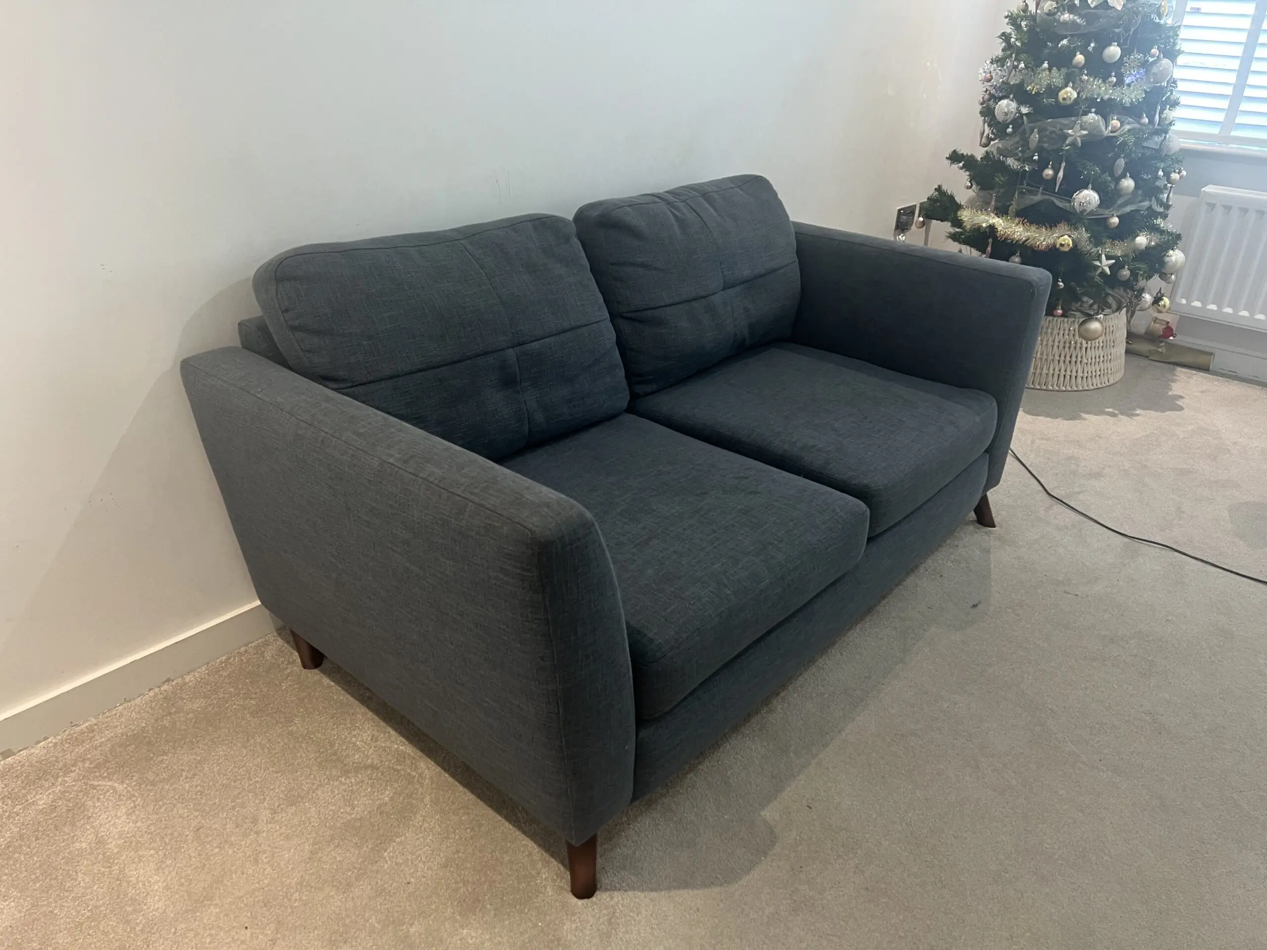We’re selling our modern and comfortable dark grey 2-seater sofa, perfect for a small living room, flat, or as an accent piece in a larger space.