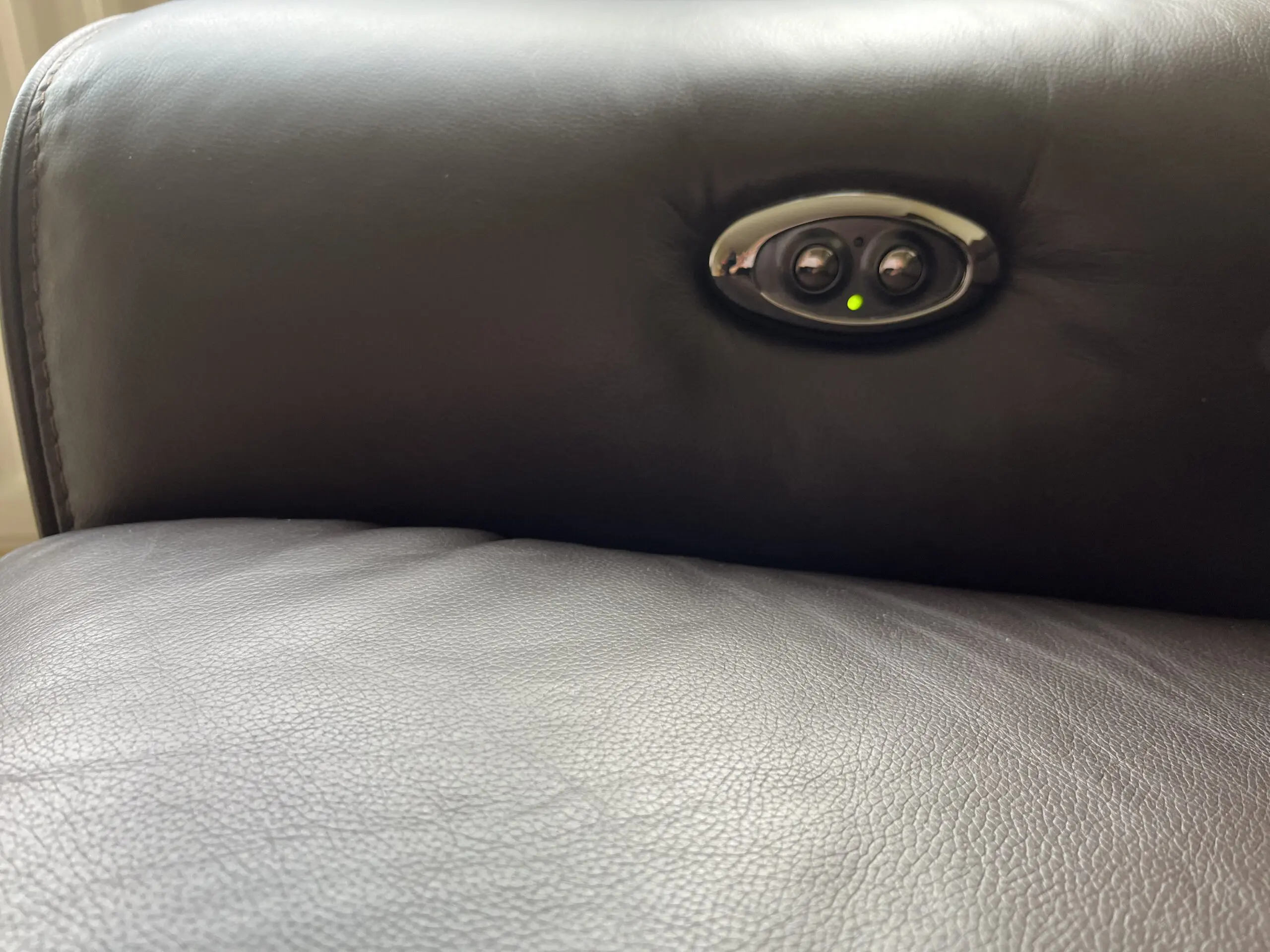 Each seat reclines individually with buttons on the inside of the sofa for ease of access, and each headrest is adjustable for comfort (as seen in the pictures).