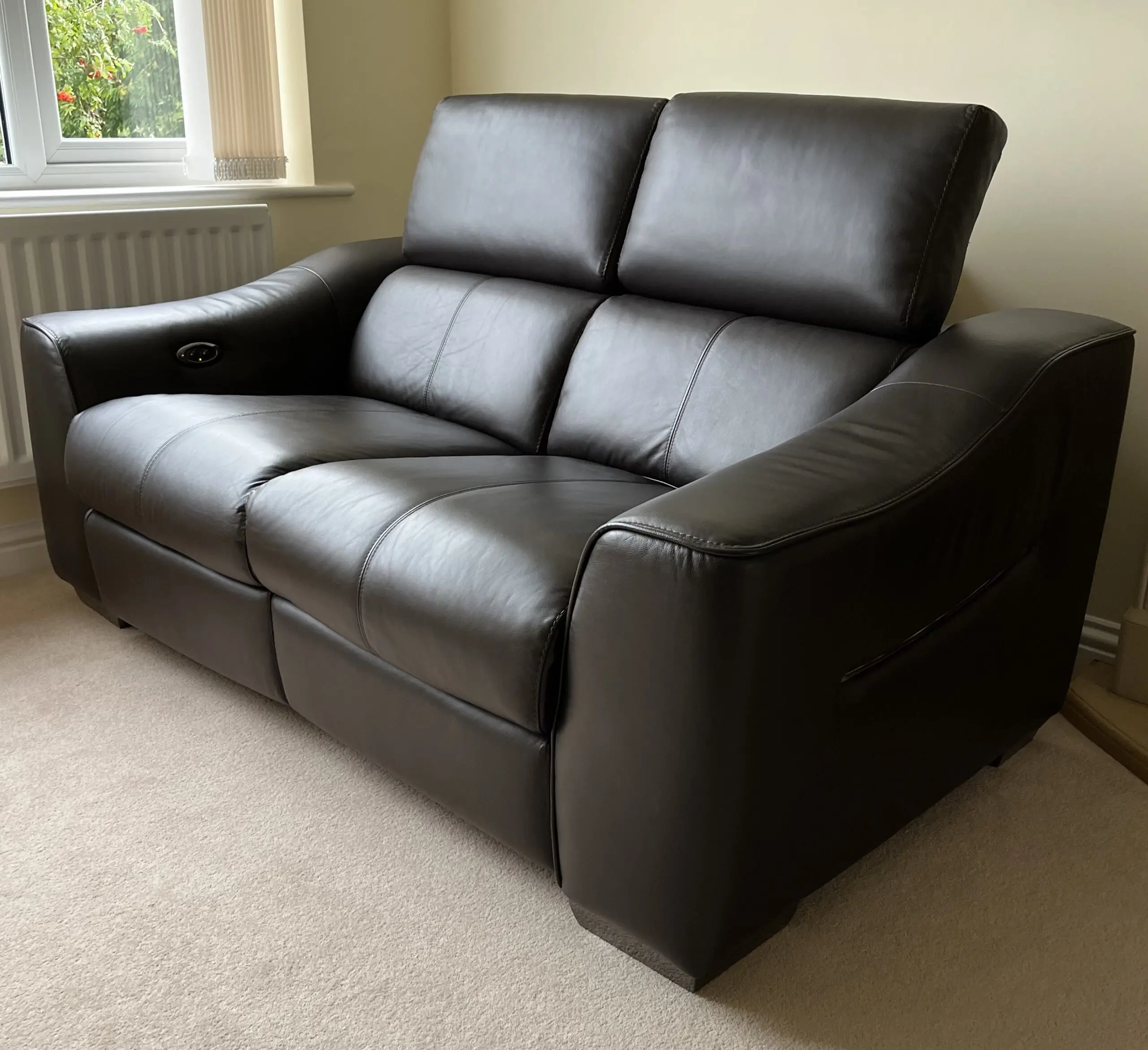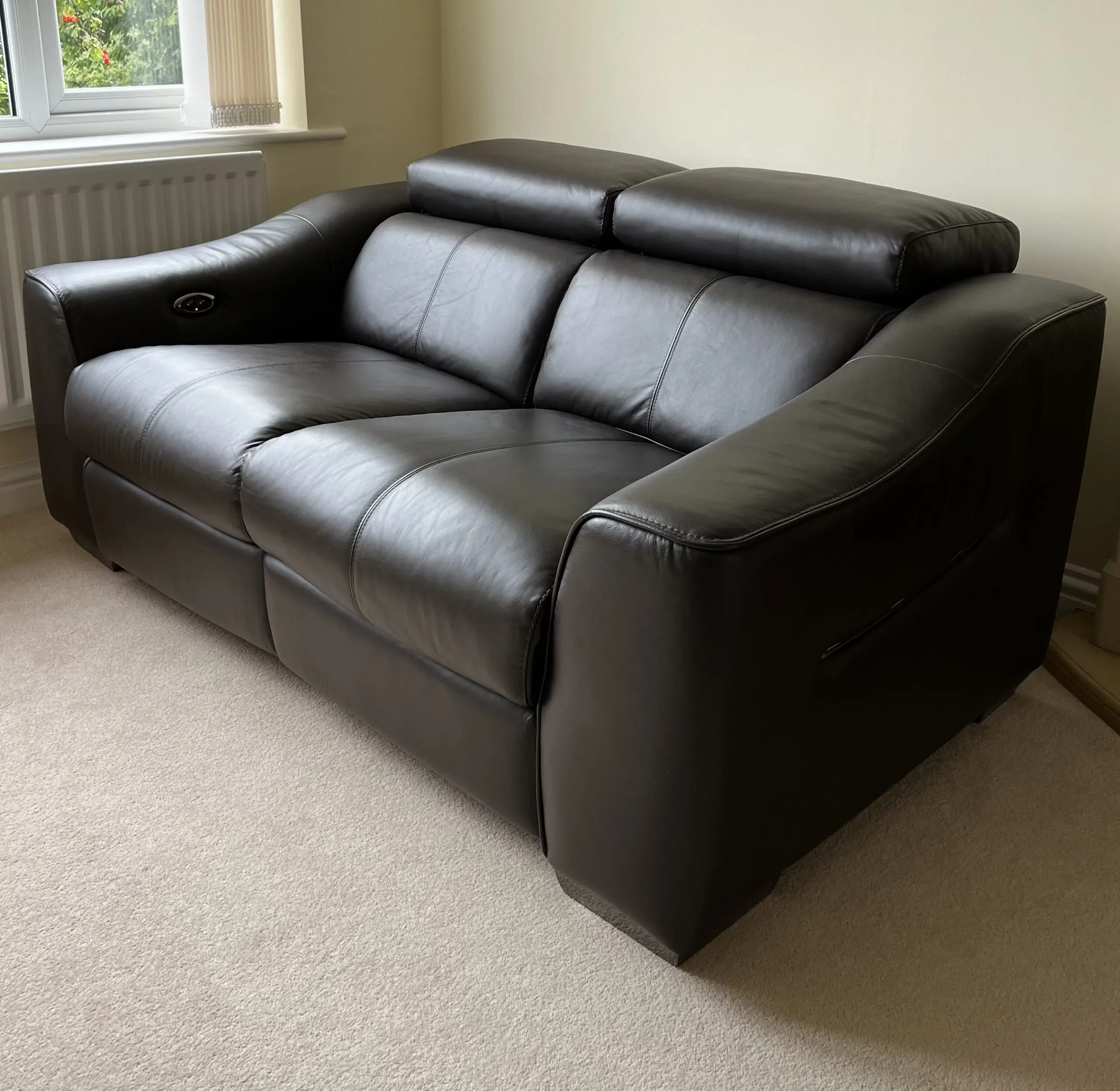Beautiful brown leather, 2-seater powered recliner sofa.
