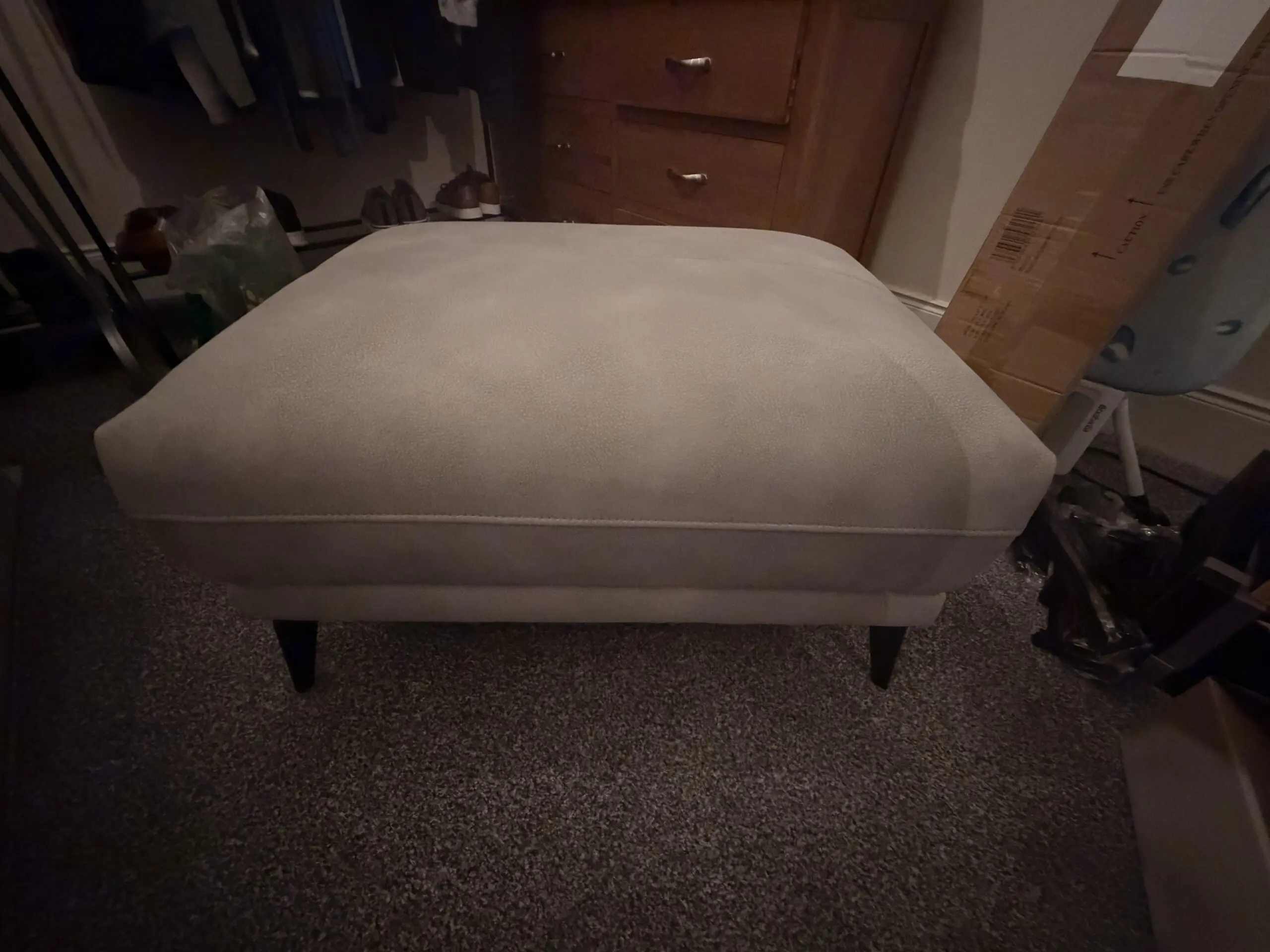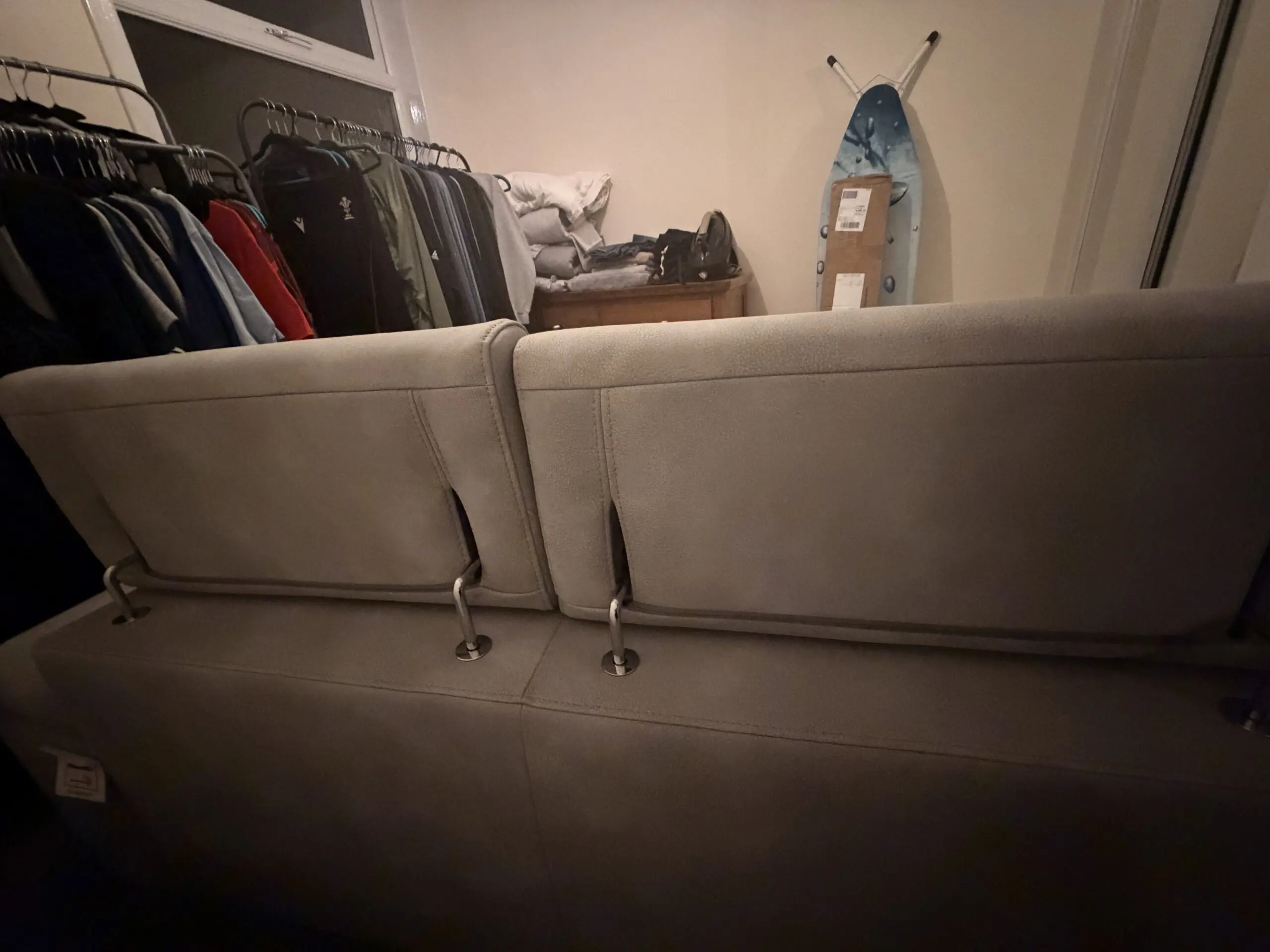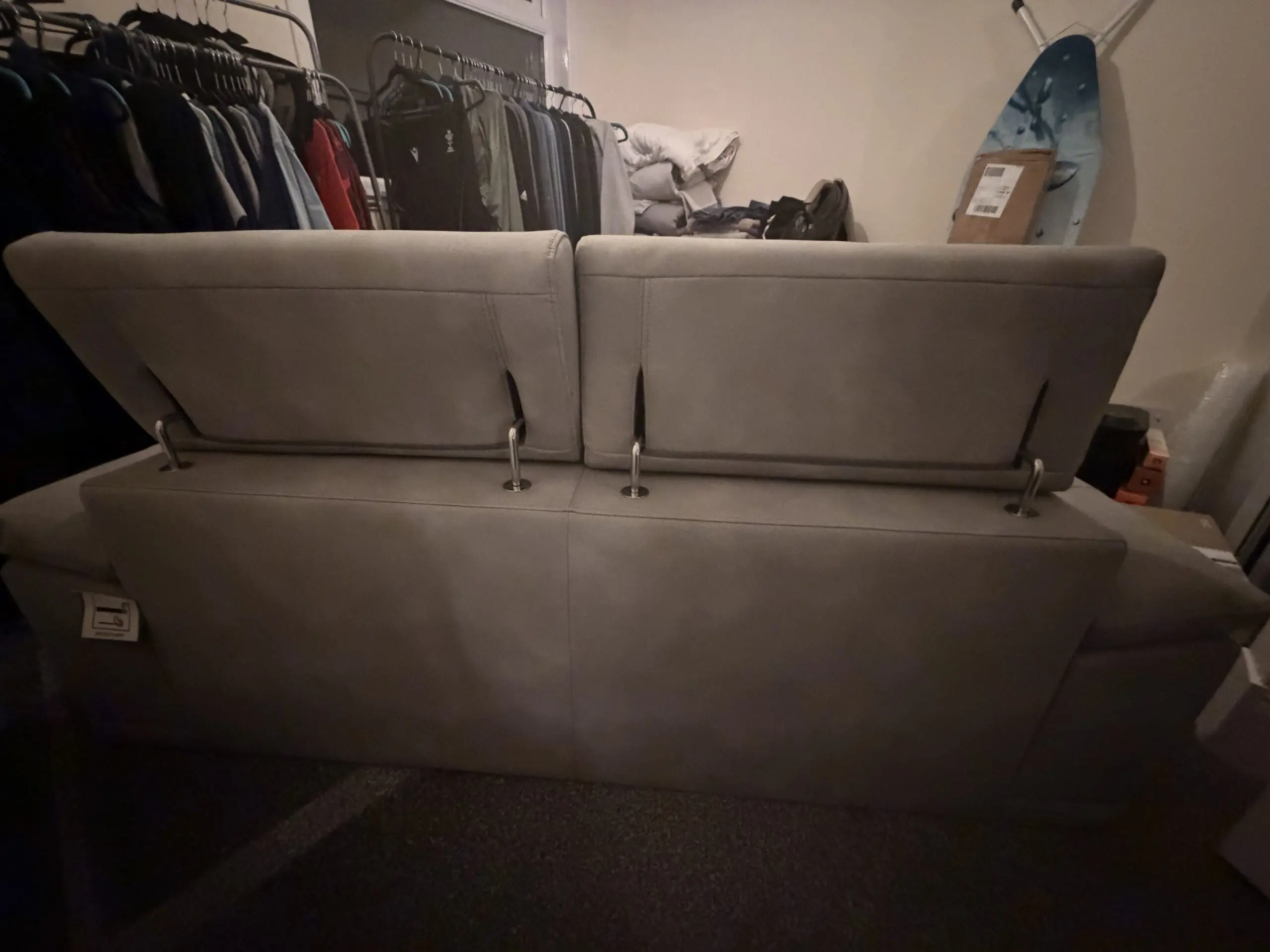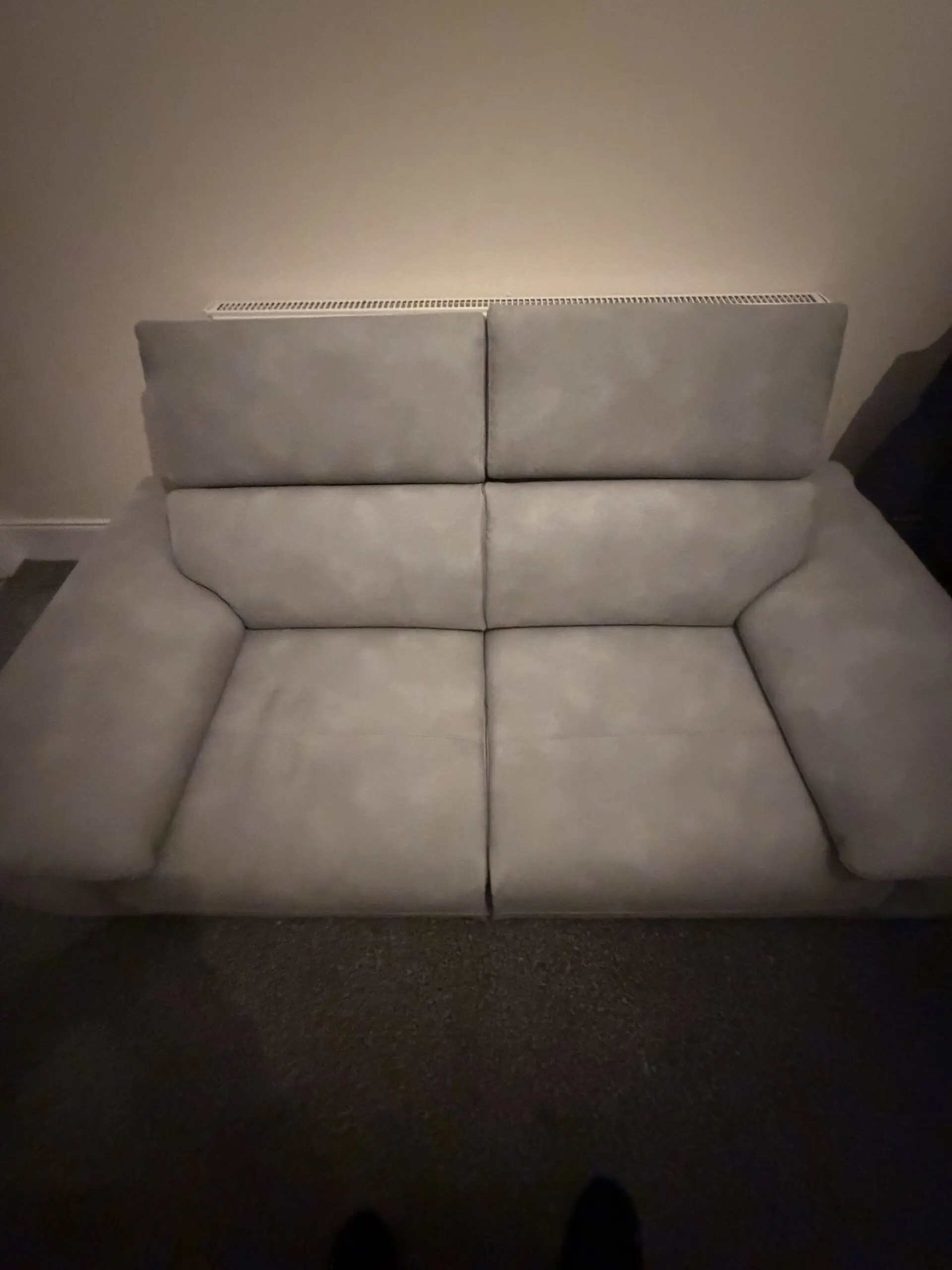 2 seater leather sofa with adjustable headrests in Grey with matching footstool immaculate
