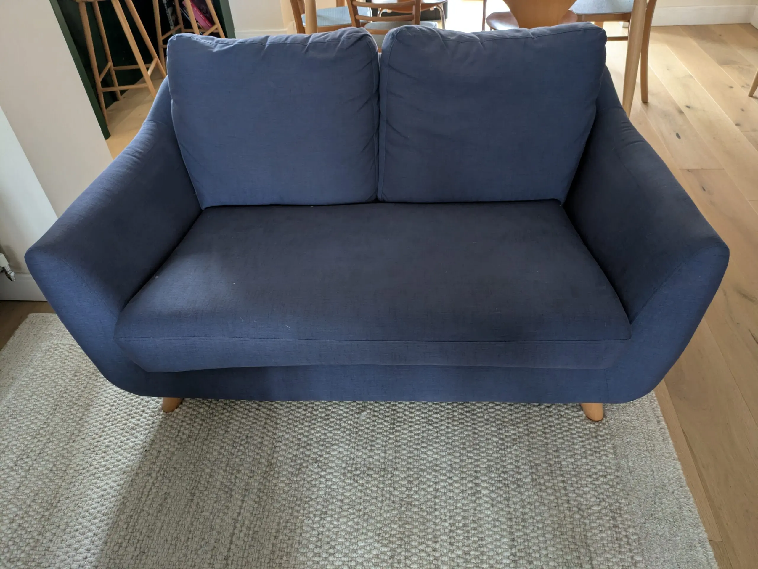 Gplan Vintage 2 seater sofa purchased in 2019 from John Lewis. The colour is “festival ink” model “the sixty-eight”. Light wood feet. Good used condition, cushions and zips intact from a pet and smoke-free home.