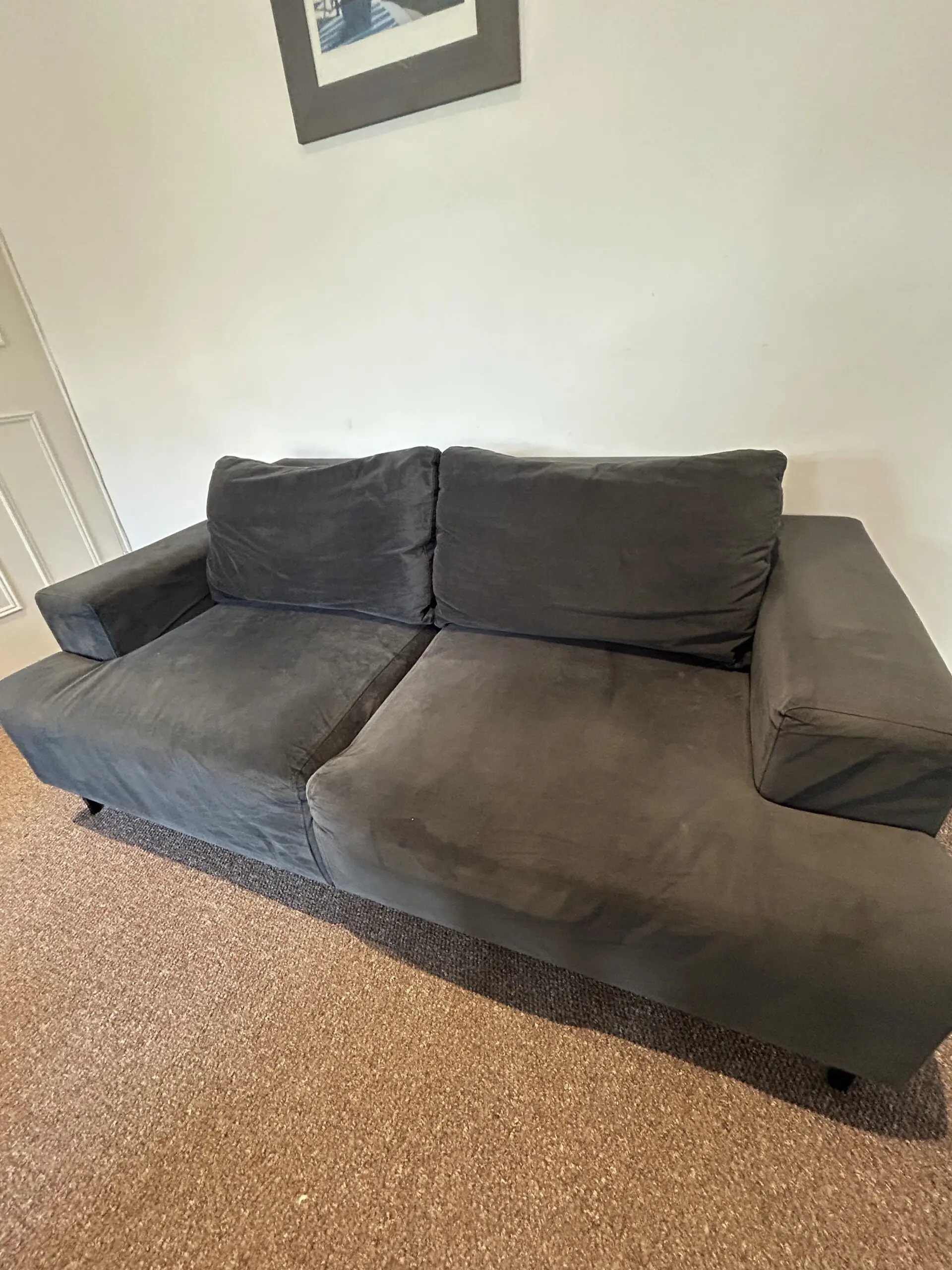 Back pillows have been removed so they could be washed but can easily be sewn back on.