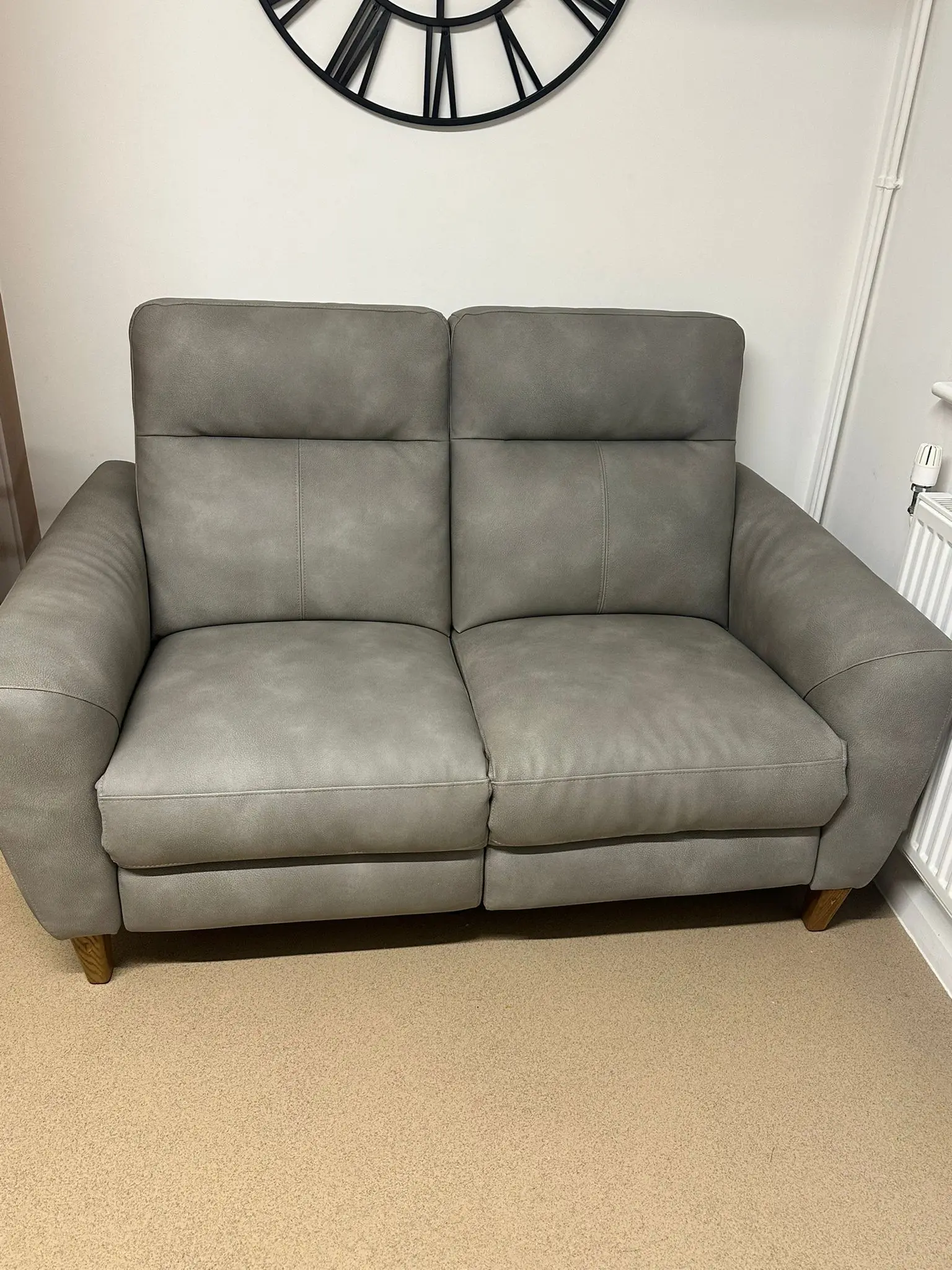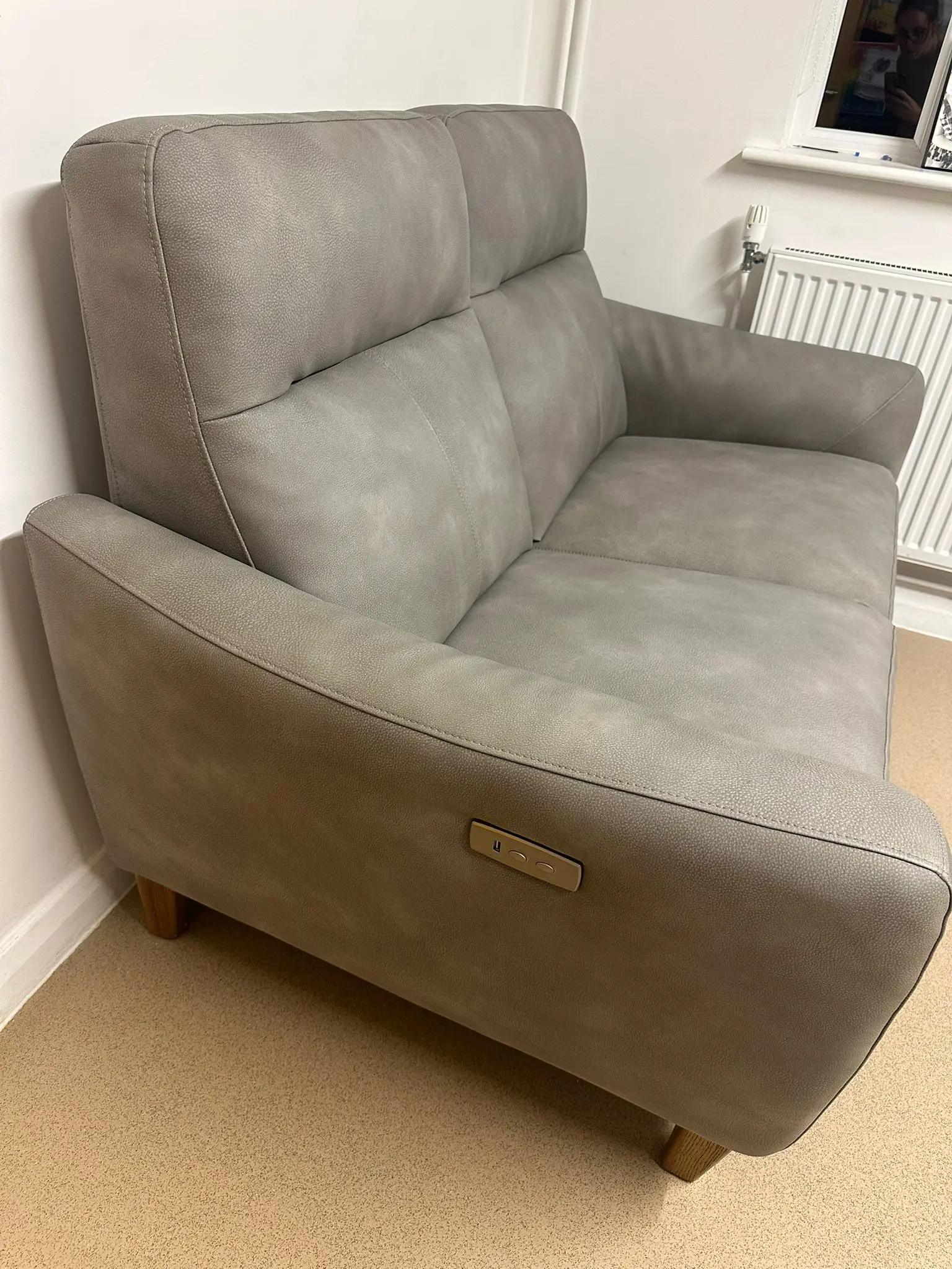 2 seater electric recliner sofa, only 2 years old, only been properly sat on approximately a handful of times due to having the 3 seater aswell, really good condition, does have a small mark see pic on side but barely noticeable, no rips or anything, still selling for over £779 on Black Friday deal, has usb ports on both sides, reclines both sides to make 1 big chair if wanted, really comfortable, doesn’t lose shape, easy to clean, selling due to not using just taking up too much space, easy to move around but really heavy to lift, up for £450 but willing to take sensible offers as the sofa is like brand new, the backs fold down for easy moving, any questions please ask