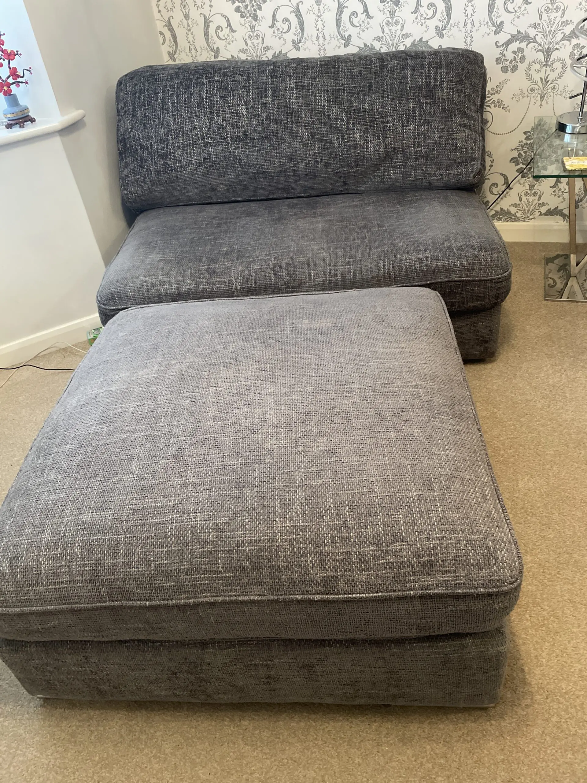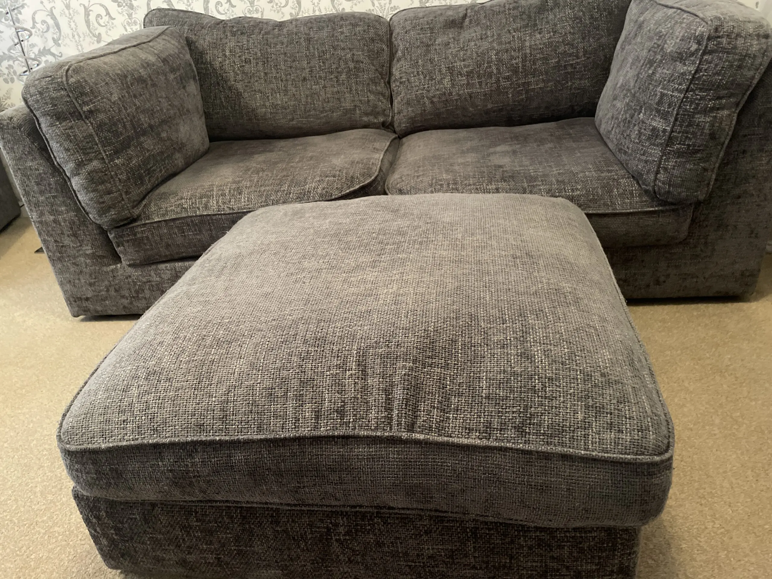 Here is the option for large 3 seater sofa 2 footstools it can be built into 2 seater and small 2 seater sofa . They all un clip underneath to make your design of sofa and for deivery . All cushion come of . Pet free home very comfortable to relax on great condition .