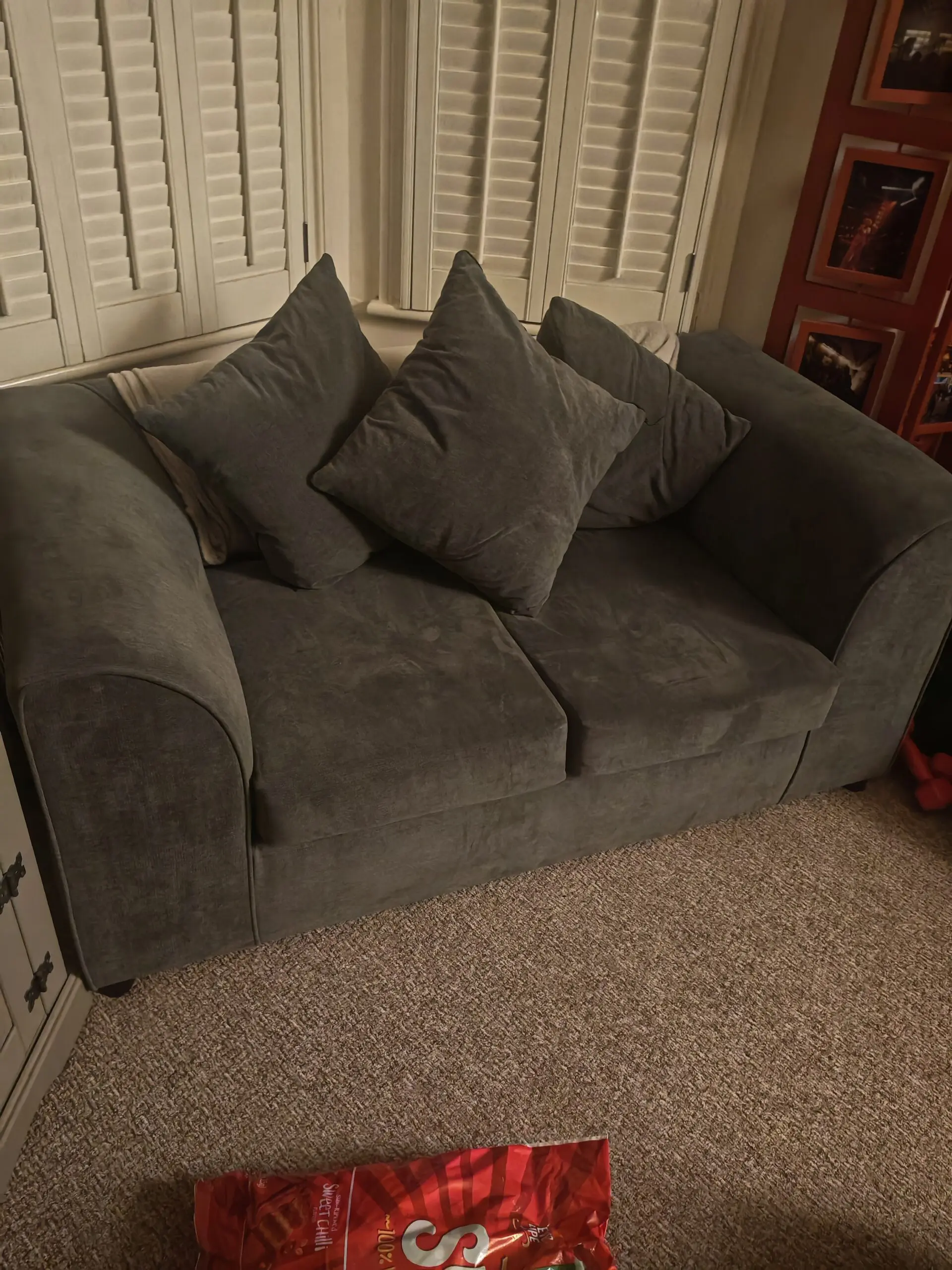 Both in very good condition, the smaller sofa is like new as has barely been used by anyone at all, mainly purchased to fill the void in the room