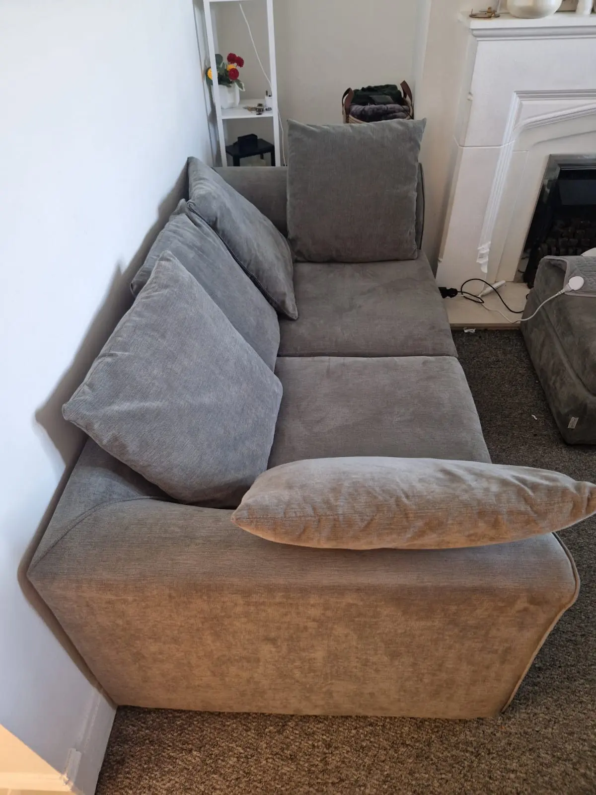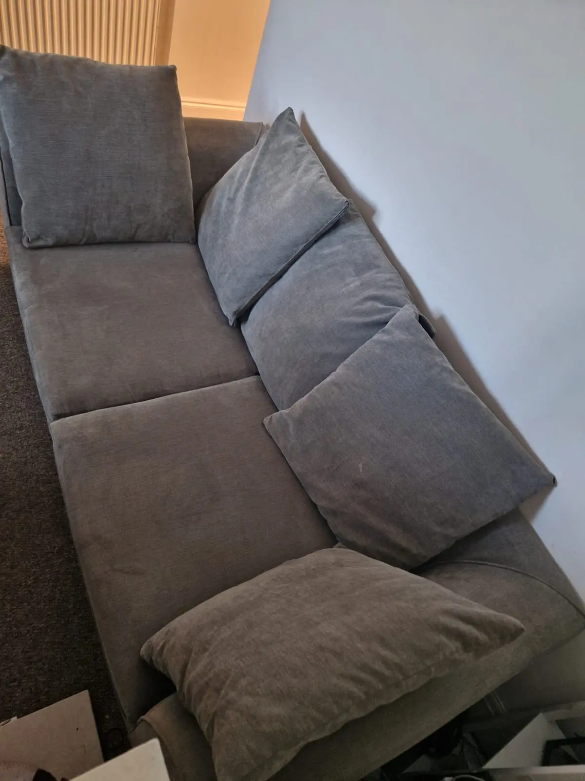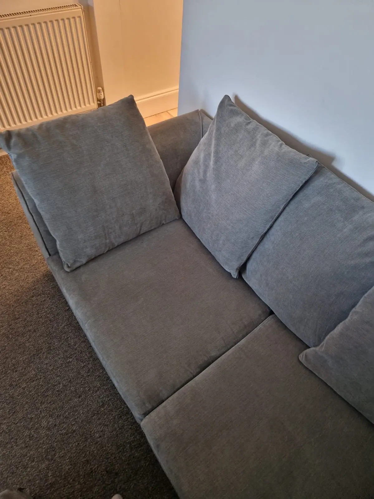 In good condition no damages no stains from a pet and smoke free house. 2 seater sofa comfortable and generous spacing.
