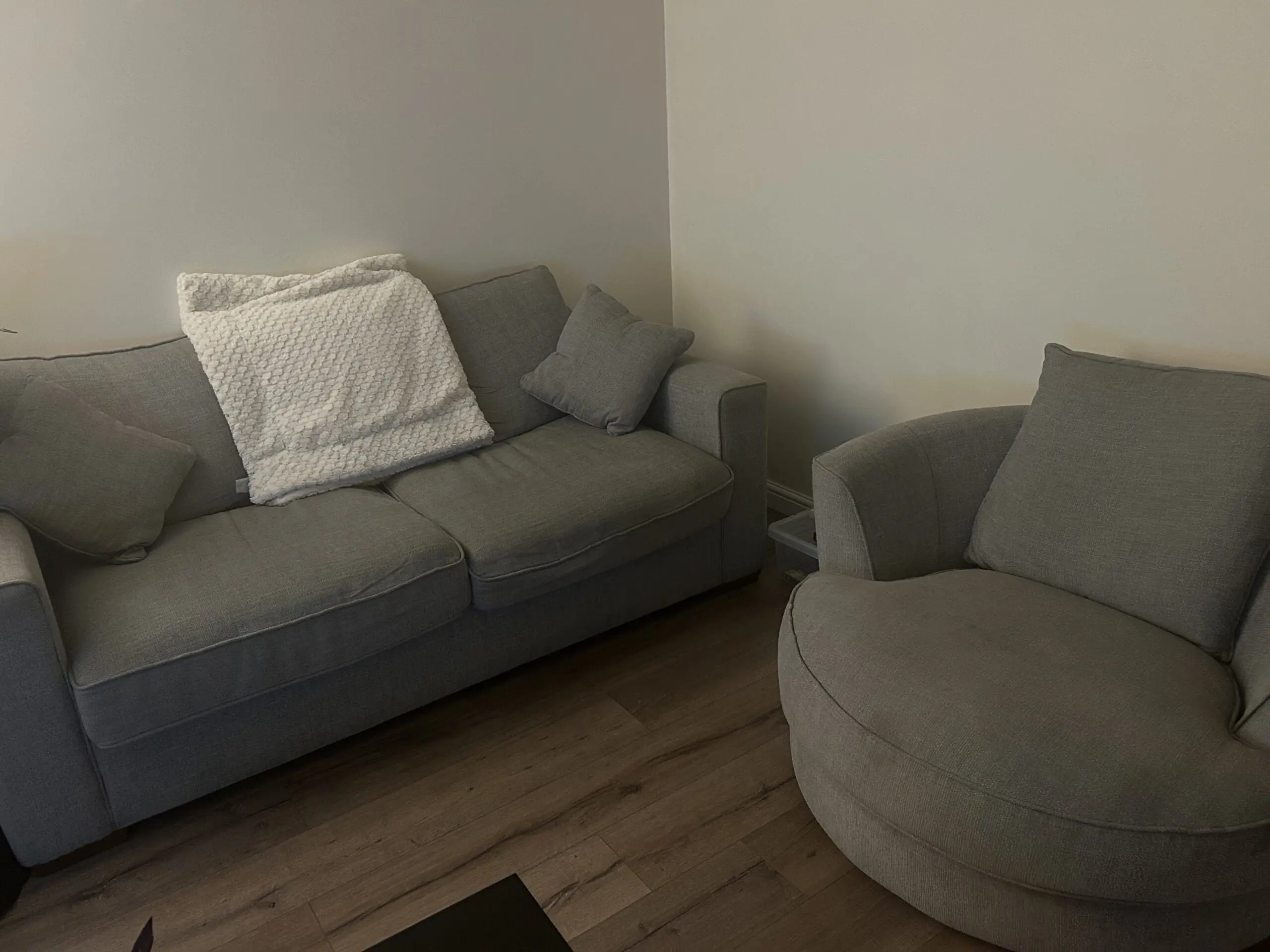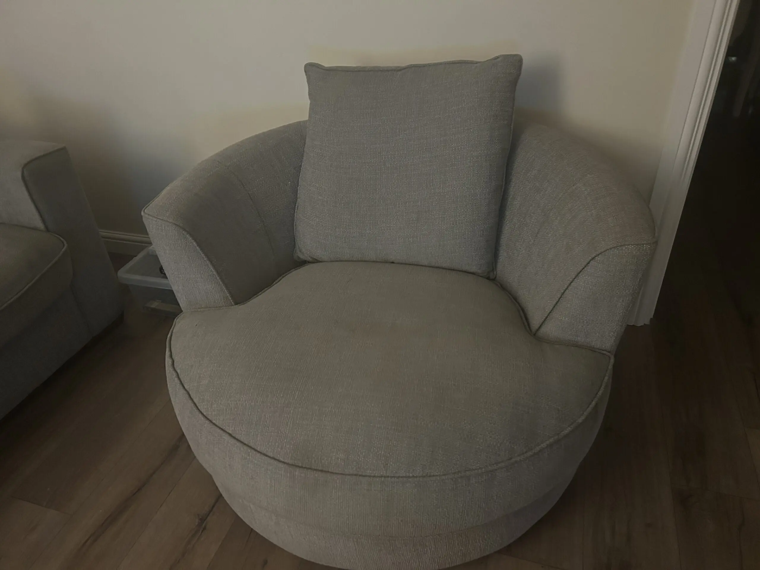 Grey Two Seater Sofa and Swivel Cuddle Chair
