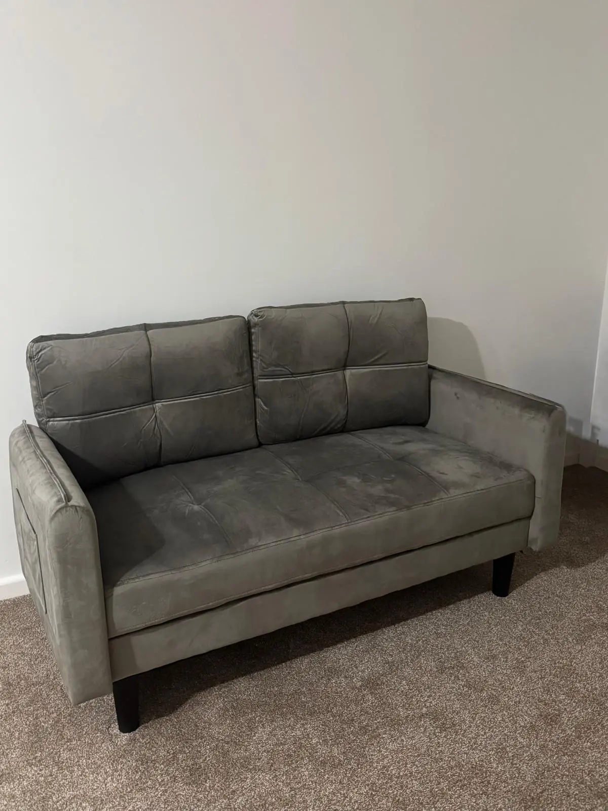 Grey two seater velvet sofa
