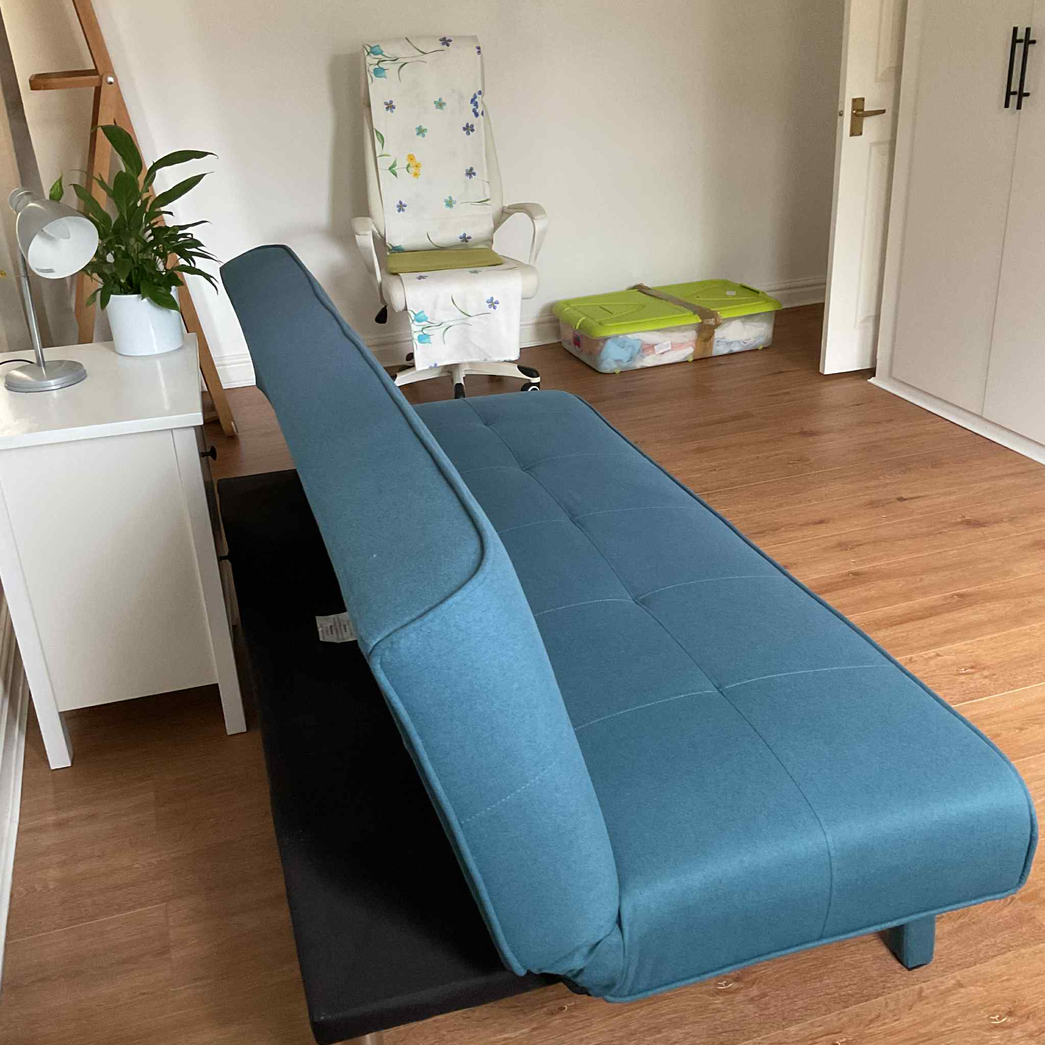 Almost like brand new. Teal/ turquoise blue Click clack sofa bed by Made.com.