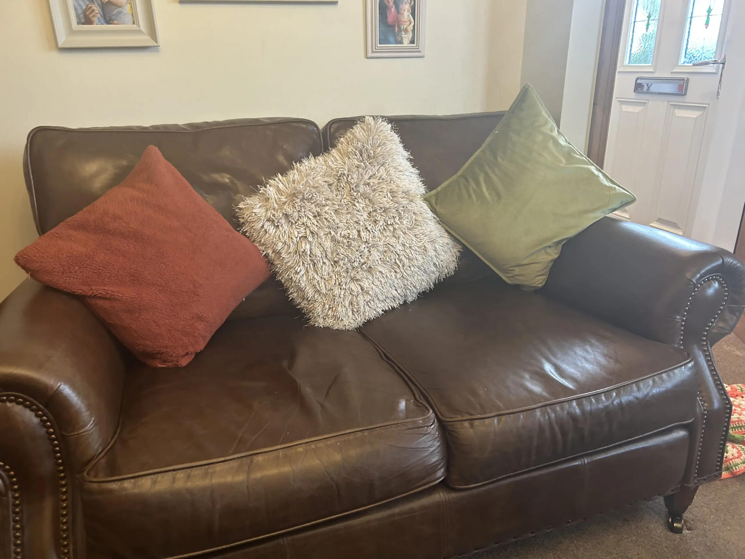 Lovely “‘Hepburn’ 2 seater dark brown aniline leather sofa from Old Boot Sofas. Excellent condition . Only 2 years old. Change of decor forces sale. Cushions not for sale.