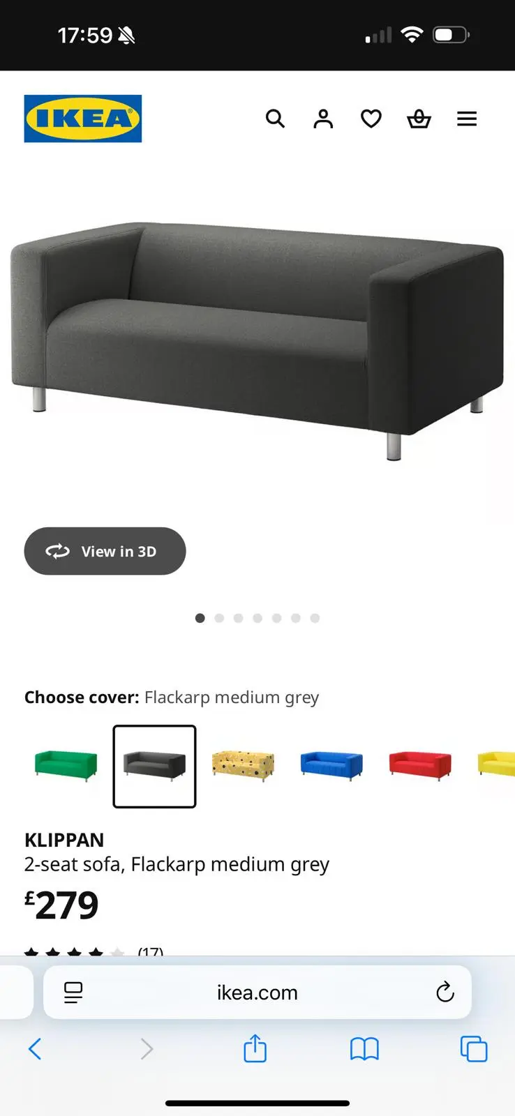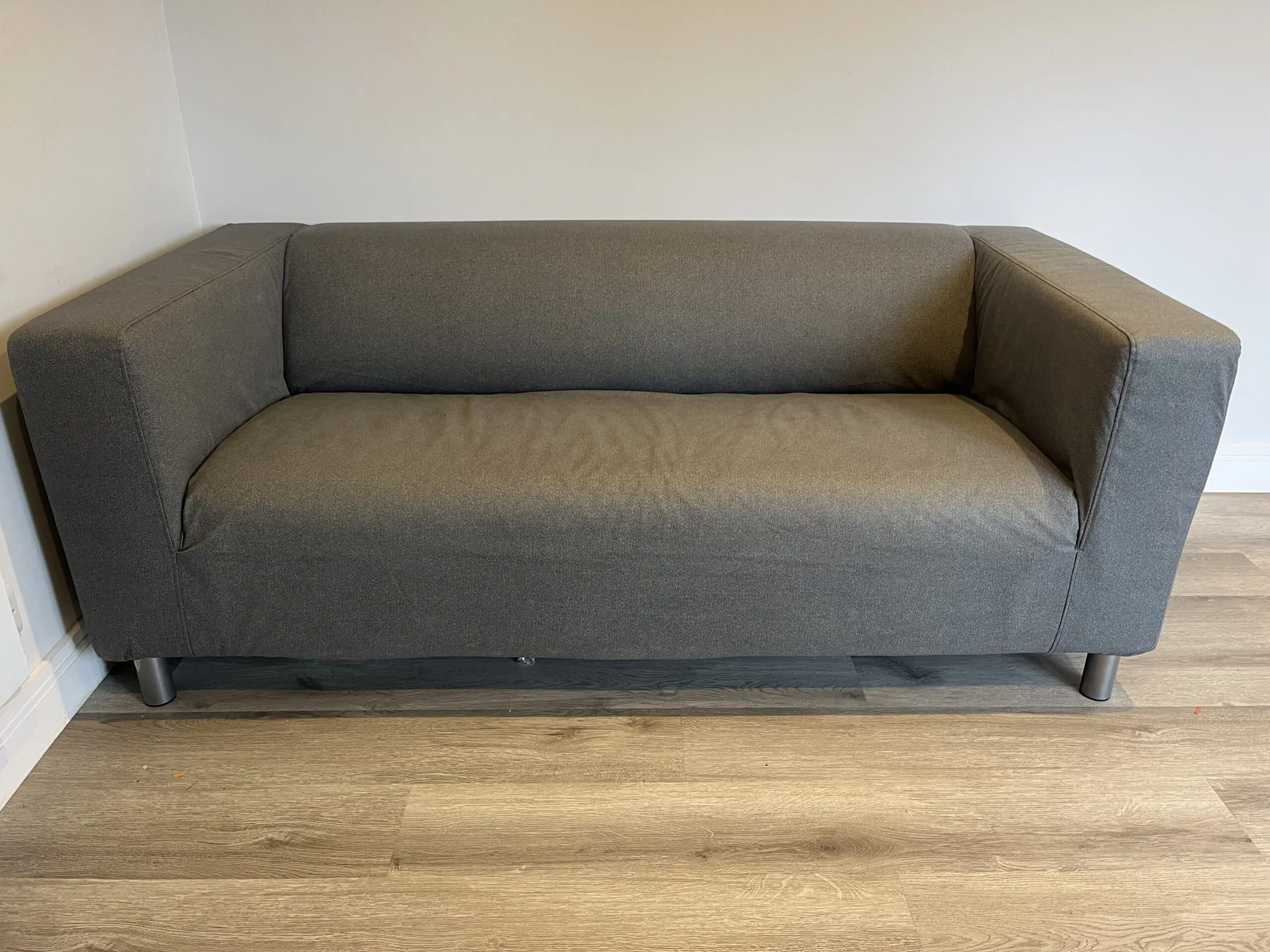 IKEA 2-seat sofa, Flackarp medium grey. Excellent condition just a little too big for kids playroom. Only been used a few times. The cover comes off so is easily washable. Comes with instruction manual. Pet and smoke free home.