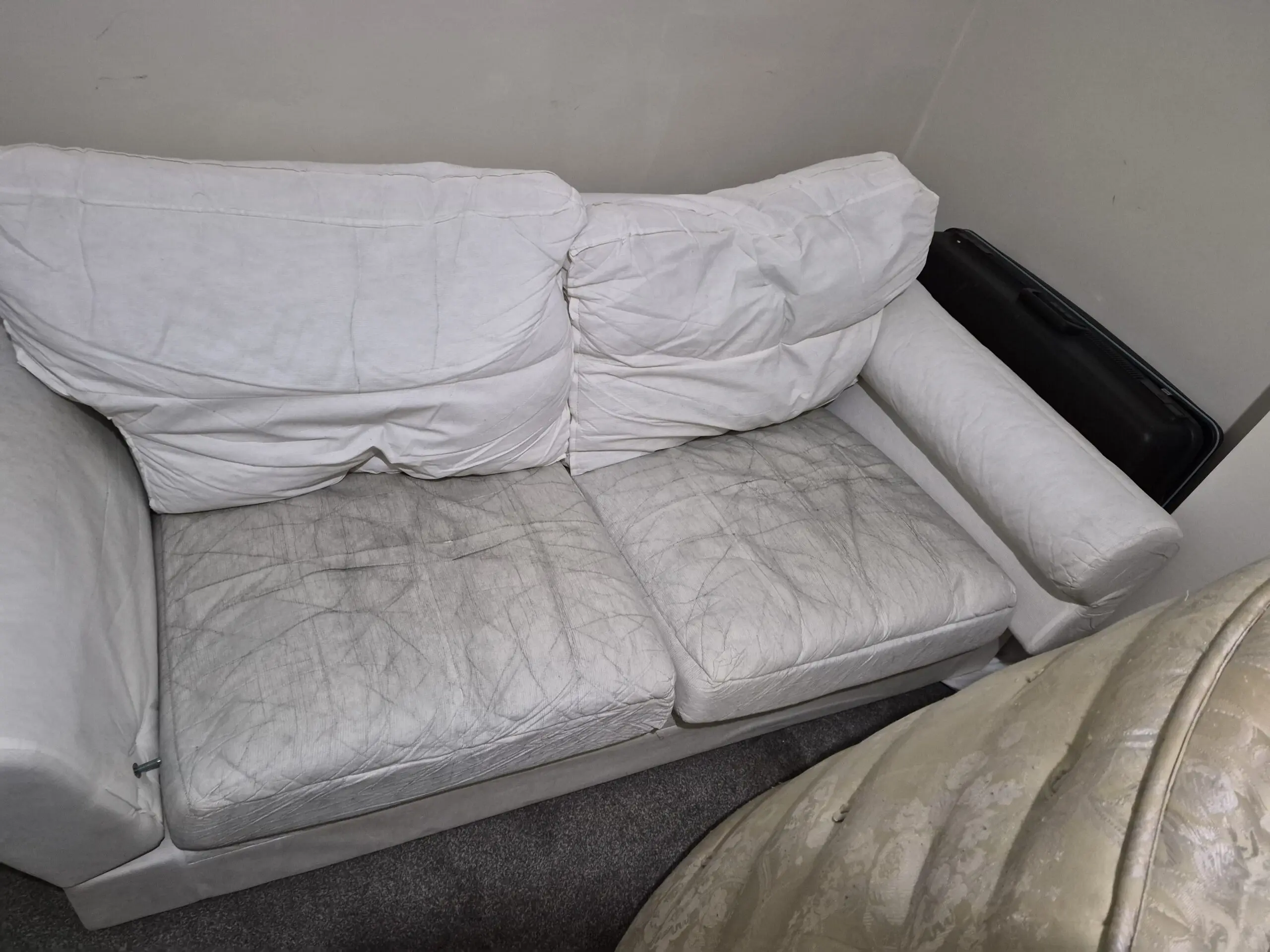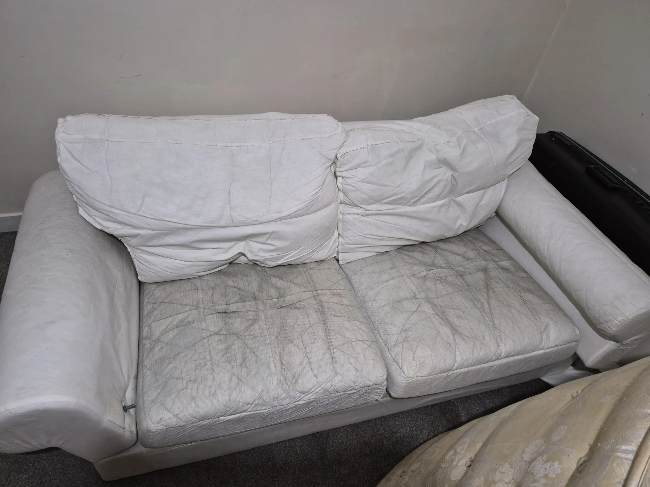 This sofa been used for around about 1 year so it’s still in decent condition. Comes with a green cover but will obviously show a creases for sitting on it everyday.