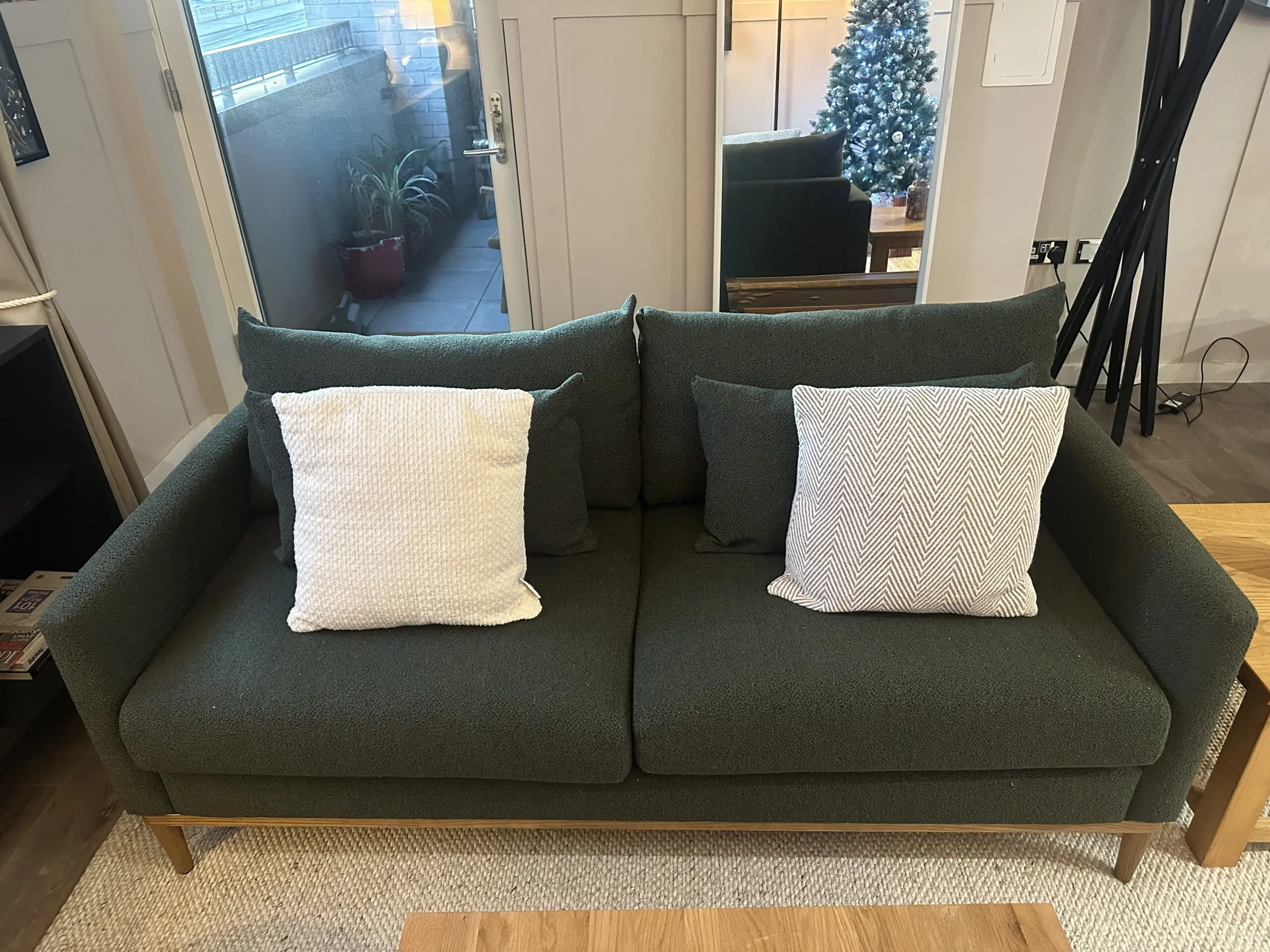 Brand new, barely used John Lewis 2 seater sofa. 6 months old. Fearn green, Boucle fabric. Very comfortable. Only selling due to purchase of a larger sofa.