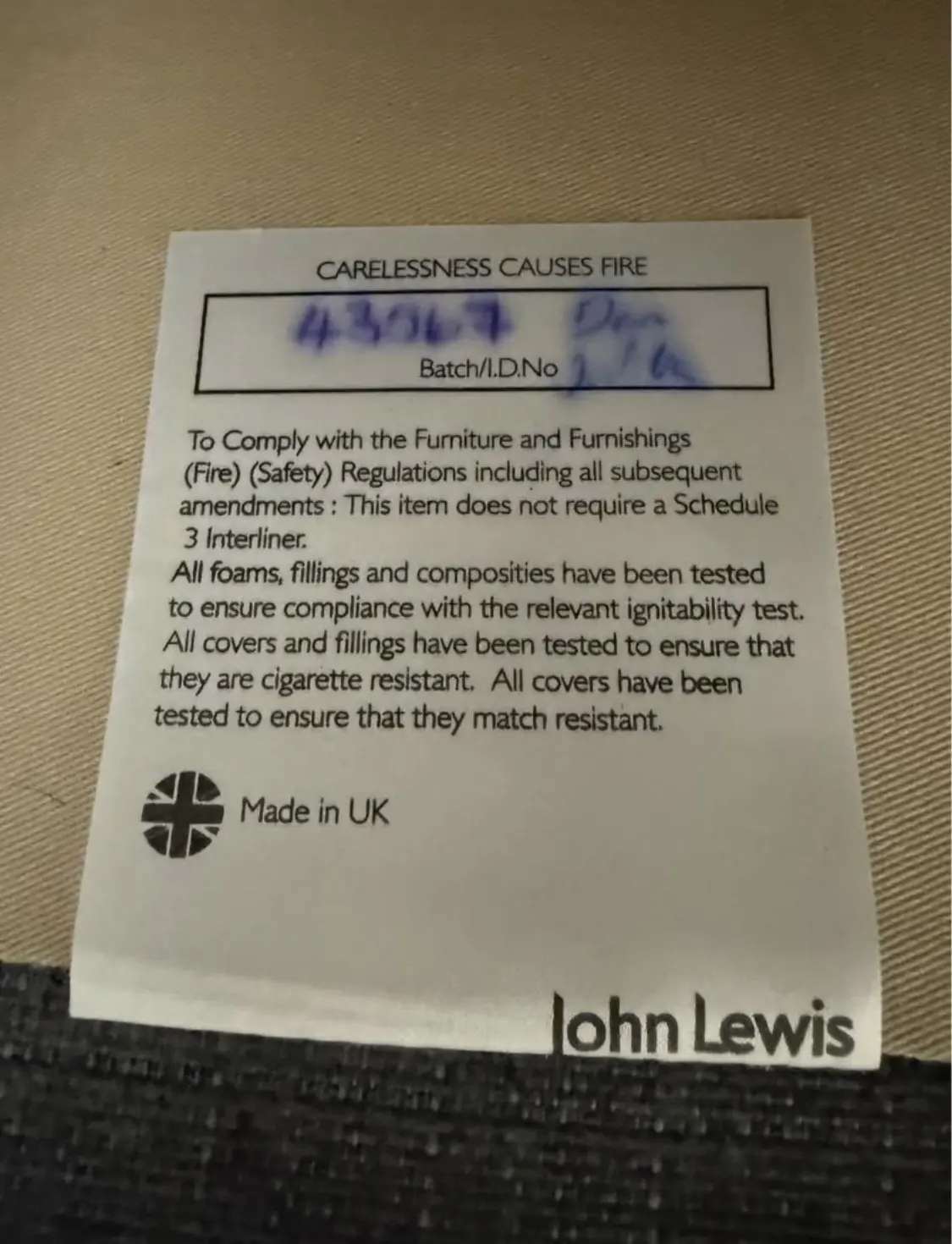 Complies with fire safety regs