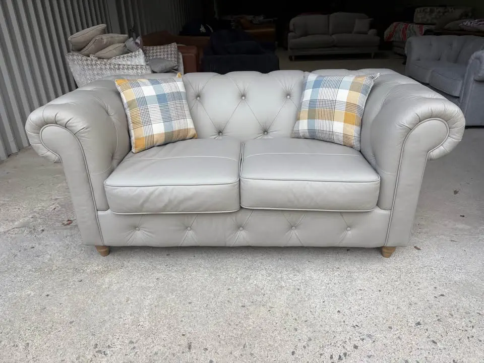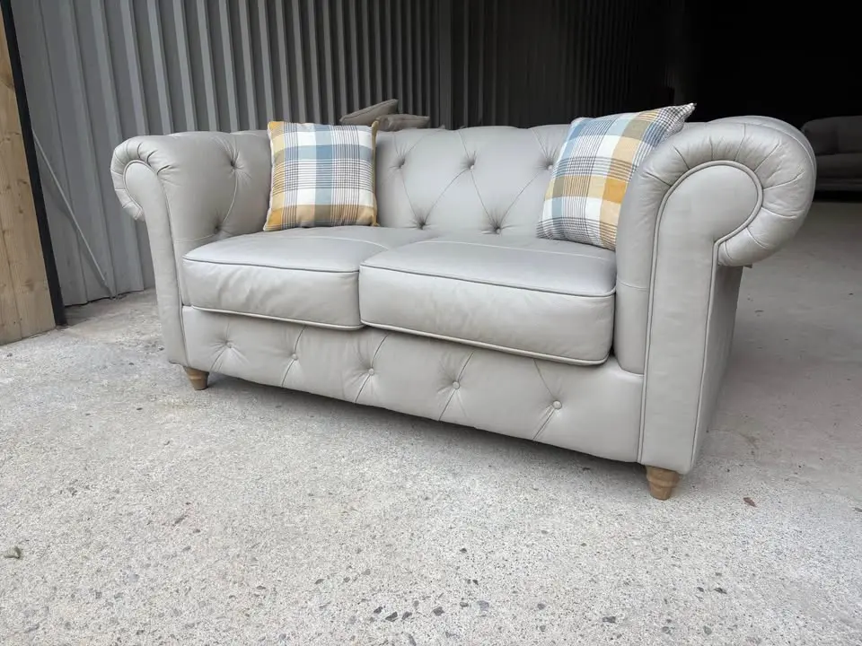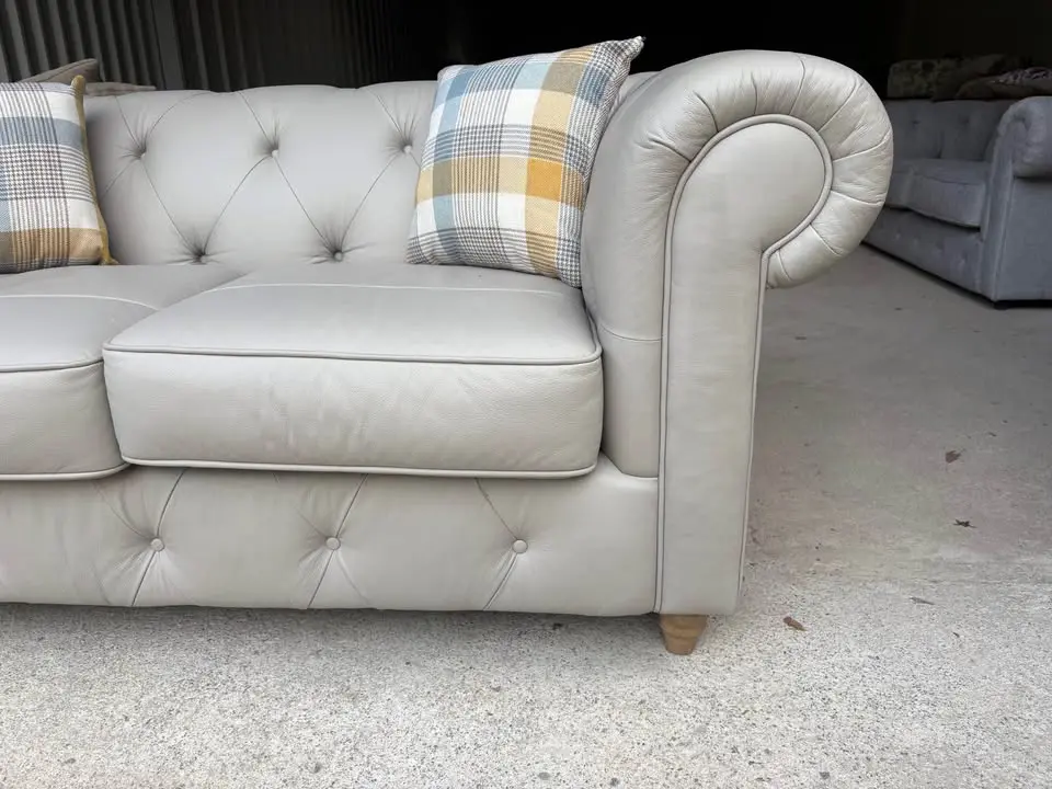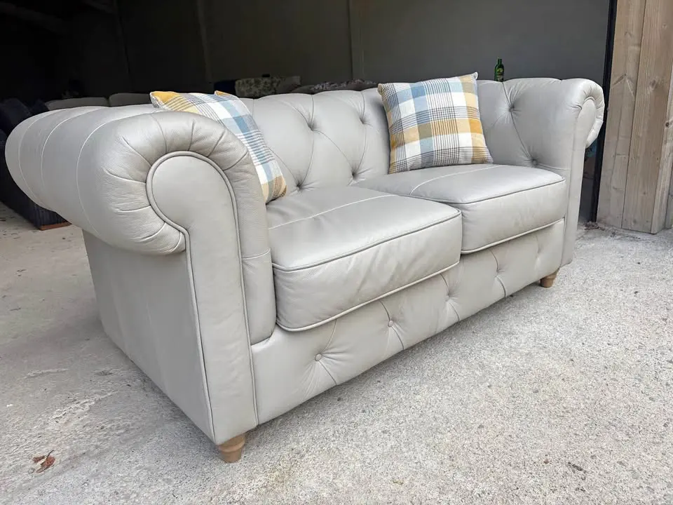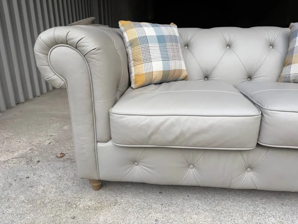 Leather Chesterfield Grey 3 Seater & 2 Seater Sofa Set