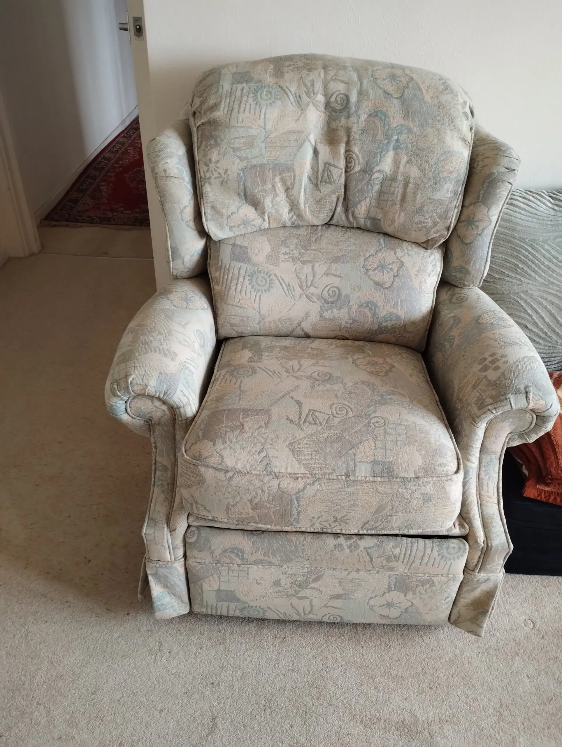 Light green print recliner chair,love seat with ottoman