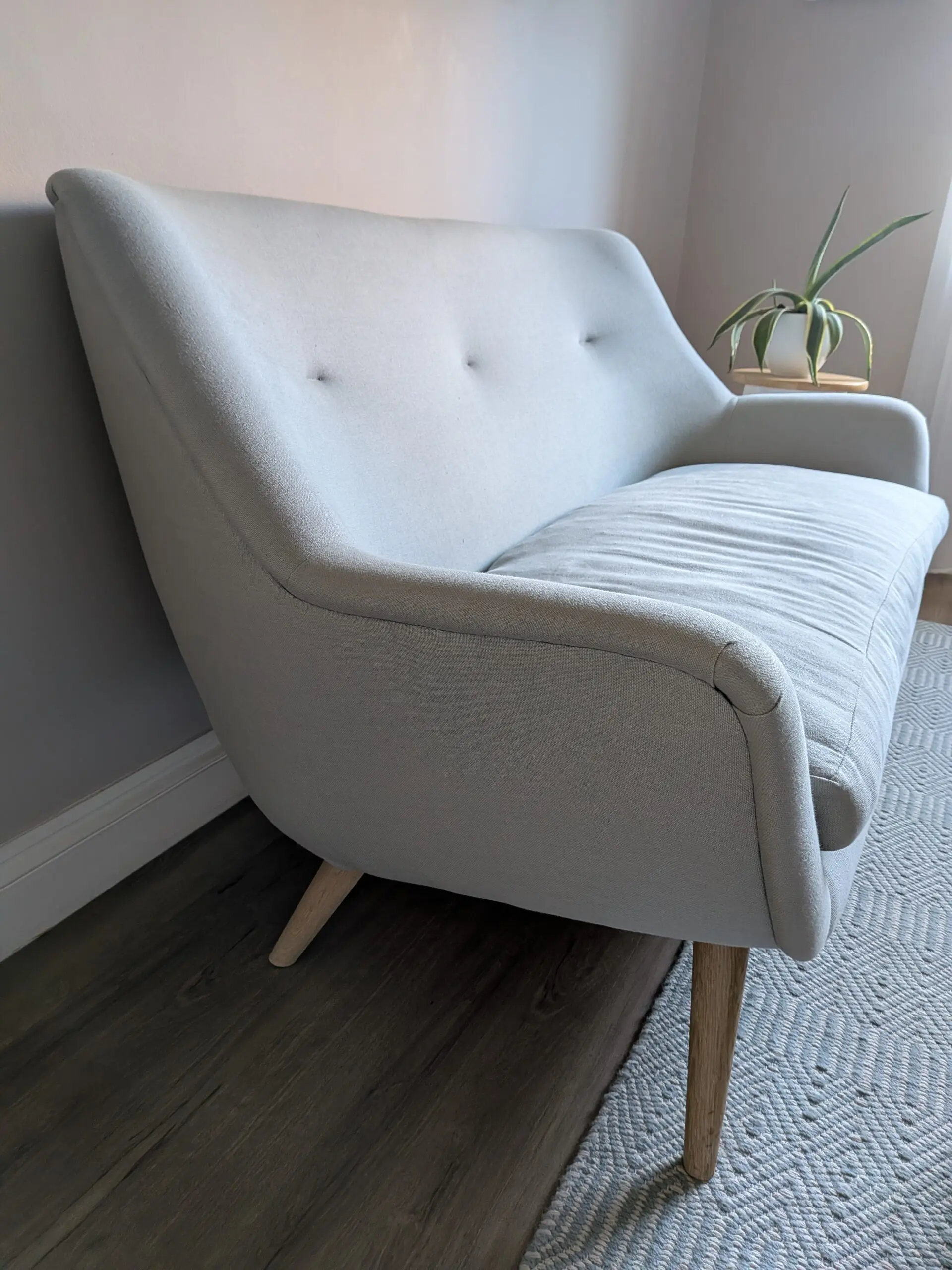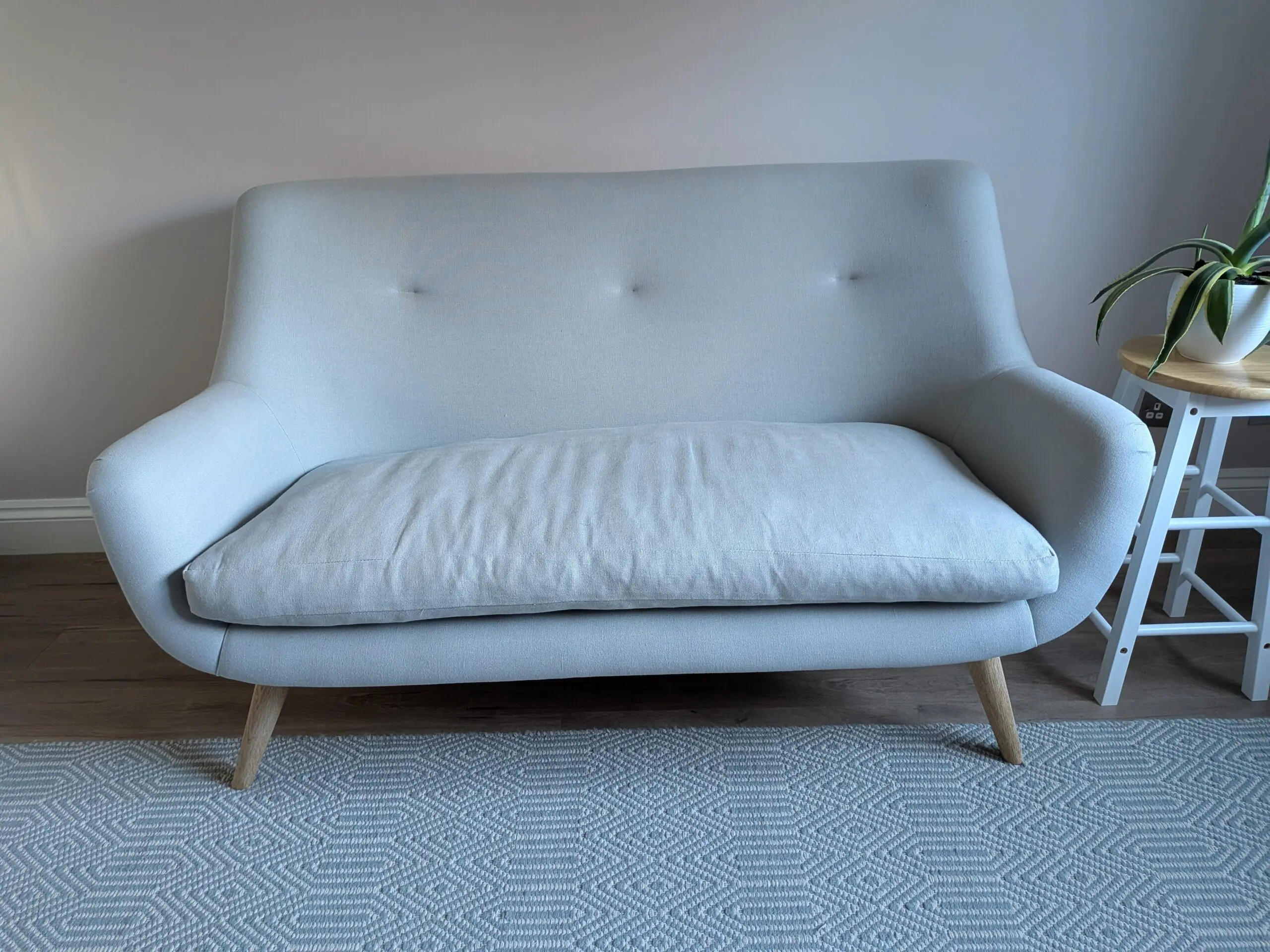 Although we’ve had it for a couple of years this sofa has been in a spare room and barely used. It shows minimal signs of prior use. The clever fabric means it is resistant to spills.