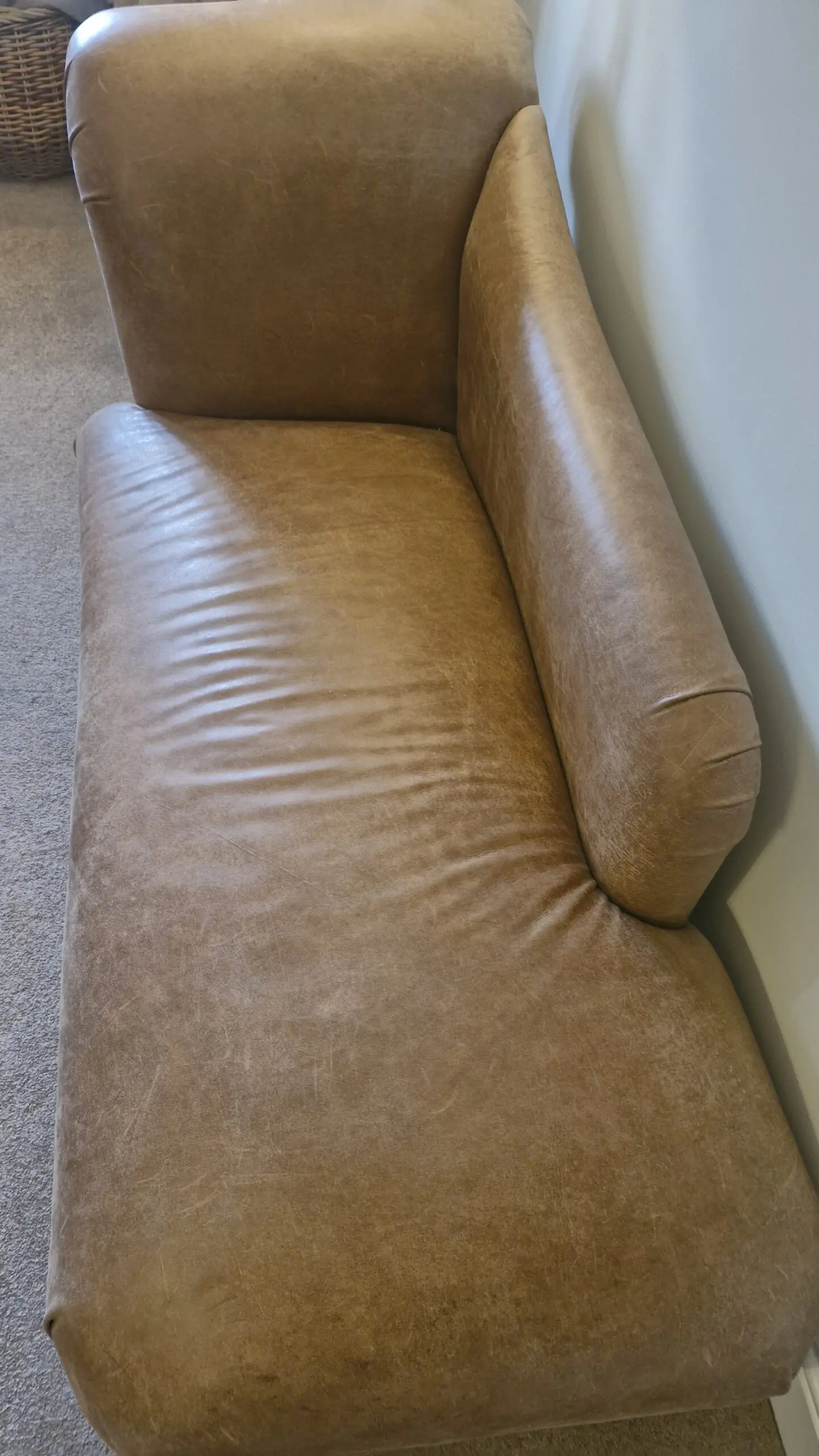 Soft Leather Chaise. Great condition and rarely used. Very comfortable and unique. Oak feet.