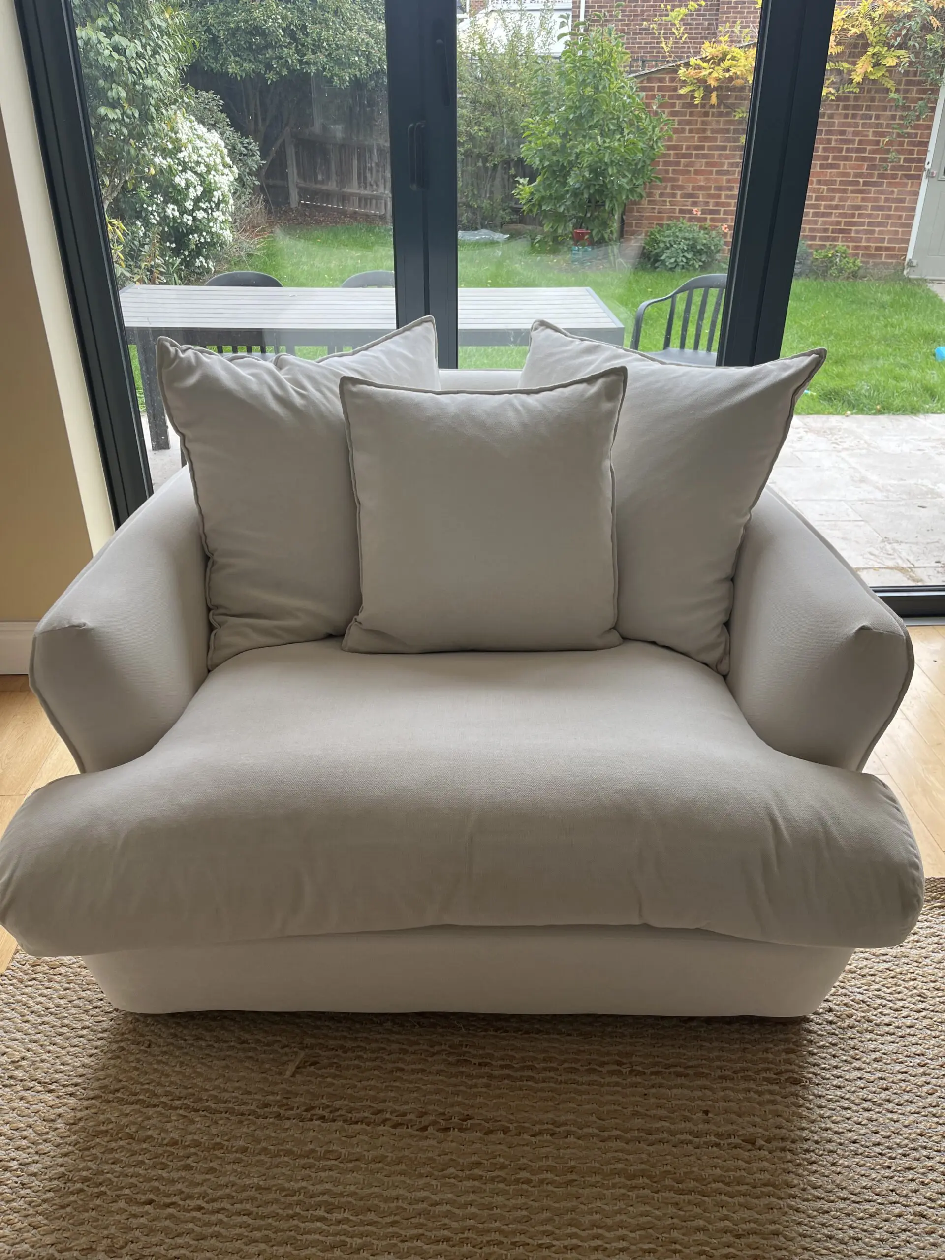 Barely used love seat. Perfect condition and very comfortable. In clever softie fabric and stain protect technology. Brilliant addition to any stylish home