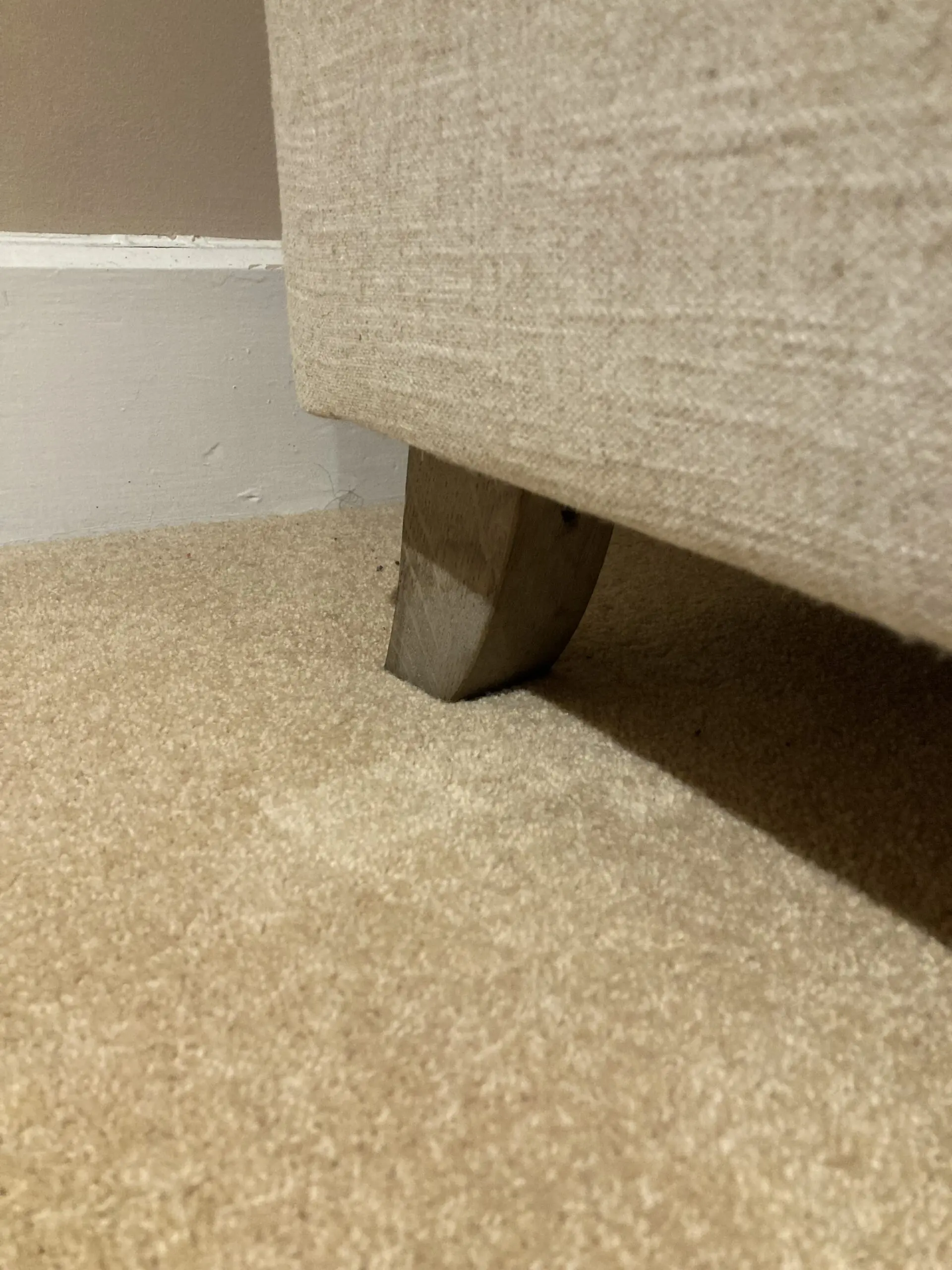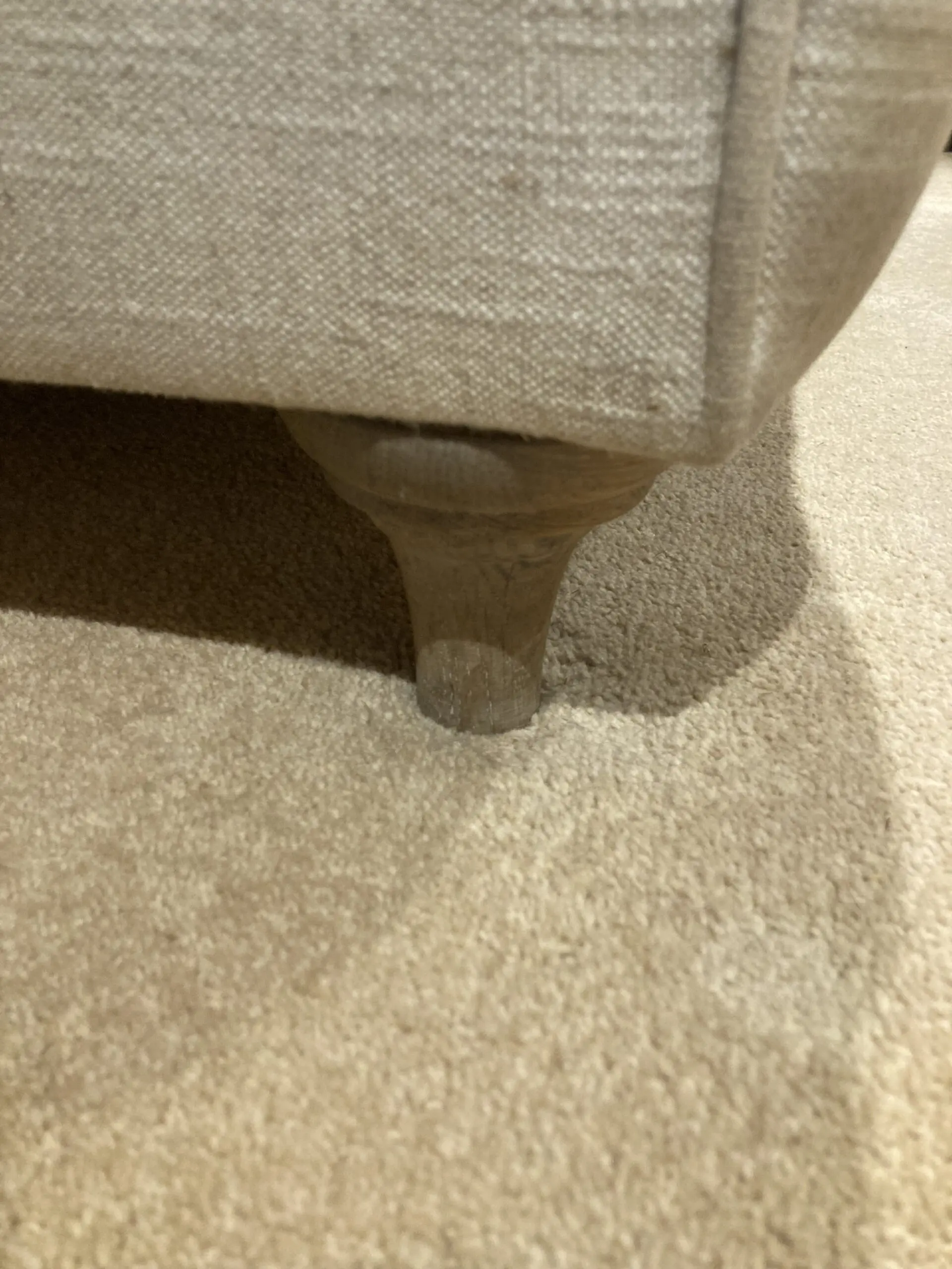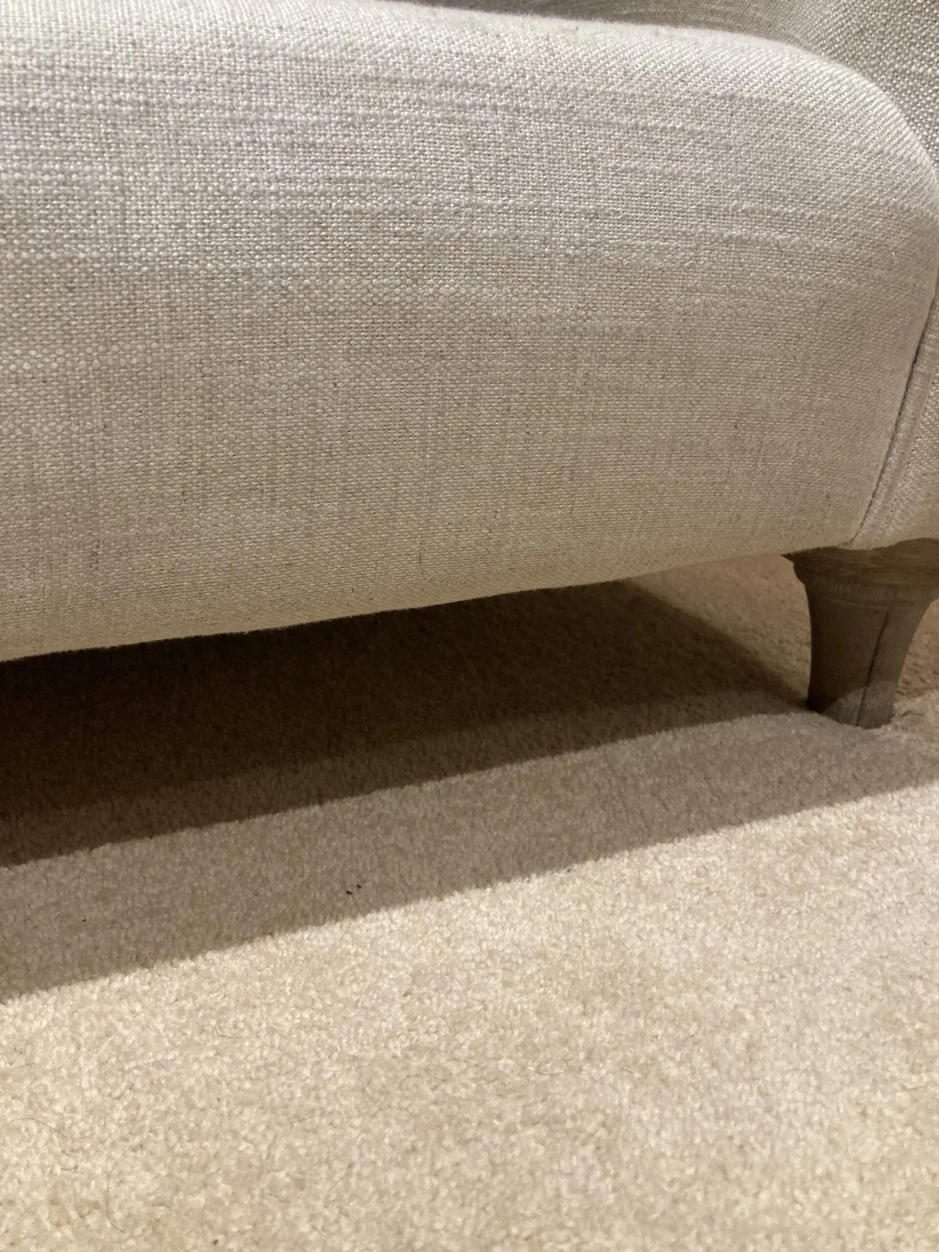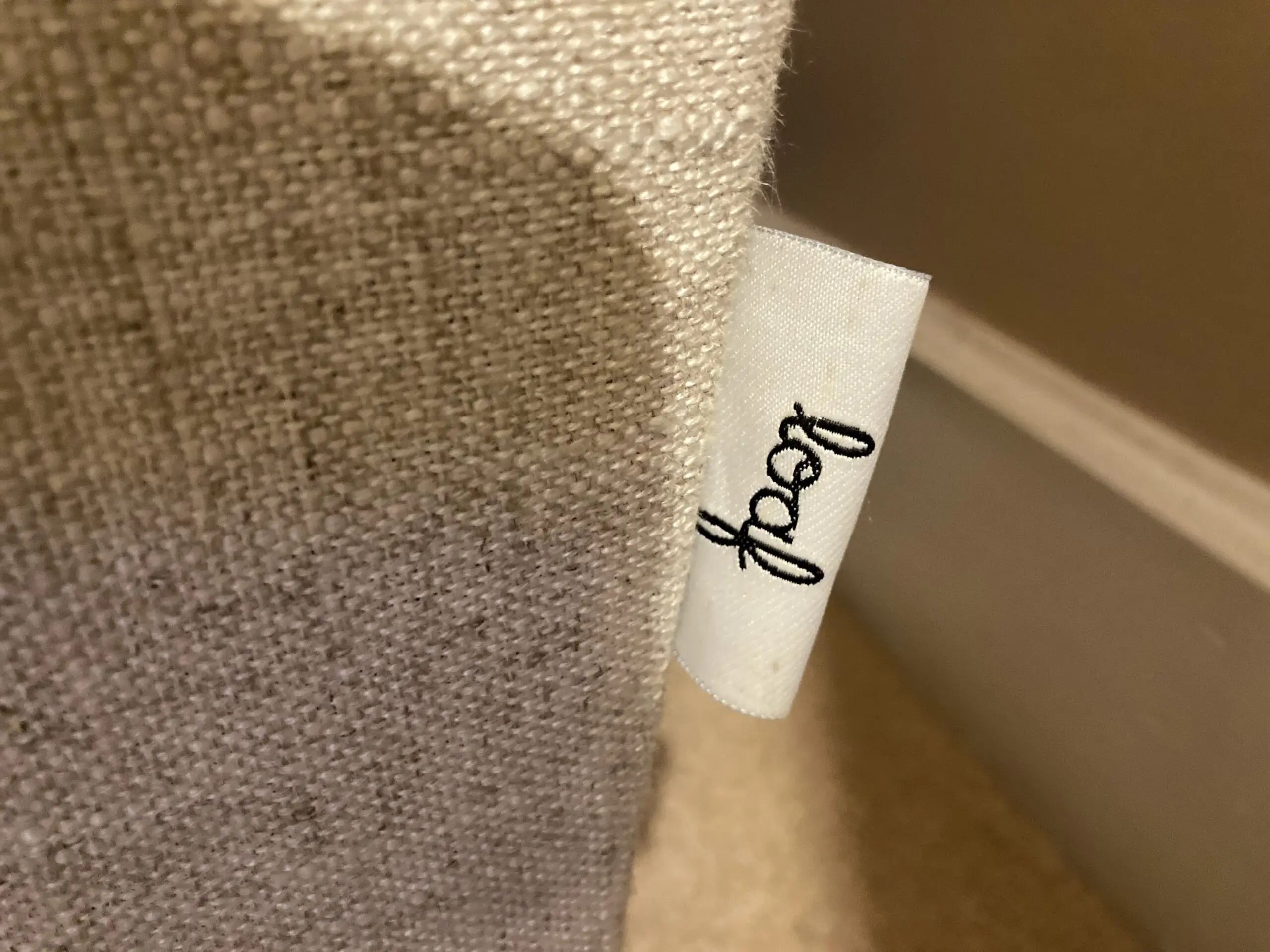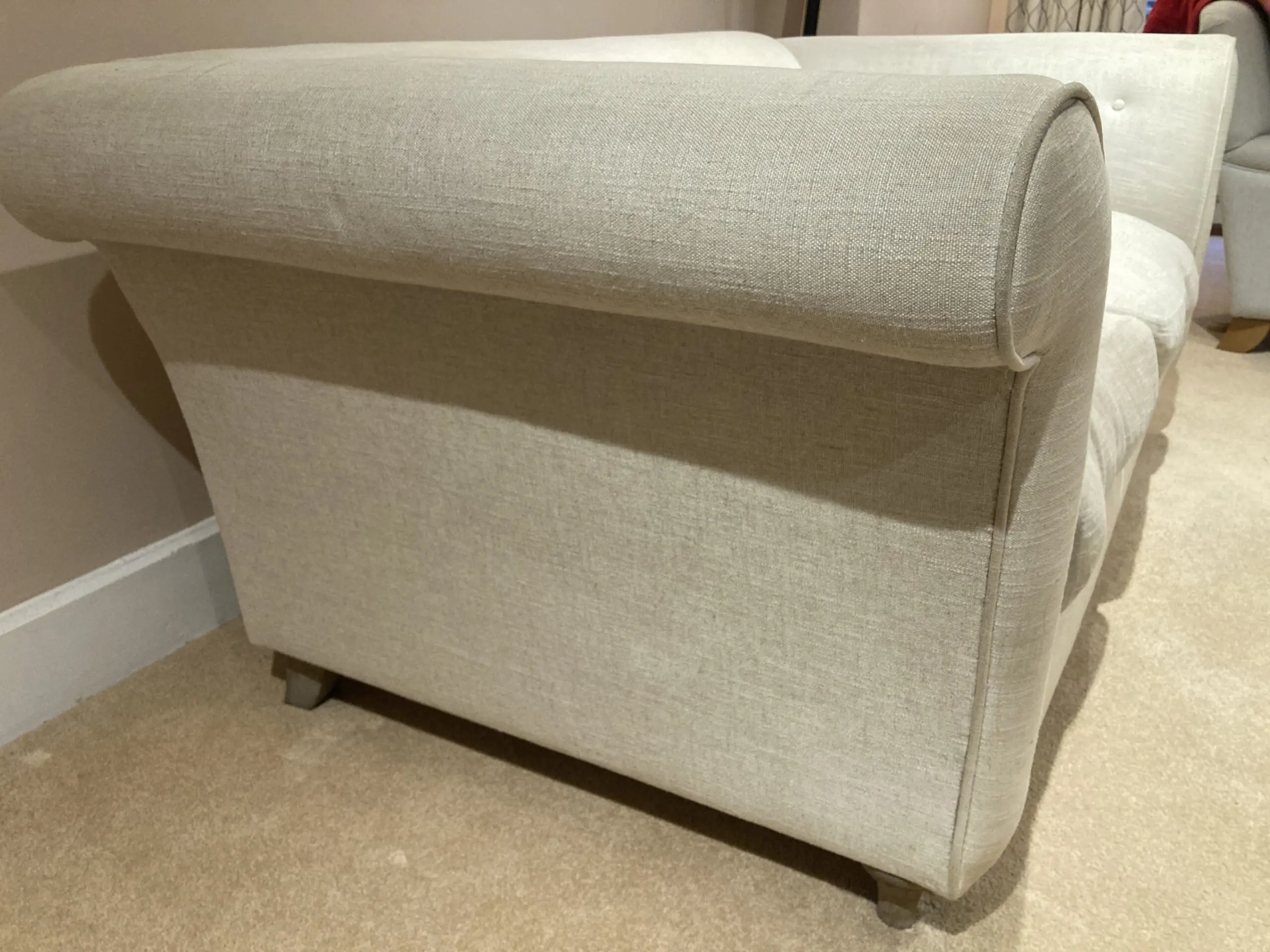 Loaf two seat linen sofa in oatmeal / cream colour. Wooden legs.