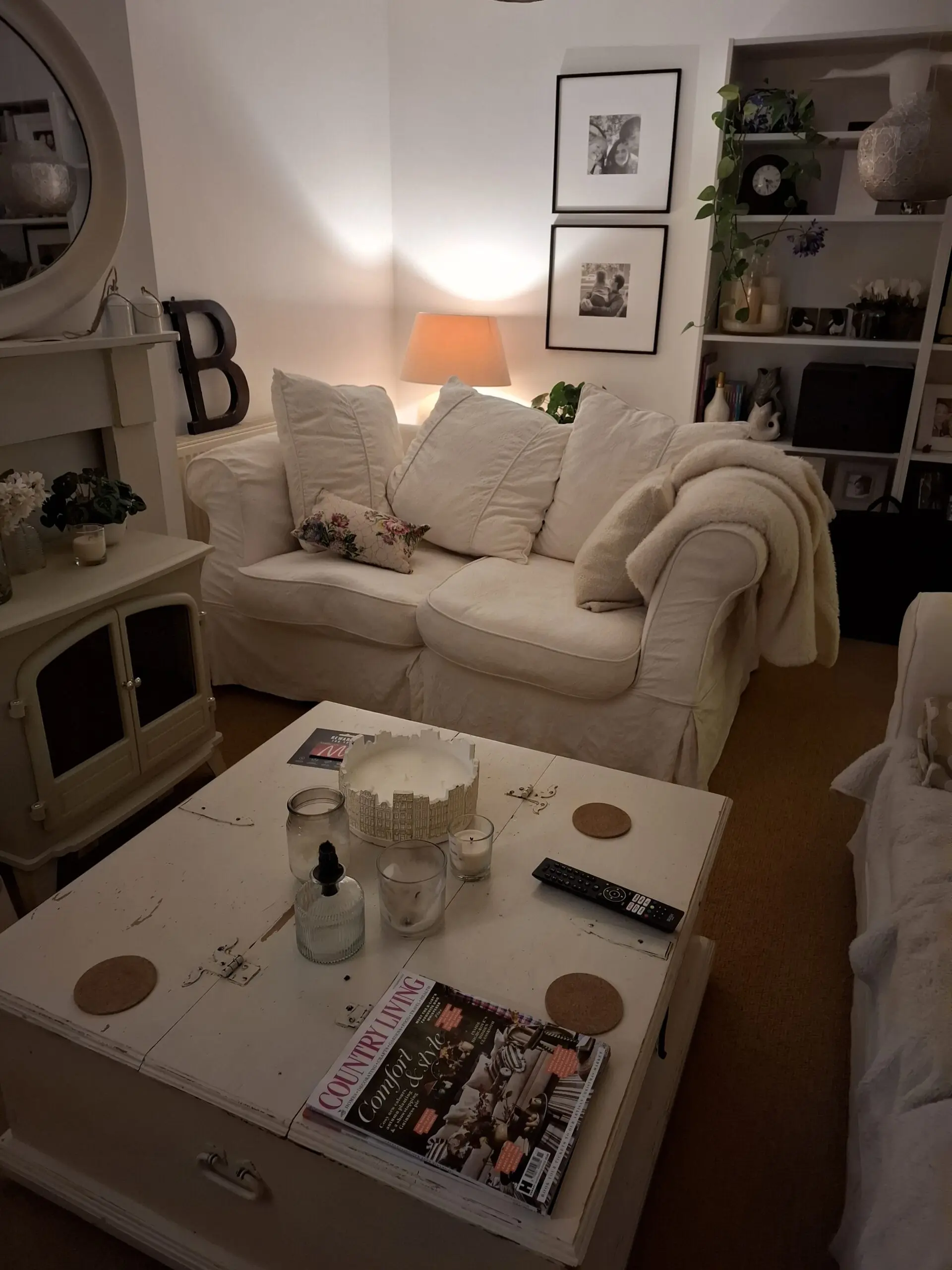 Photo shows second option how could dress sofa. Smaller cushions and throw.