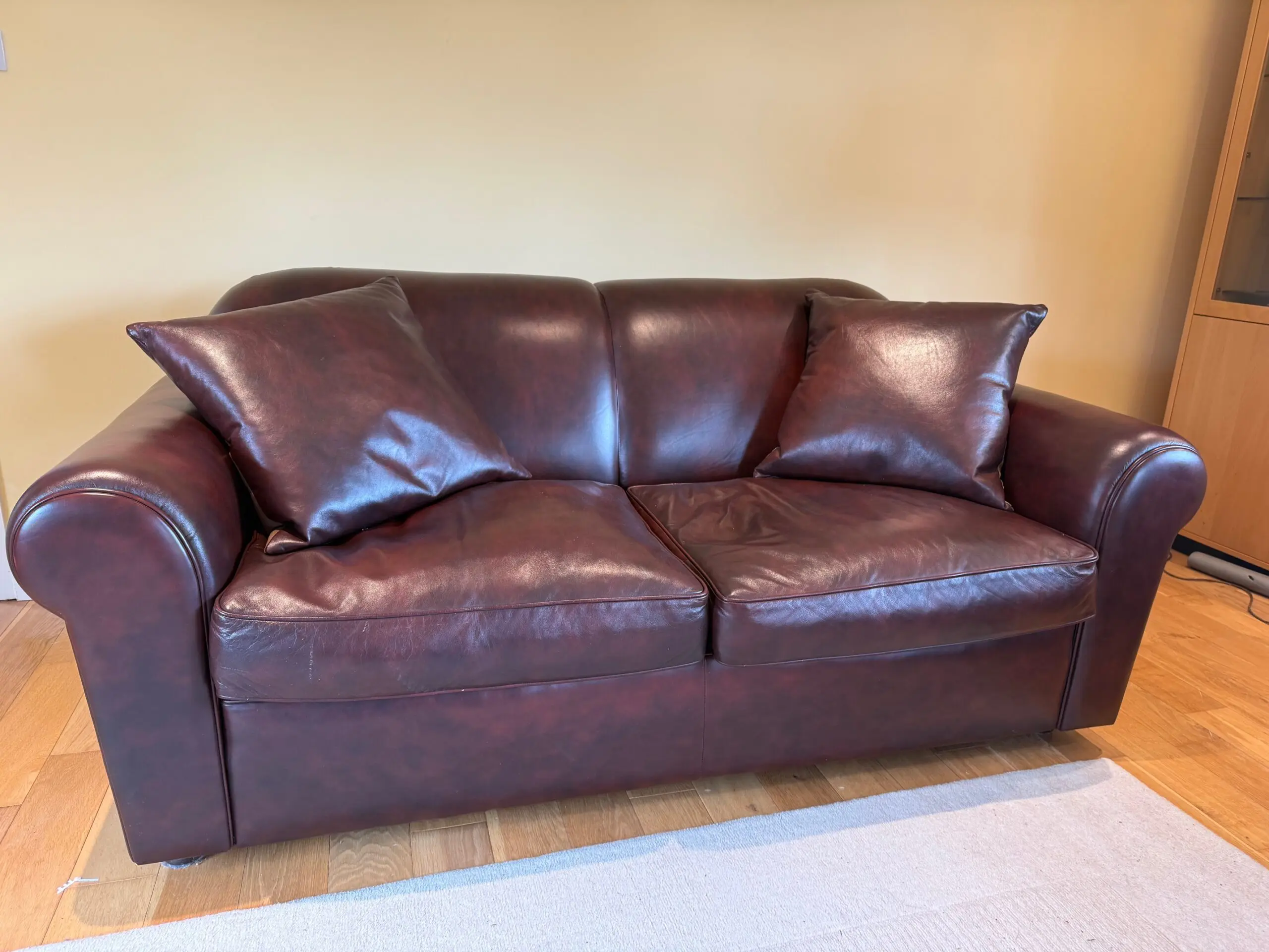Elevate your living space with this high-end leather sofa, combining timeless design with exceptional comfort. Crafted from genuine leather and meticulously maintained, it’s ideal for buyers seeking quality without compromise.