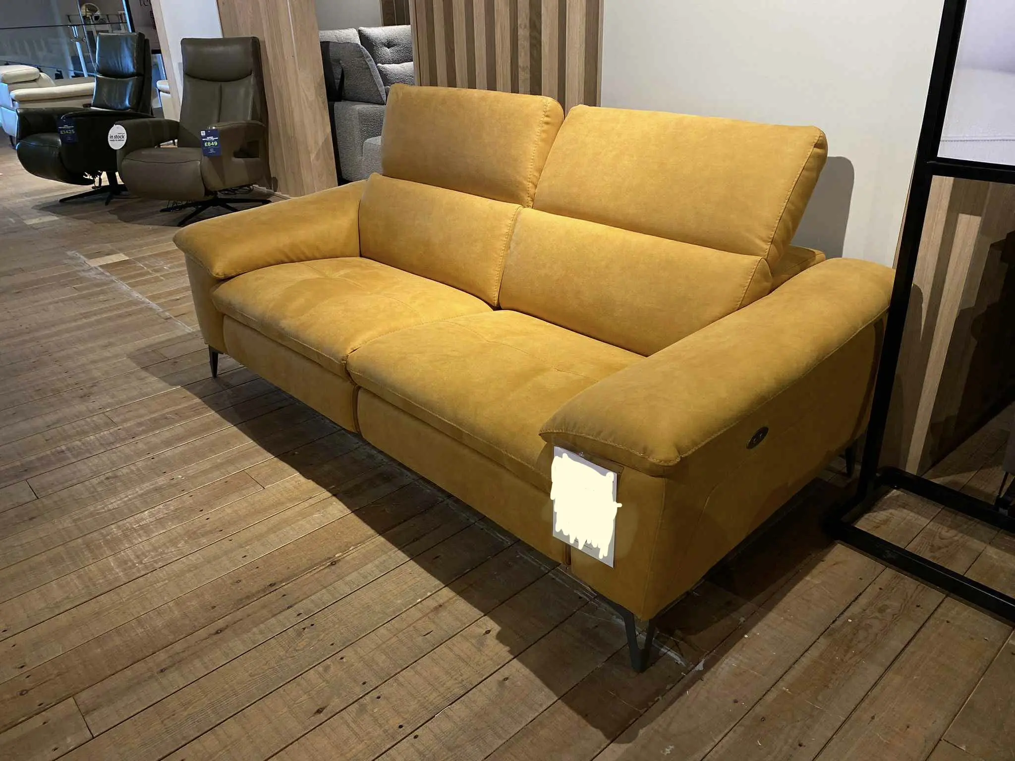 Mustard Yellow Suede Recliner Sofa